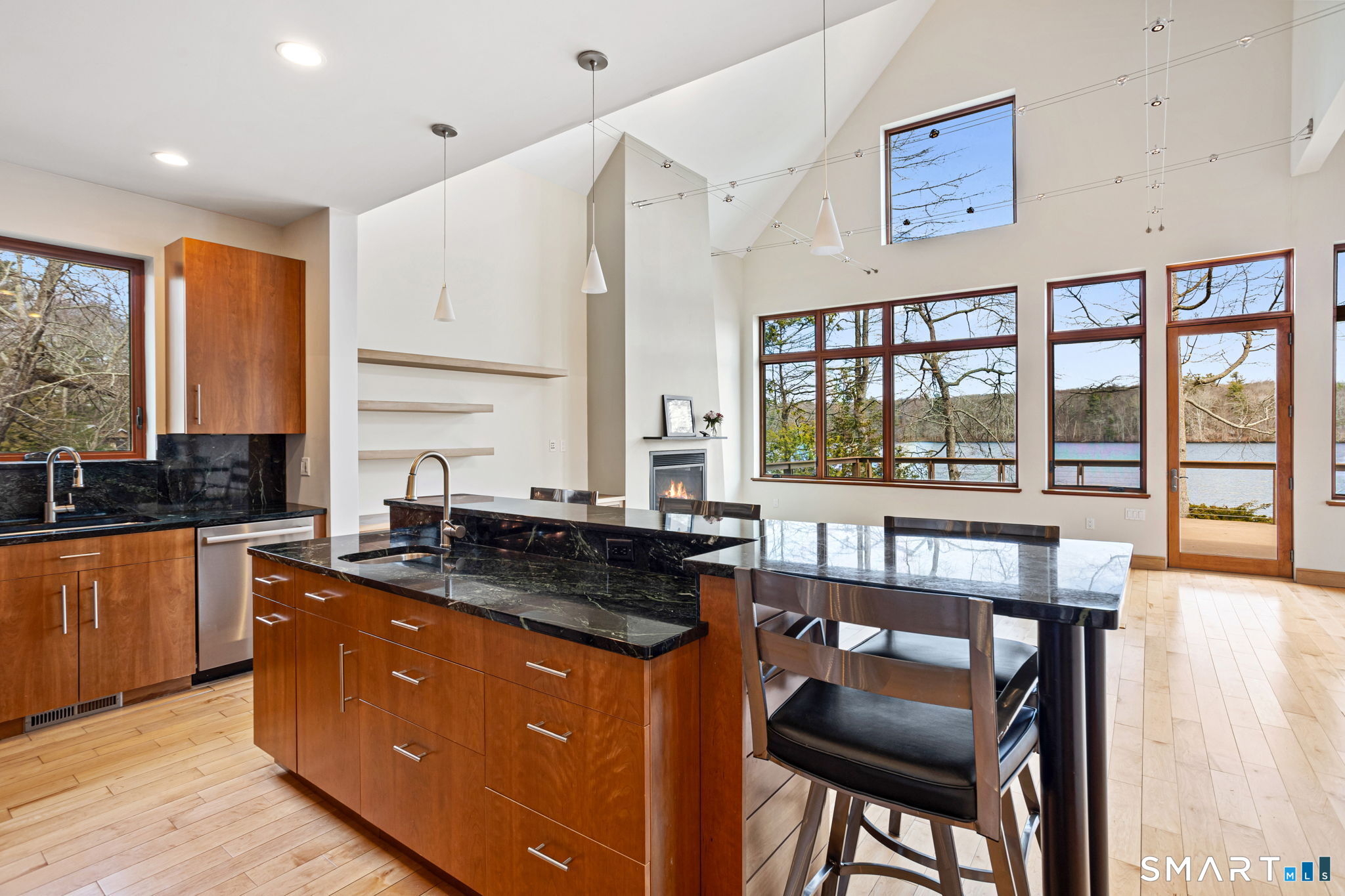 Red Cedar Lake Stunner! Awarded LEED Platinum, the highest level of LEED certification possible. Stands for Leadership in Energy and Environmental Design. Main level bedroom suite, open Living, Dining and Kitchen area, Pantry/laundry room, plus bathroom. Upper level with 2 bedrooms with shared bathroom plus an office loft space. House has beyond code insulation in walls and roof with 2" of continuous foam insulation over the outside of the exterior walls and roof structure. High performance windows, solar system, back up battery power. An ERV- Energy Recovery Ventilator that provides fresh air into house and exhausts air from bathrooms on a programmed timer. Geothermal heat and AC throughout house with programmable thermostats. Main level and lower level on one zone. Upper level on separate zone. Non-VOC paints and stains used throughout all hard surface flooring and walls. Solid maple hardwood flooring on main and upper level. New LVT flooring at lower level. Porcelain tile at all bathrooms and laundry room. Exterior cedar siding. Metal standing seam roof, Propane stove and fireplace, ceiling fans in Living Room and 3 bedrooms. Finished walkout lower level with expansive family room with sliding glass door to patio by lake, 4th bedroom or office, storage room and mechanical room. Covered entry walkway and ramp Large deck with Timberteck composite decking and cable railing with stair to grade.