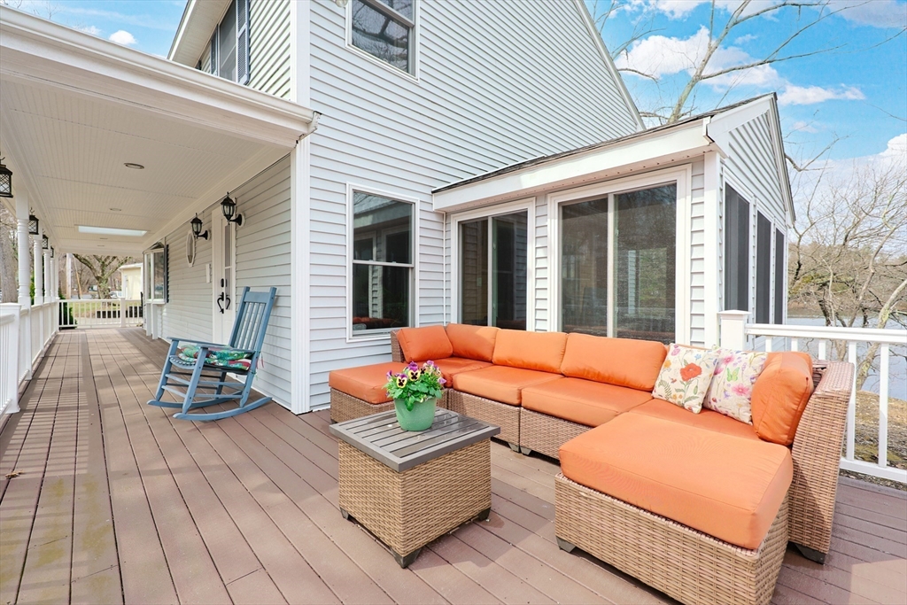 Welcome to your DREAM HOME! The tranquil WATERFRONT property your heart desires! Set on Mirror Lake, in the desirable town of Wrentham, this charming Colonial home features 3 generous sized bedrooms, 2.5 baths, 1st floor laundry, & offers the perfect blend of classic style and scenic beauty. Adorned with a brand new eat in kitchen, stainless steal appliances, granite countertops, dining room, an enormous living room, and a cozy four-season sunroom showcasing panoramic lake views year-round. The seamless flow of the full-length wraparound porch creates the perfect setting to relax, unwind, and take in the peaceful surroundings. Enjoy all the benefits of true waterfront living with swimming, fishing, and boating right outside your door. Thoughtfully designed for comfort and connection to its peaceful surroundings, whether savoring quiet mornings by the water or hosting gatherings with a scenic backdrop. This home is a rare opportunity to experience lakeside living with timeless appeal.