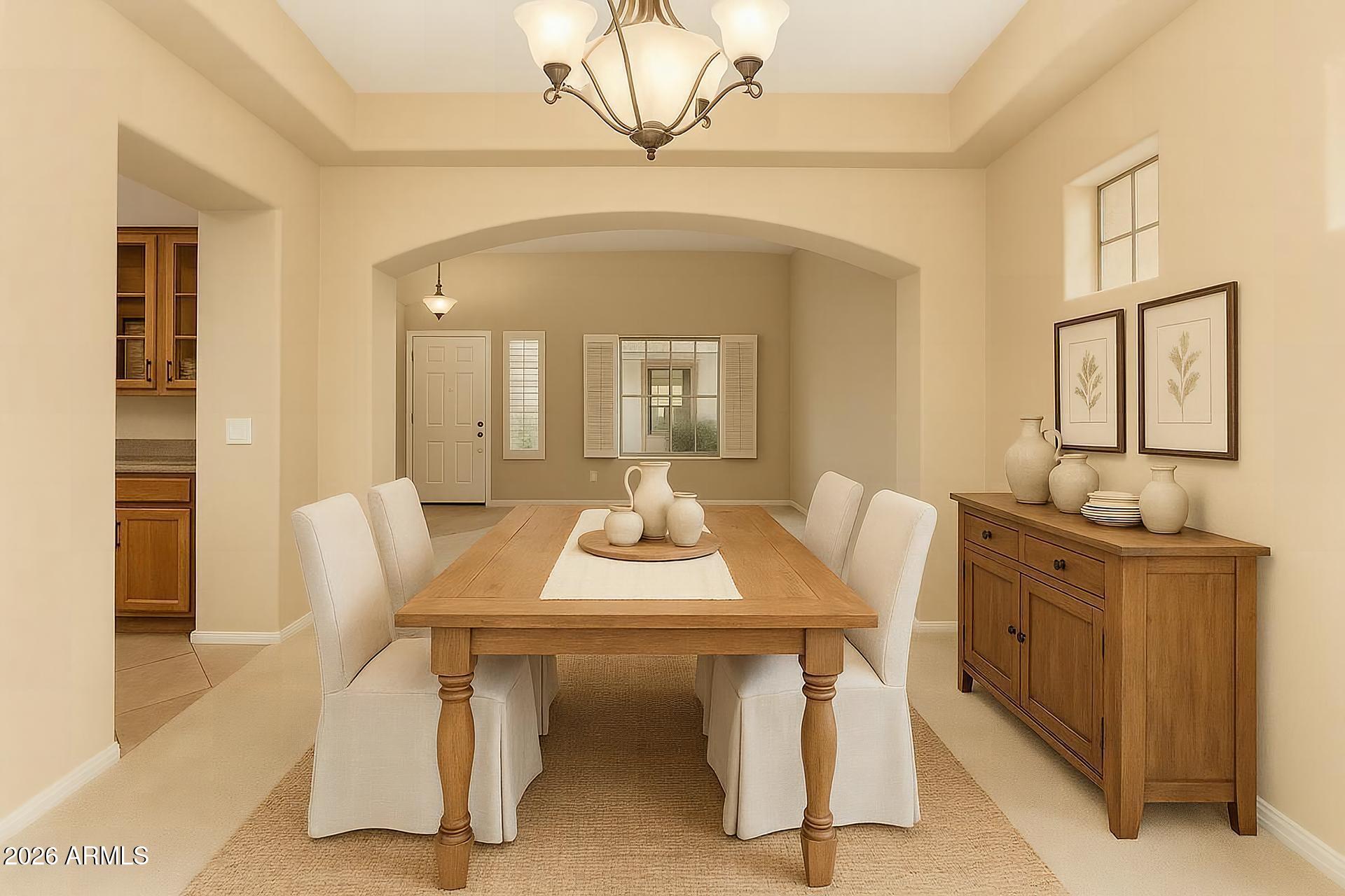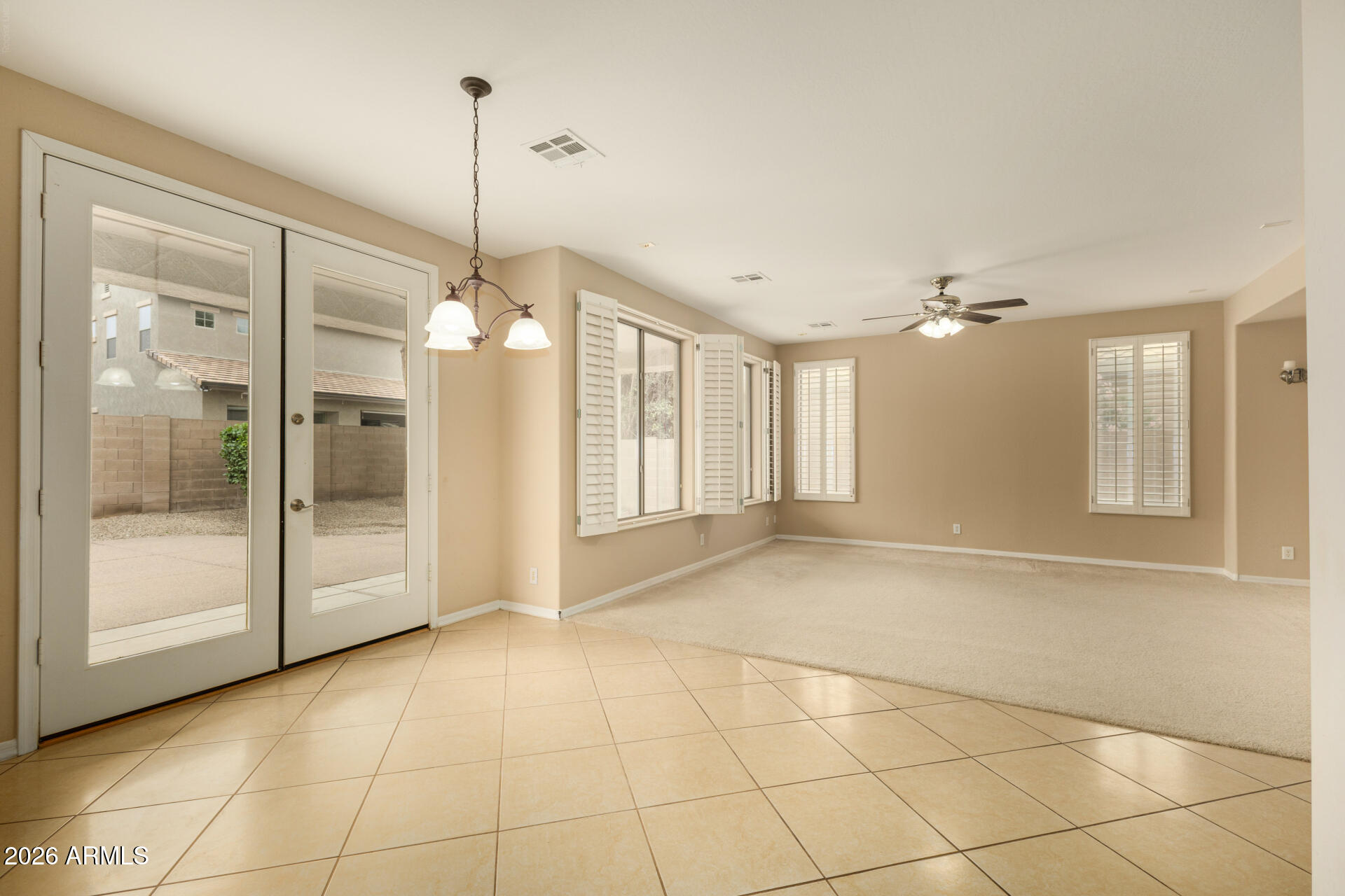 Welcome to this stunning 4-bedroom, 3-bathroom two-story home offering 3,103 square feet of beautifully designed living space in a highly desirable Chandler location. From the moment you step through the private courtyard entry, you're greeted by a dramatic two-story grand entry filled with natural light and enhanced by elegant plantation shutters throughout the home. This open and spacious floor plan features a seamless blend of formal and casual living, including a formal living room, formal dining room, and an expansive great room that connects the dining area and family room--perfect for entertaining. The chef-inspired kitchen is equipped with stainless steel appliances, granite countertops, kitchen island, a large pantry, and ample cabinetry, all overlooking the main living areas to to create a bright and connected space. The home offers a highly functional layout with a downstairs bedroom and full bath, perfect for guests, multigenerational living, or a home office. Upstairs, the primary suite is a true retreat, complete with a private sitting room, a spacious ensuite bath, and a large walk-in closet. Additional highlights include tile flooring, abundant windows for natural light, and a guest bedroom with a walk-in closet. Step outside to enjoy the covered patio and thoughtfully designed low maintenance backyard featuring raised garden beds and mature fruit trees, including lime, mango, and pepper trees. A 3-car garage, smart thermostat, and a newer AC system (2019) add comfort and convenience. Located near the AZ 202 Loop, with easy access to shopping, dining, entertainment, and top-rated Chandler Unified School District schools, this home is also close to community walking paths and a playground. A perfect blend of space, style, and functionality--homes with this layout and location won't last! Come see today! This home will not last long!