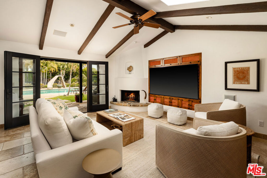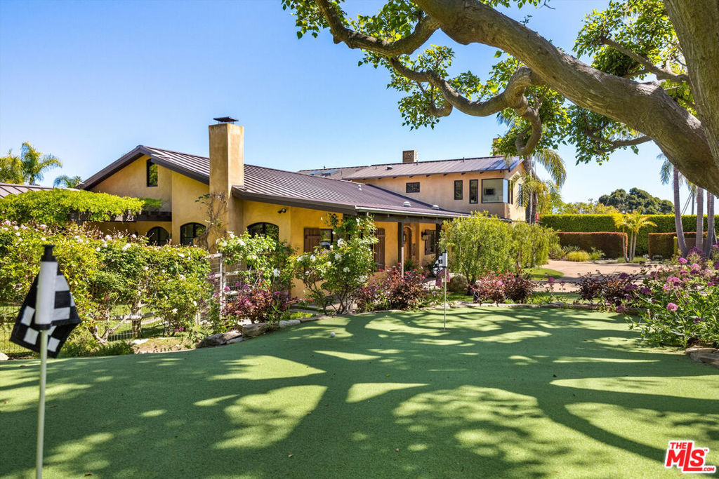 A private oasis designed for recreation, relaxation, and effortless entertaining, this remarkable property offers an exceptional blend of warmth, scale, and versatility. Expansive grounds create a retreat-like atmosphere, with a saltwater pool and spa, tennis court, putting green, and an expansive turf area ideal for soccer, outdoor recreation, or play, along with beautifully arranged outdoor spaces that make the property feel like a destination of its own. Mature trees, lush landscaping, stone patios, and covered porches enhance the sense of privacy while creating a natural connection between the home and its surroundings. Inside, the residence is filled with character and light, with vaulted beamed ceilings, custom built-ins, and gracious living spaces that feel both refined and comfortable. The kitchen serves as the heart of the home, opening naturally to the main living areas and looking out to the beautiful grounds, creating a wonderful backdrop. The overall flow is thoughtful and welcoming, with spaces that are equally suited to quiet enjoyment and entertaining. The primary suite offers a luxurious retreat, with ocean views, a fireplace, private balcony, and a beautifully appointed bath that brings a sense of calm and privacy. Additional bedroom suites and guest rooms are arranged with flexibility in mind, providing comfort and separation. A spacious living area with bi-fold doors opens to a patio overlooking the pool, creating a seamless indoor-outdoor experience. Complete with a bar and well suited as a game room or casual entertaining space, it is joined by a gym and a temperature-controlled wine cellar with storage for approximately 2,500 bottles. Beautifully designed and exceptionally well equipped, the property offers a rare opportunity to enjoy a lifestyle centered around comfort, recreation, and gathering in one truly special place.