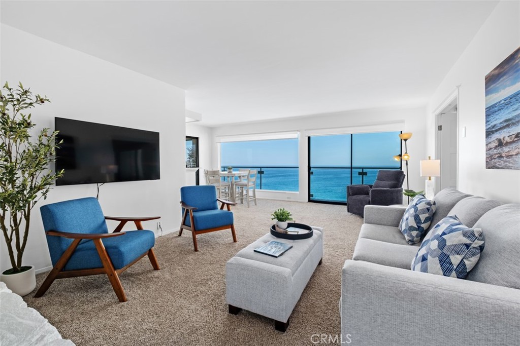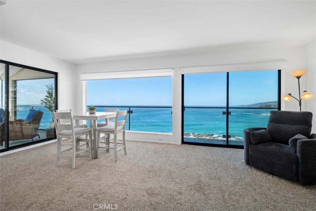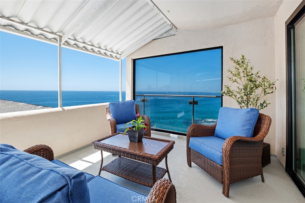 Spectacular Oceanfront Penthouse with Panoramic White-Water Views in Laguna Beach. Perched atop Table Rock, this rarely available, fully furnished 2-bedroom, 2-bath oceanfront penthouse delivers some of the most dramatic and sweeping coastal views in all of Laguna Beach. Floor-to-ceiling glass walls frame breathtaking white-water vistas, expansive coastline and unforgettable year-round sunsets over Catalina Island. Designed for effortless indoor-outdoor living, the open-concept floor plan flows seamlessly to the largest covered deck in the complex, perfect for morning coffee, al fresco dining or simply soaking in the ever-changing ocean scenery. Every room in this beautifully maintained home captures its own stunning ocean view, while updated appliances blend seamlessly with the original architectural charm. Enjoy resort-style amenities including a pool and spa, oceanfront BBQ area, private community stairs to the beach, billiards room, library, gym and clubhouse. Walk to restaurants, shopping, art galleries and entertainment. Experience the ultimate Laguna Beach lifestyle in this private, view-filled retreat. Available April 20, 2026 to Nov 1, 2026.