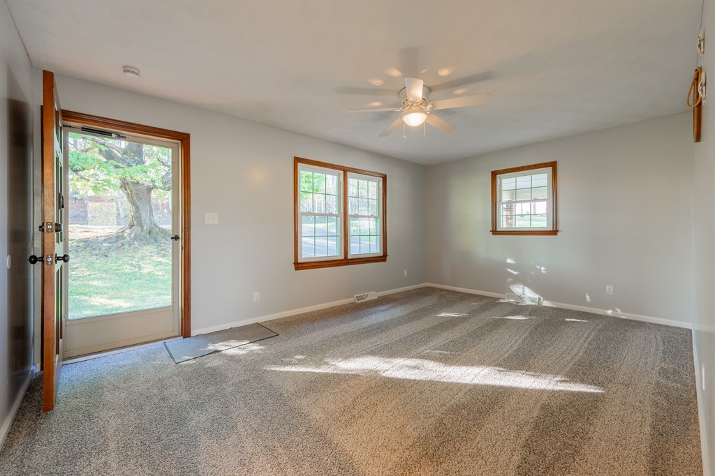 Discover this well-maintained 3-bedroom, 2-bath brick ranch nestled in the scenic beauty of Stuart, VA. Conveniently located near Woolwine, Stuart, and Martinsville, this home offers both comfort and accessibility. Inside, you'll find a nicely updated kitchen, replacement windows, fresh interior paint, and new carpet - making it truly move-in ready. The home also features central A/C and a durable metal roof for added peace of mind. The partially finished basement provides valuable additional living space, complete with a single-car garage - perfect for a family room, home office, or recreation area. Outside, enjoy the convenience of an upper-level carport that doubles as a great space for entertaining. Additional highlights include a water filtration system and backup propane gas heat, offering both efficiency and reliability. Whether you're searching for a starter home, investment property, or a comfortable place to retire, this property checks all the boxes!