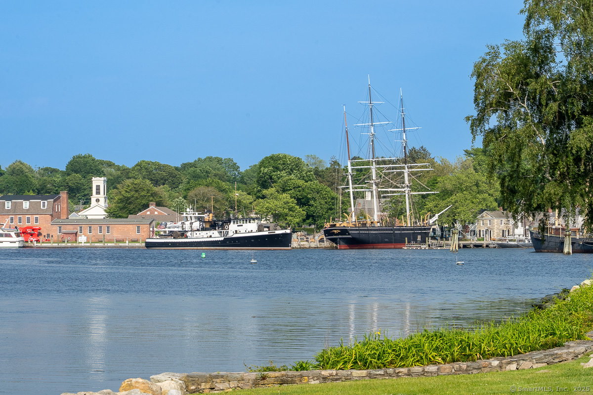 Mystic waterfront treasure is a rare opportunity for one of Mystic's premier properties. Home is at the heart of the scenic Mystic River with breathtaking views both up and down river. This homestead is one of the iconic structures for which Mystic is known. Scenic panoramic water views from all vantage points from this 1853 Colonial. Sit back and enjoy the many vantage points from outdoor decks while dining with friends and absorbing the natural beauty of nautical vessels as they sail by your front doorway. This 3 bedroom home with 3 full bathrooms is the ideal retreat for year-round homeowners or seasonal retreat. Home offers option for main level living. The updated custom kitchen showcases stainless steel appliances, center island with seating, granite counters and built-in corner cabinet. The main level showcases a study/library and family room. Lower level features home office with water views and convenient walk-out. New windows, Buderus furnace and new roof all positive features. The home is framed with professional landscaping and perennial gardens which bloom throughout the year. The rear yard is an oasis for relaxation with outdoor seating and storage shed framed in stone walls. This home is conveniently located between NY and Boston with high-speed rail available. Take the plunge and make this home your reality and enjoy all the nautical adventures, shopping, fine dining options, beach recreation and summer concerts performed in the Mystic River Park.