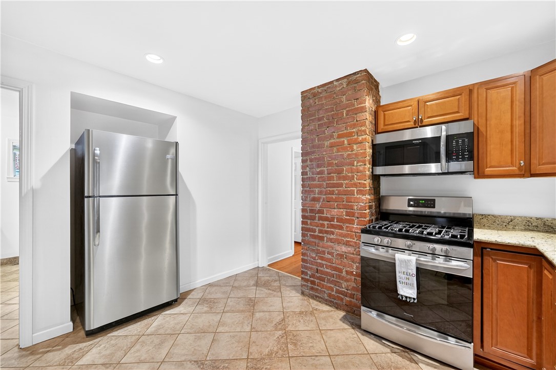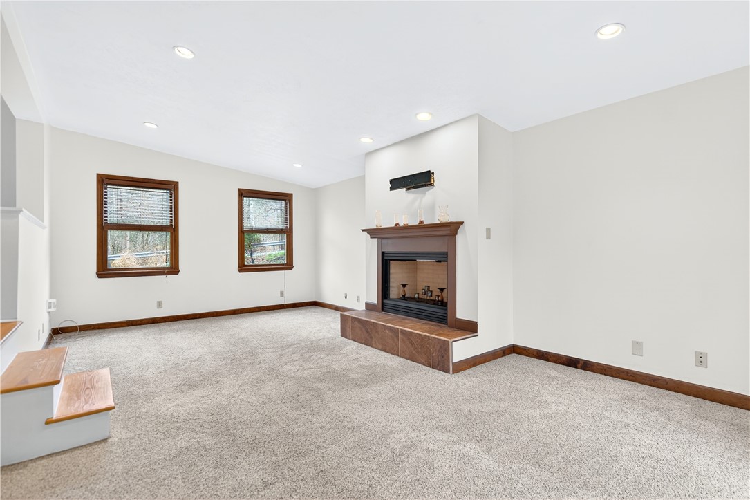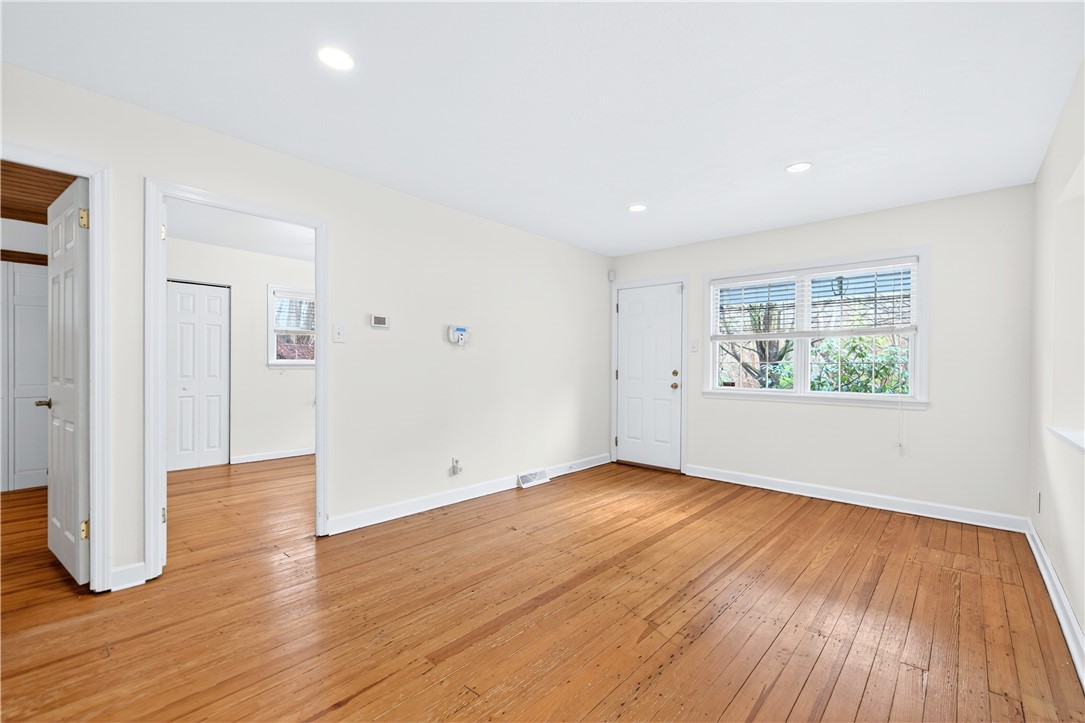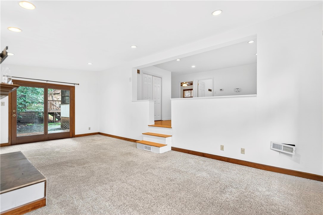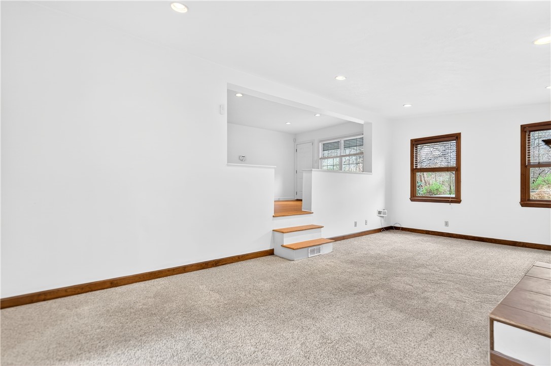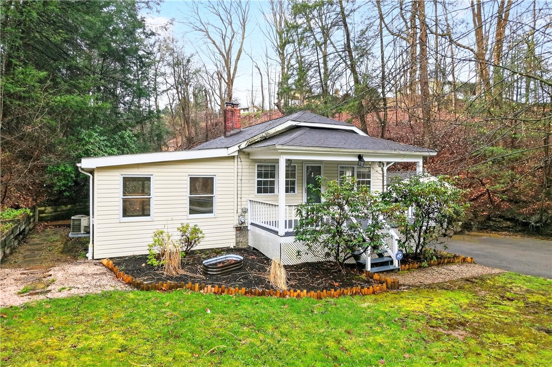 Tucked away on a sprawling 0.71-acre wooded lot in Hampton Township, this charming 2-bedroom ranch offers a rare blend of mid-century character and modern rustic flair. The heart of the home is a contemporary-inspired kitchen featuring granite countertops, stainless steel appliances, and a warm exposed brick accent wall. From the kitchen, step directly into the three-season room, where ceramic tile flooring and walls of windows frame breathtaking, panoramic views of the surrounding forest. The home's unique architecture shines in the sunken family room, a bright and airy retreat defined by vaulted ceilings, recessed lighting, and a handsome decorative fireplace that serves as a stunning focal point for the room. Throughout the main level, shining hardwood floors and an abundance of natural light create a seamless connection to the outdoors. Two comfortable bedrooms and a remodeled full bathroom provide a functional and stylish living space perfectly suited for a peaceful lifestyle. The exterior is a true private oasis. Whether you are entertaining on the custom stone patio or relaxing on the raised deck, the sounds of the nearby babbling brook provide a serene soundtrack to your daily life. While you'll feel worlds away in your massive, flat backyard, you are actually just minutes from North Park's hiking trails, Route 8, and the PA Turnpike, making this the ideal home for those who want to live in nature without leaving the city behind.