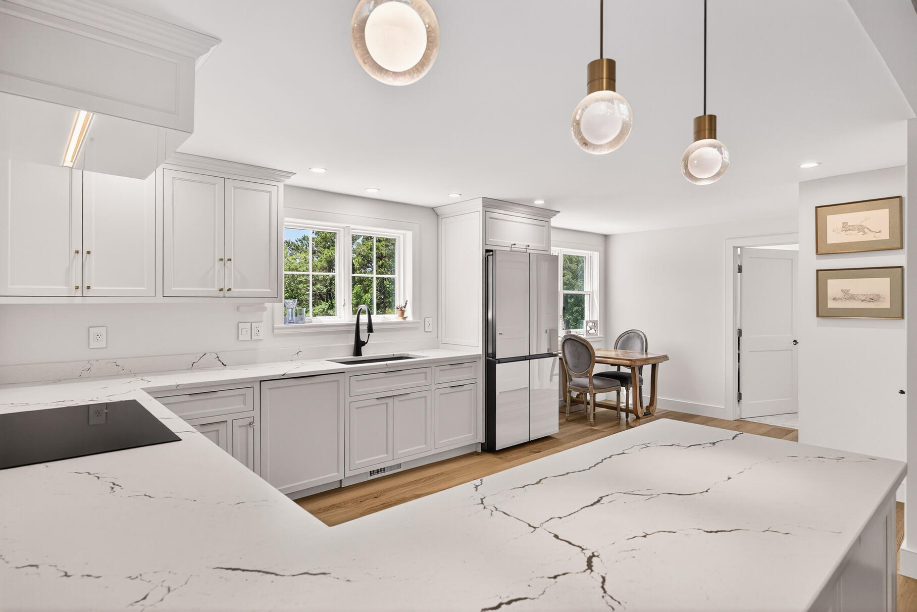 Completed in 2023, this newly built, fully electric home blends elevated design, sustainable living, and timeless Cape Cod charm. Set on 1.15 acres across two parcels (and surrounded by conservation) with private access to Blueberry Pond, the residence offers ~2,400 sq ft across three thoughtfully designed levels. The home was designed with a primary suite on each of the main levels, offering flexibility for multigenerational living or guests. The second floor serves as a private sanctuary, featuring an expansive primary suite with a sitting room, dedicated workspace, and views over native wildflower meadows to the water. The walk-out lower level--with separate entrance and driveway--functions as an ideal guest suite or income-generating Airbnb (earning ~$30K/year). Finishes include Miele appliances, heated towel rails, engineered hardwoods, and Pella windows. A HERS rating of 50, 400-amp power, solar-ready infrastructure, and dual EV chargers reflect true modern efficiency. A screened porch, outdoor shower, and curated gardens complete this rare Brewster retreat--just moments to the Rail Trail and First Light Beach. This home has a passing 4 bedroom Title V Septic.