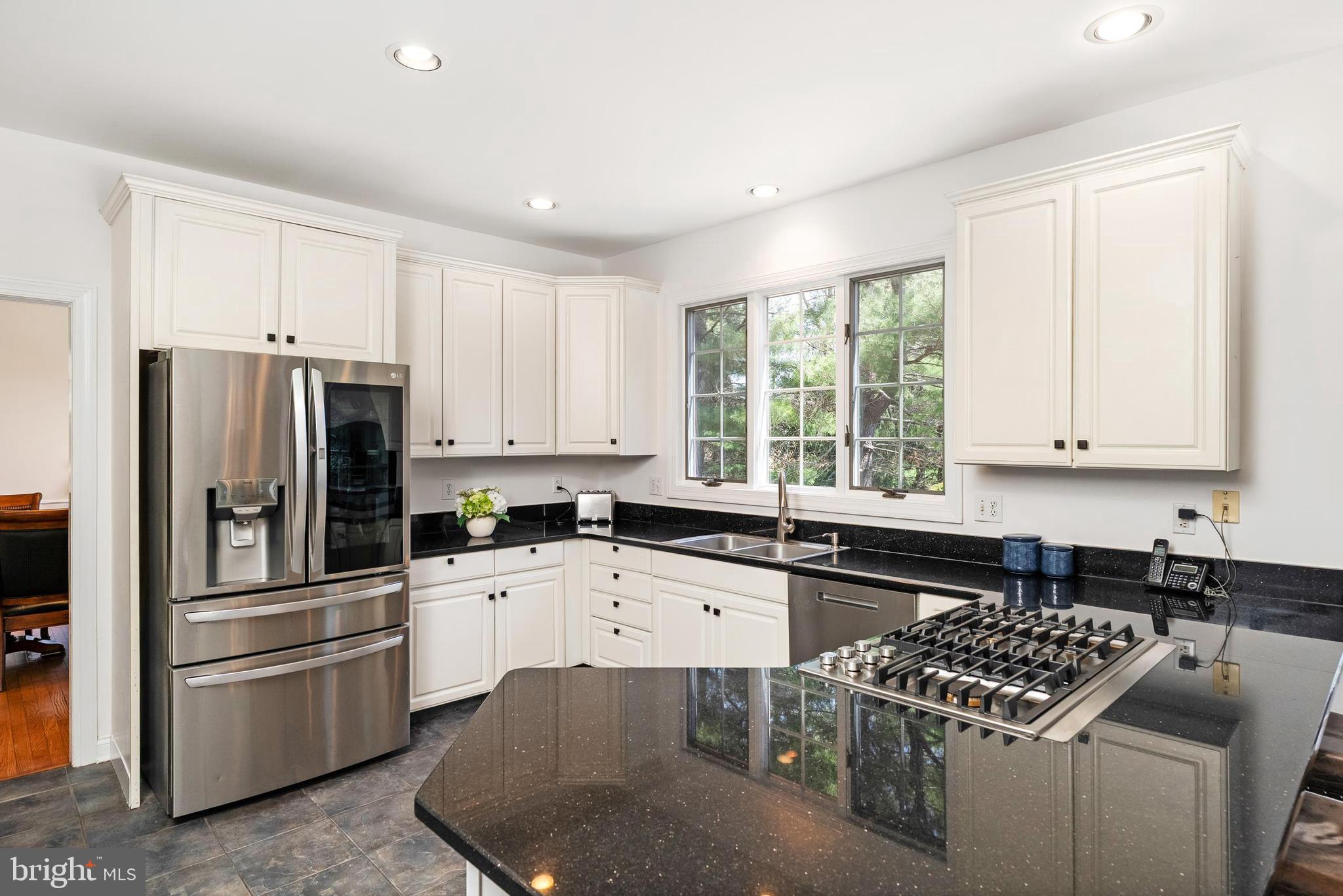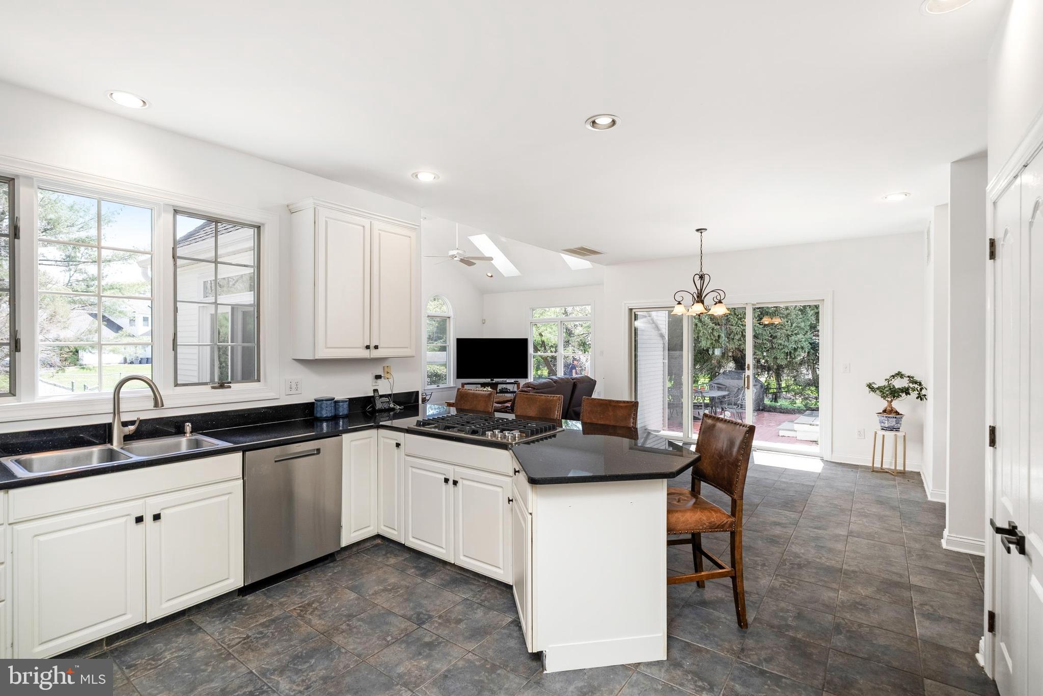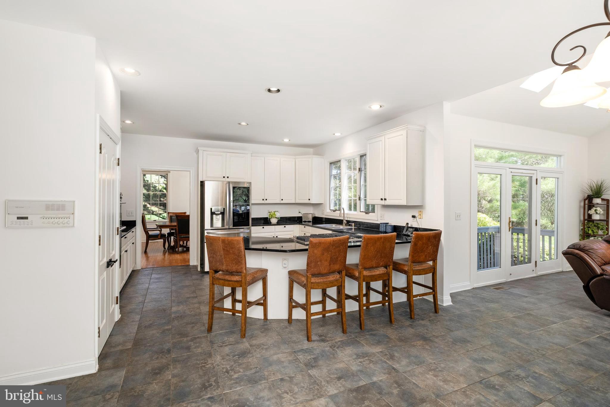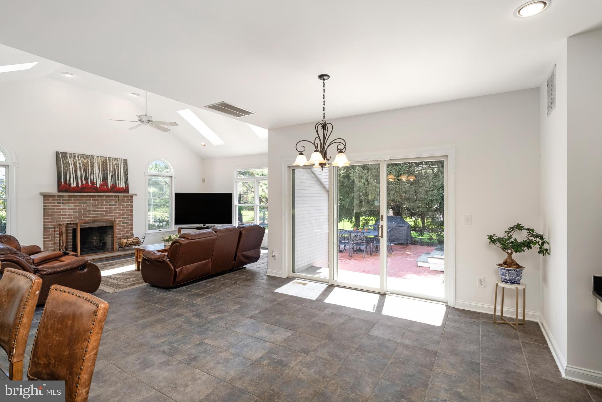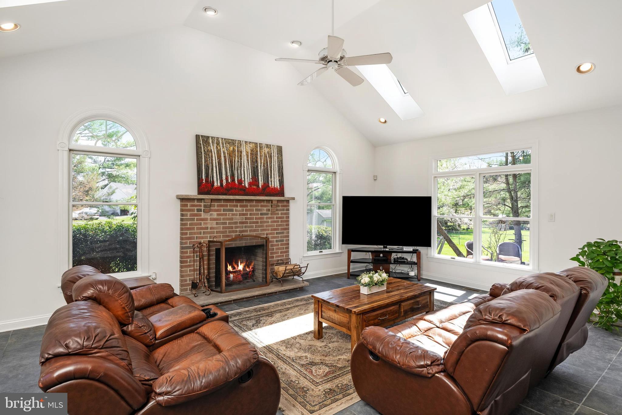 Welcome to 4 N. Longfellow Drive, the spacious St. Andrews model in the highly desirable Waterford Estates of West Windsor, known for its top-rated schools and prime Princeton Junction location. This spacious 6-7 bedroom, 4.5 bath home offers over 4,400 sq ft of versatile living space, two fireplaces (one gas the other wood burning) a first-floor library plus an in-law suite - ideal for multi-generational living or extended guest stays. The heart of the home is the open-concept kitchen and family room with skylights, where soaring ceilings, walls of windows, and abundant natural light create a warm yet dramatic gathering space. A standout feature is the separate suite above the garage, complete with two additional rooms and a full bath - perfect for guest quarters, a private retreat, 2nd home office or additional bedrooms. The home features hardwood floors throughout, a freshly painted interior, newer 3 zone HVAC, and a 7-year-old roof. The updated kitchen is equipped with a brand-new Jenn Air 5-burner cooktop with a down draft vented to the outside, new KitchenAid wall oven and microwave, and a newer French door refrigerator. A finished basement with a movie projector and screen adds additional entertainment space. Ideally located less than 4 miles from the Princeton Junction train station with direct service to NYC, this home offers the perfect blend of space, updates, and convenience.