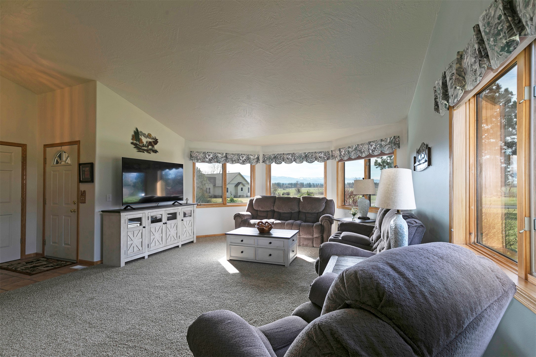Welcome to 5445 Wildlife Way, a beautifully maintained home in Bitterroot Valley Estates offering sweeping Bitterroot Mountain views and the peaceful Montana lifestyle buyers are searching for. Situated on 1.01 acres, this property delivers privacy, space, and convenience - just minutes from the Bitterroot River and an easy commute to Missoula. Designed for comfort and functionality, the main level features a spacious living room anchored by a cozy gas fireplace, a well-appointed kitchen and dining area, three bedrooms, and two full bathrooms. A mudroom with laundry hookups provides direct access to the insulated garage, adding everyday practicality. Updated luxury vinyl plank and carpet flooring within the past three years enhance the home's modern appeal. The primary suite offers a generous layout with dual vanities and a jetted garden tub, creating a relaxing retreat. The lower level expands your living space with a large family room, an oversized bedroom, a full bathroom, and two dedicated storage rooms - ideal for hobbies, gear, seasonal storage or a home gym. Outdoor living is where this property truly shines. Enjoy mature landscaping with underground sprinklers, a firepit gathering area, and an inviting back deck. Added indoor comfort is achieved with central air, a water softener, an iron filter and a reverse osmosis system. If you're looking for a Bitterroot Valley home with acreage, mountain views, and proximity to both outdoor recreation and town amenities, this property offers exceptional value and versatility. A fully furnished purchase is negotiable. If you're looking for a Bitterroot Valley home with acreage, mountain views, and proximity to both outdoor recreation and town amenities, this property offers exceptional value and versatility.