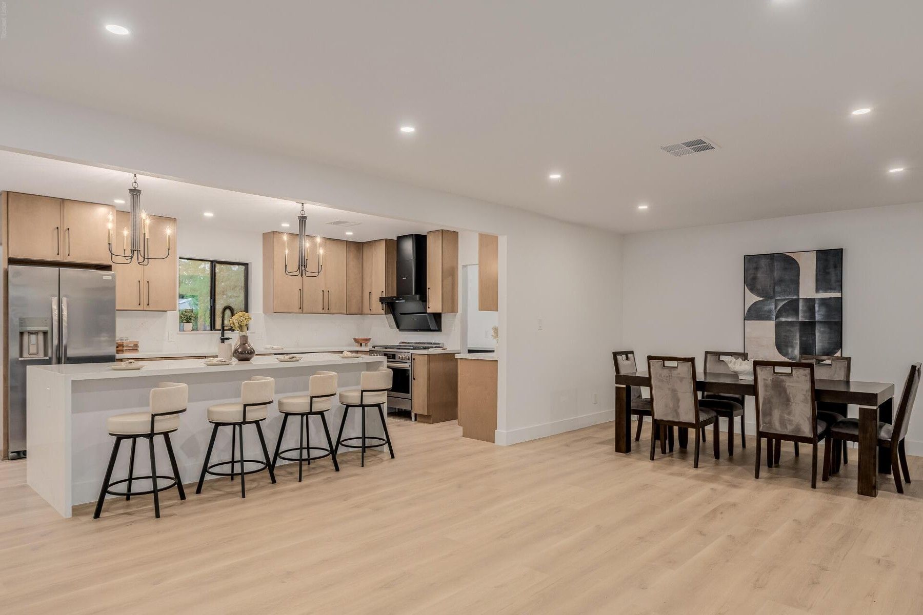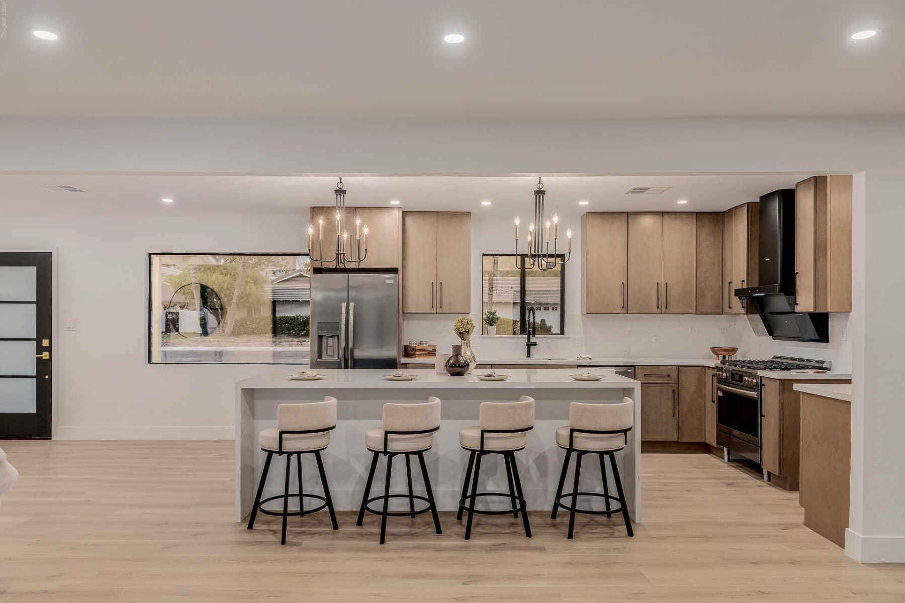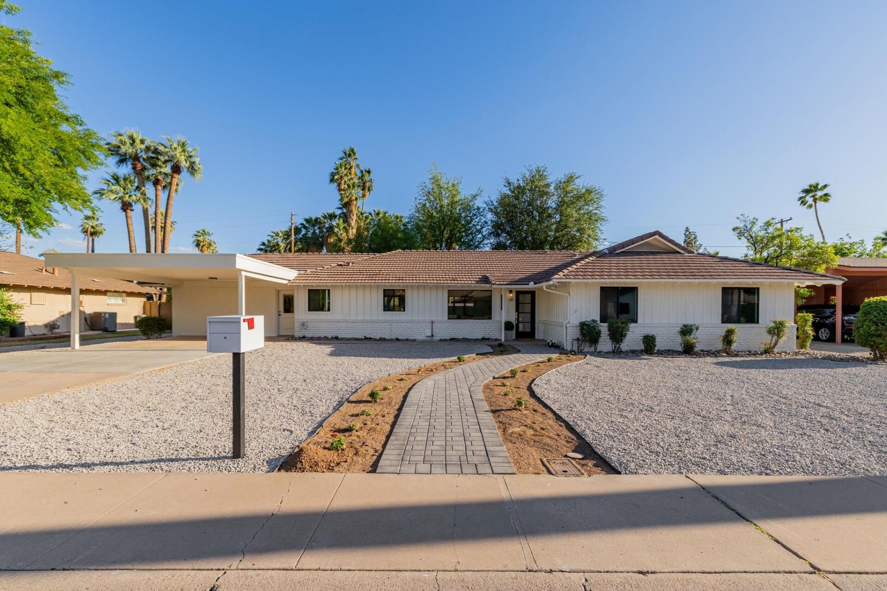 A fully remodeled, single-level home in Palm View Estates with no HOA, offering the space and layout buyers look for in this neighborhood. This 4-bedroom, 3-bath home includes an attached casita and a complete top-to-bottom renovation. The kitchen centers around an oversized island with quartz countertops, new cabinetry, and all-new appliances, opening to the main living and dining areas. Sliding doors lead to a large backyard, extending the living space outdoors for gatherings and entertaining. The primary suite features a spacious bedroom, walk-in closet, and backyard access. The attached casita includes its own bedroom, bathroom, walk-in closet, and washer/dryer hookup. Updates throughout include all-new flooring, cabinetry, windows, and doors, giving the home a clean, modern finish Located in the desirable Palm View Estates neighborhood, with Butler Park just a short walk away for green space, walking paths, and everyday outdoor enjoyment.