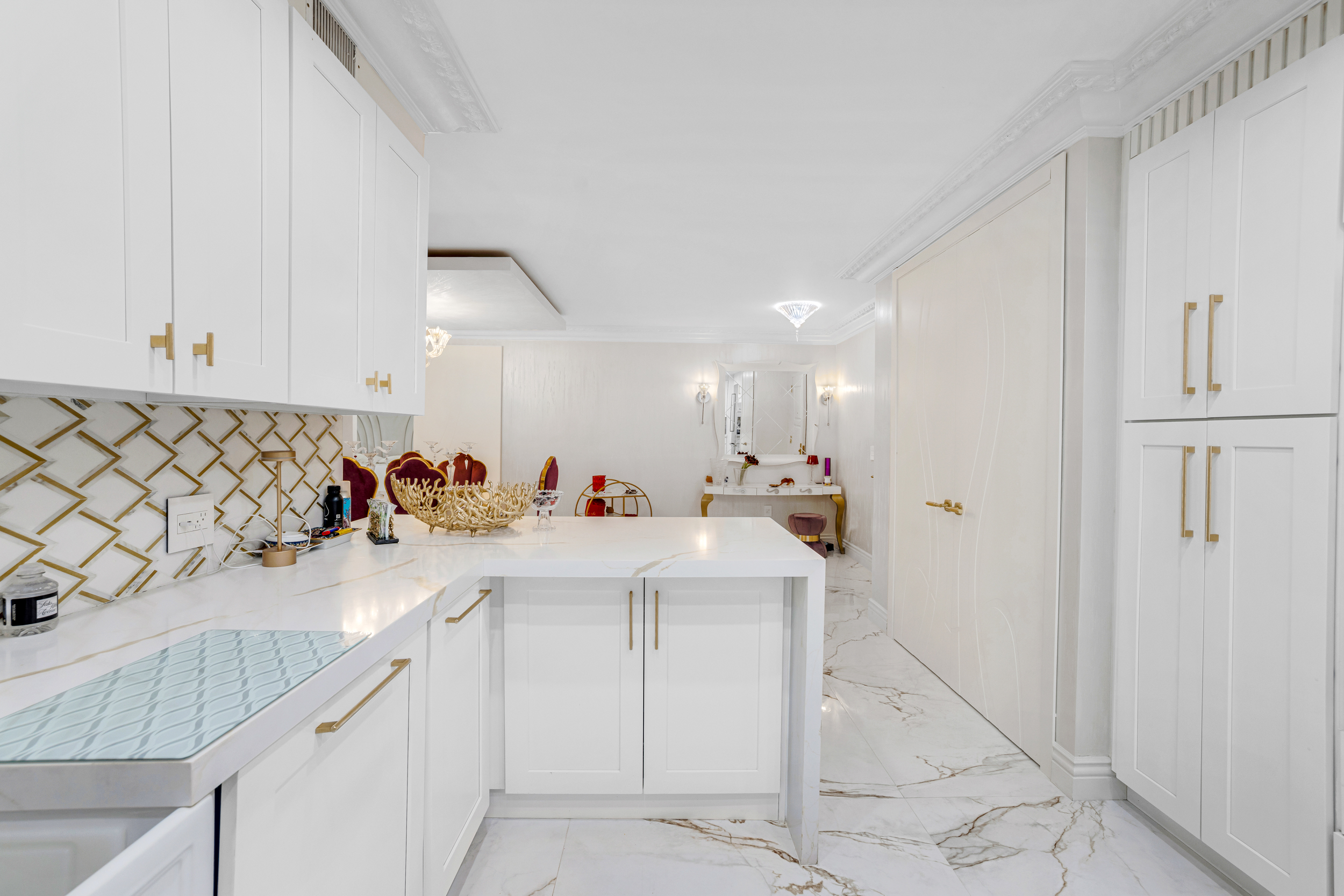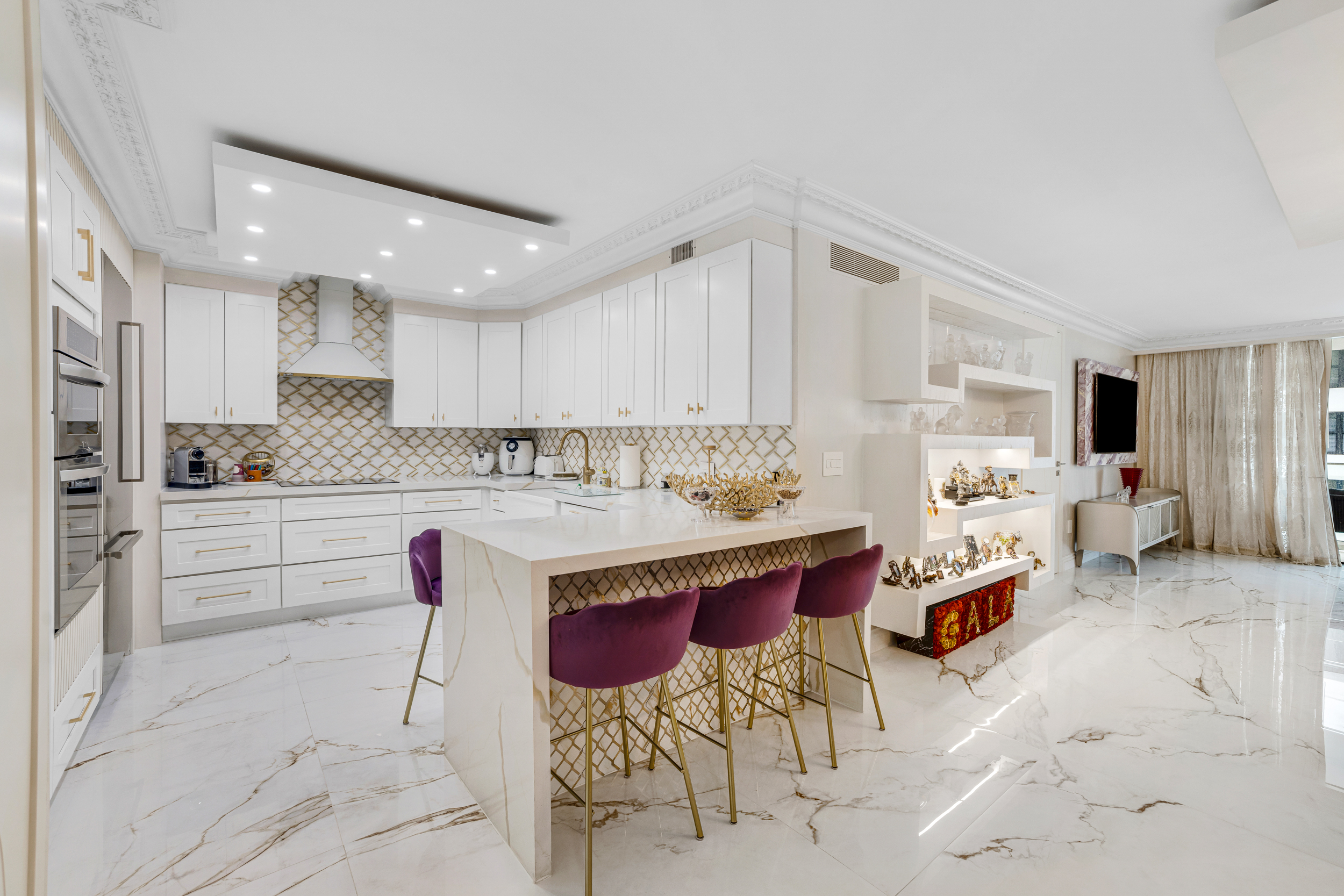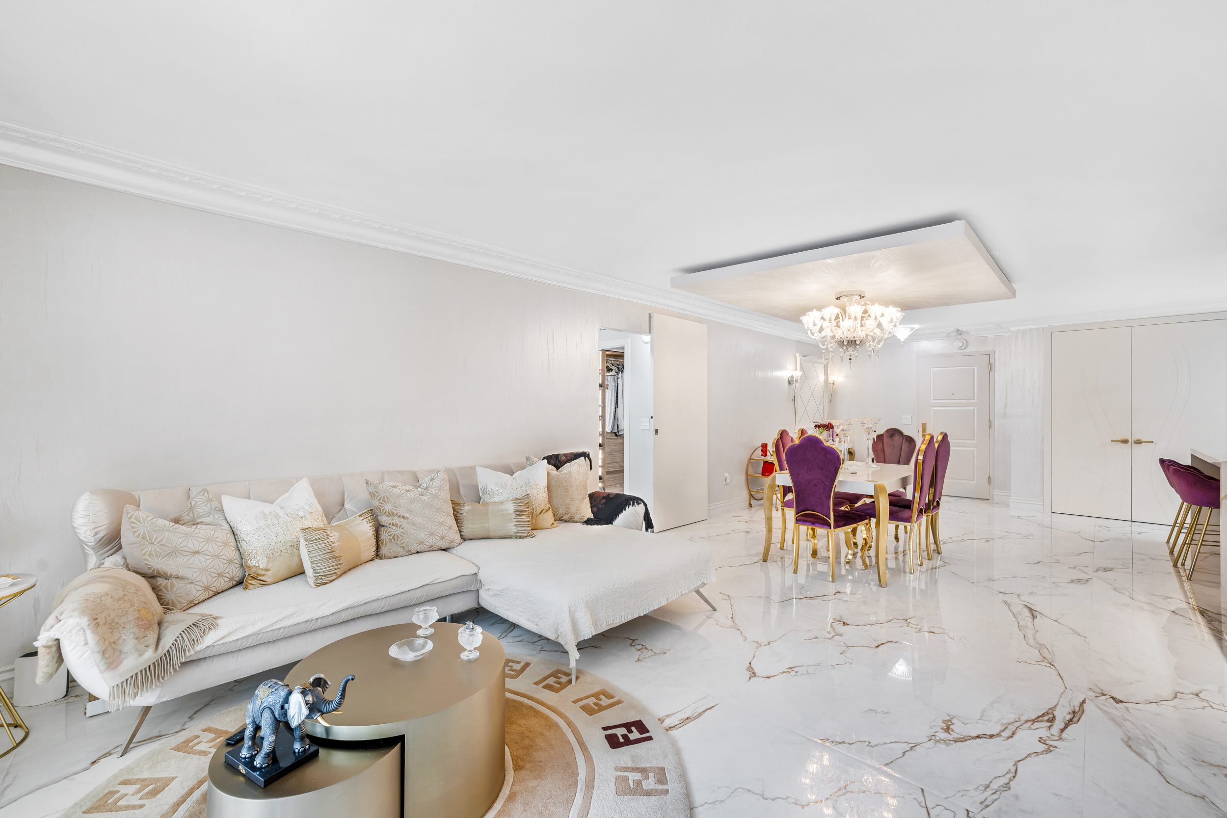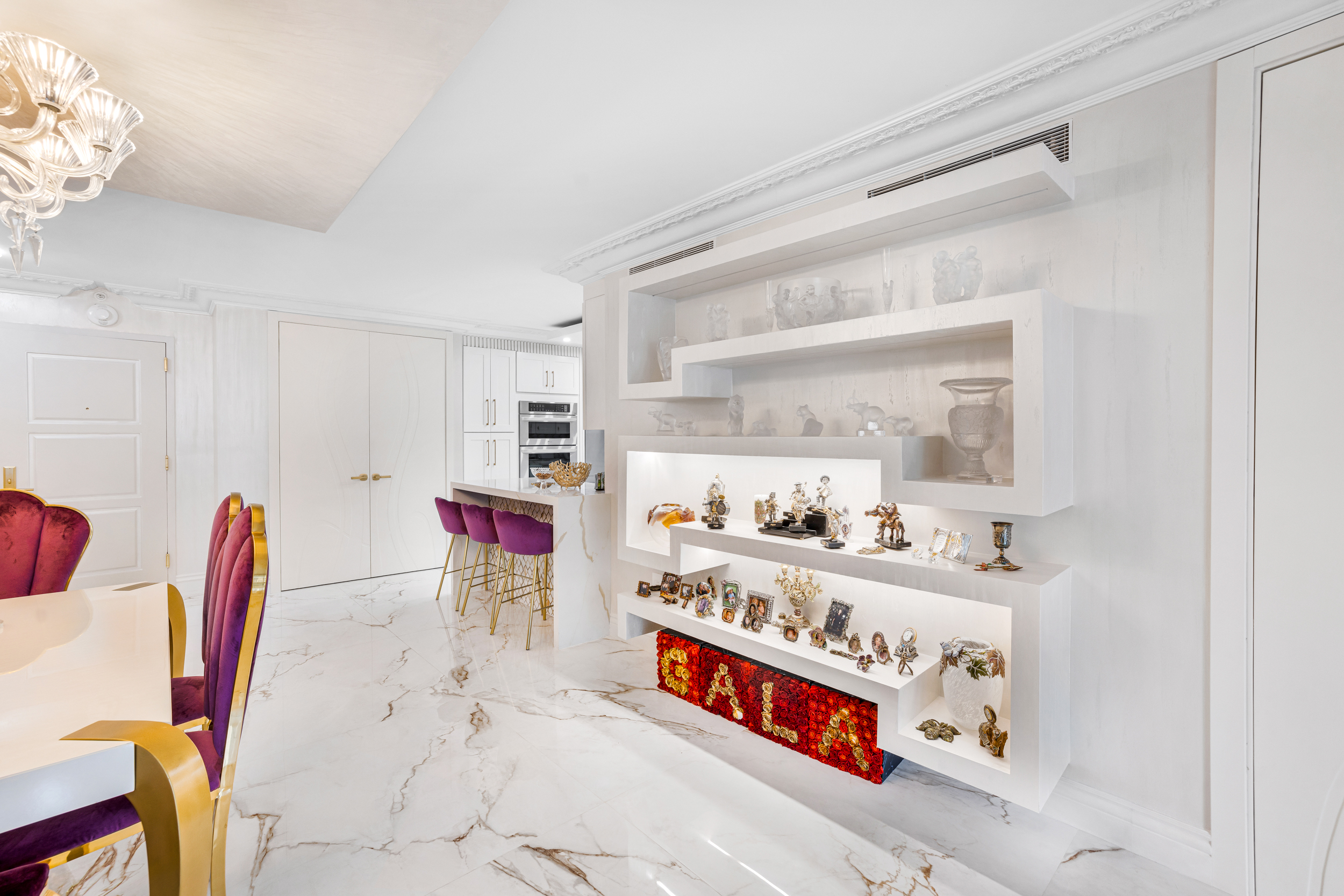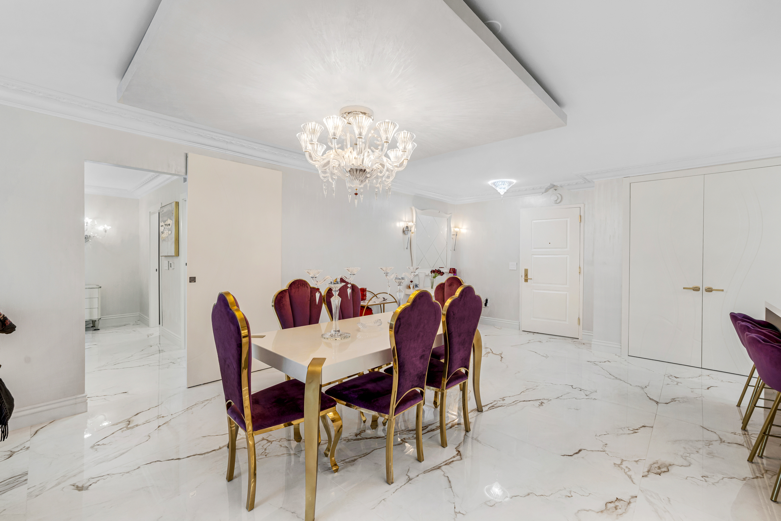 Truly turnkey, this stunning 2 bed 2 bath condo on the 19th floor of the Balmoral was fully renovated in 2025 with no detail overlooked. From the moment you enter, you’re greeted by dramatic 48” onyx porcelain floors and stunning Baccarat fixtures, chandelier and sconces, that set the tone for this elegant, light-filled home. The designer kitchen is both functional and refined, featuring new appliances, custom cabinetry and sophisticated lighting throughout. The living room features crown molding, integrated display shelving, and beautiful designer furnishings. The primary suite offers beautifully crafted custom closets, including a curated display space for handbags and accessories—bringing a level of luxury rarely found. Enjoy resort-style living at the Balmoral with 5-star amenities including concierge, valet, beach and pool service, restaurant, fitness center, 24-hour security, and on-site salon. Ideally located directly across from the world-renowned Bal Harbour Shops and just moments to Harding Avenue, dining, and houses of worship. Some amenities temporarily unavailable due to ongoing renovations. Set high above the coastline, the residence enjoys captivating ocean views and access to the Balmoral’s full-service beachfront lifestyle. A rare opportunity to own a turnkey, design-driven home in one of Bal Harbour’s most sought-after addresses.