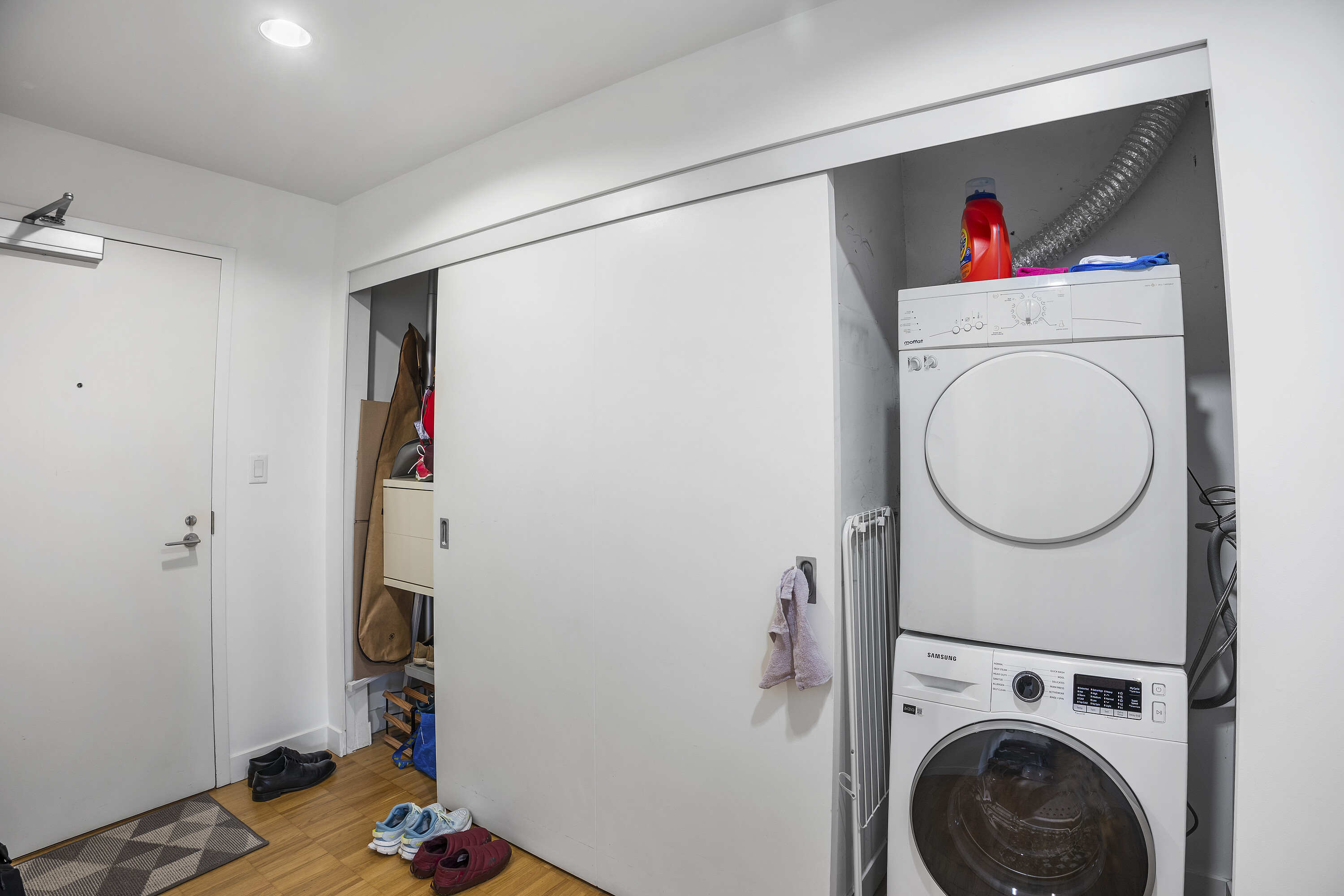 Historic location in an iconic tower. Welcome to Woodward’s in Gastown one of Vancouver’s most recognizable buildings. This prized corner one bed floorplan is the most coveted in the building, with incredible views of the North Shore, Harbour, and Burnaby Mountain. Enjoy the morning sun while sipping your morning coffee. The spacious floorplan offers a huge amount of space and a great layout. You also get a dedicated parking stall (incredibly rare for the building). As an owner, you'll have access to the incredible rooftop Club W, where you can work out with stunning views, use the free Wi-Fi to get things done, play a game of pool, or unwind in the hot tub overlooking the city. This is a great starter home for those looking to get into the market. Don’t miss this opportunity.