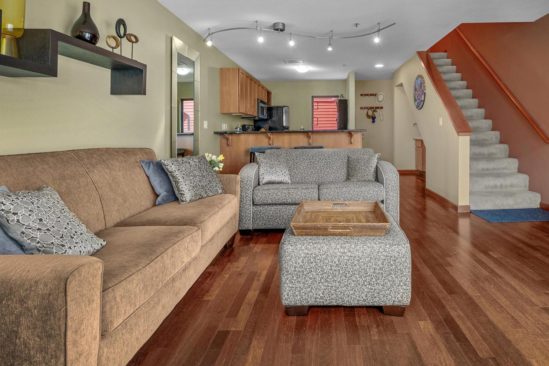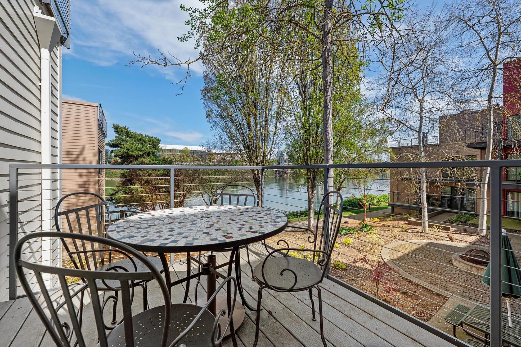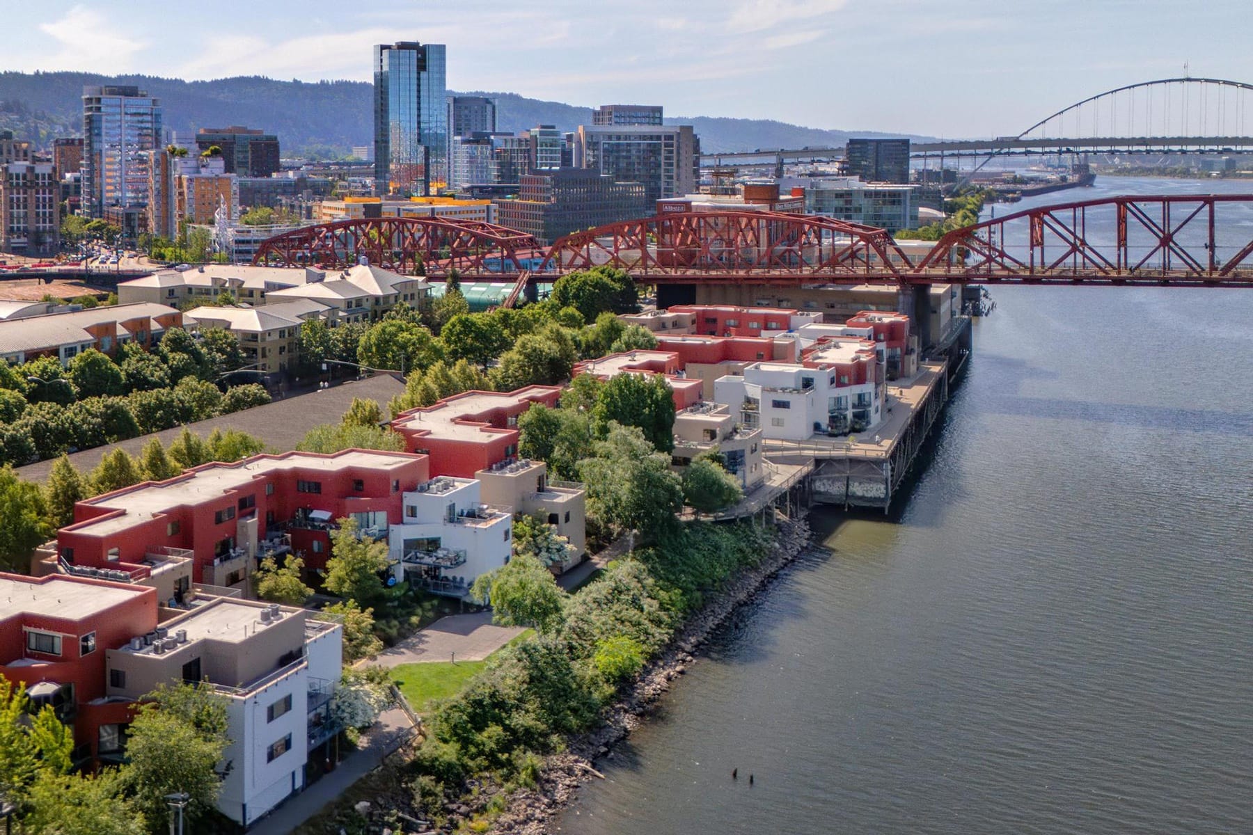 Enjoy a rare opportunity to own a 2-bedroom, 2-bath riverfront condo with a private rooftop deck ' priced under $300k. This immaculate corner unit at McCormick Pier offers sweeping Willamette River views from both levels, including a spacious rooftop deck off the primary suite. The open main level features hardwood floors, granite countertops, stainless steel appliances, and a light-filled living area that opens to a private balcony with river and courtyard views. A flexible main-level room with a Murphy bed easily functions as a guest bedroom or home office. Located in a fully gated community with 24-hour security, amenities include a pool, hot tub, fire pits, and BBQ areas. Deeded covered parking and central A/C add everyday convenience. Step outside to miles of riverfront paths and green space just beyond your door, with easy access to the Pearl District, downtown, Union Station, and Moda Center. Enjoy front-row views of Portland's river life, including the Christmas Ships and Rose Festival Fleet. Possible boat slip opportunities. See video!