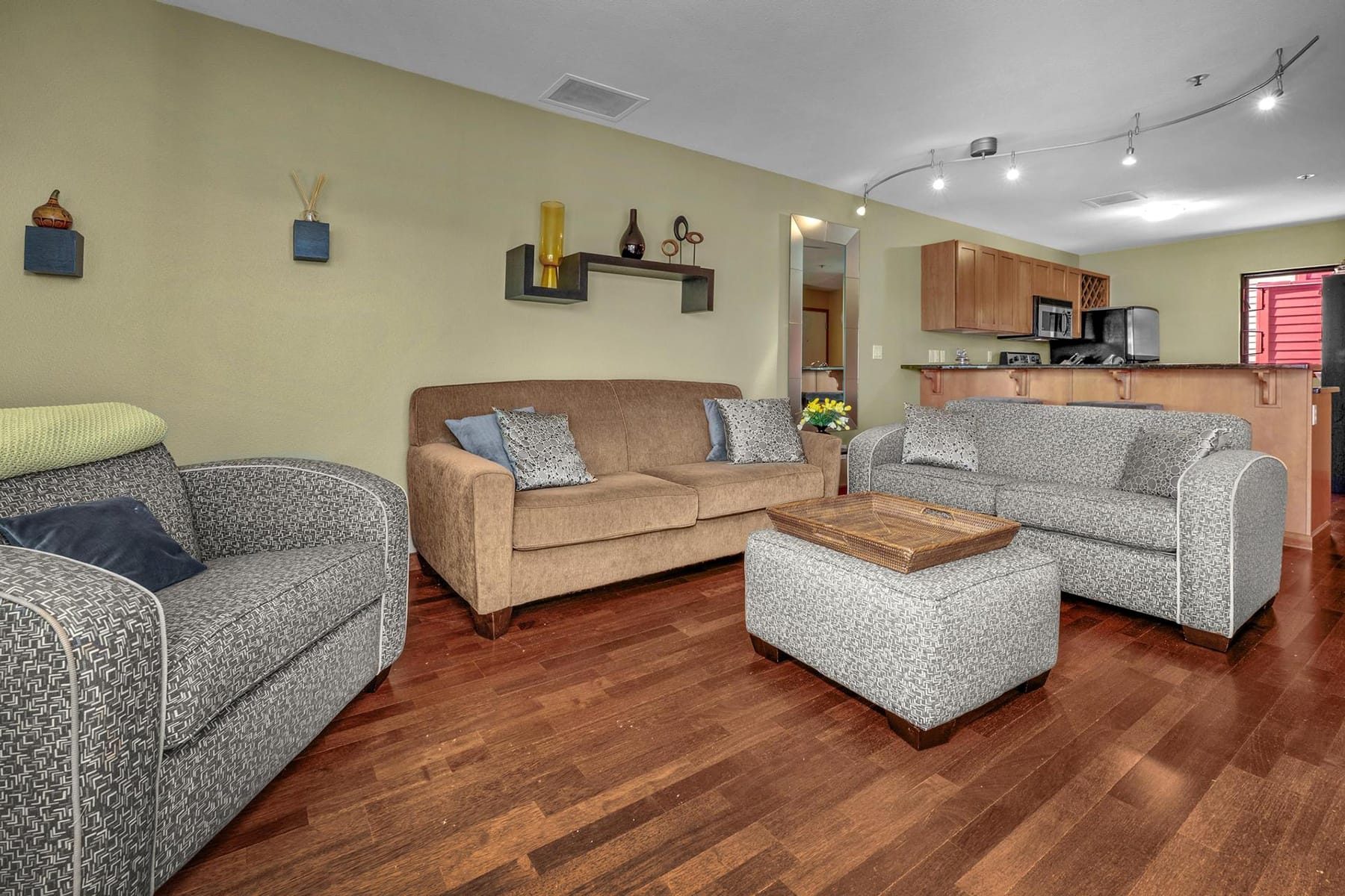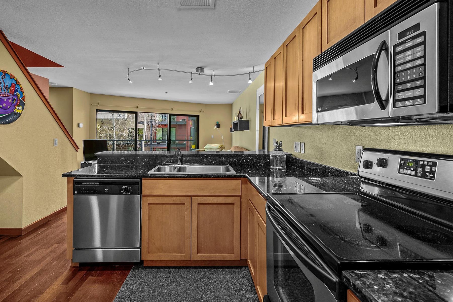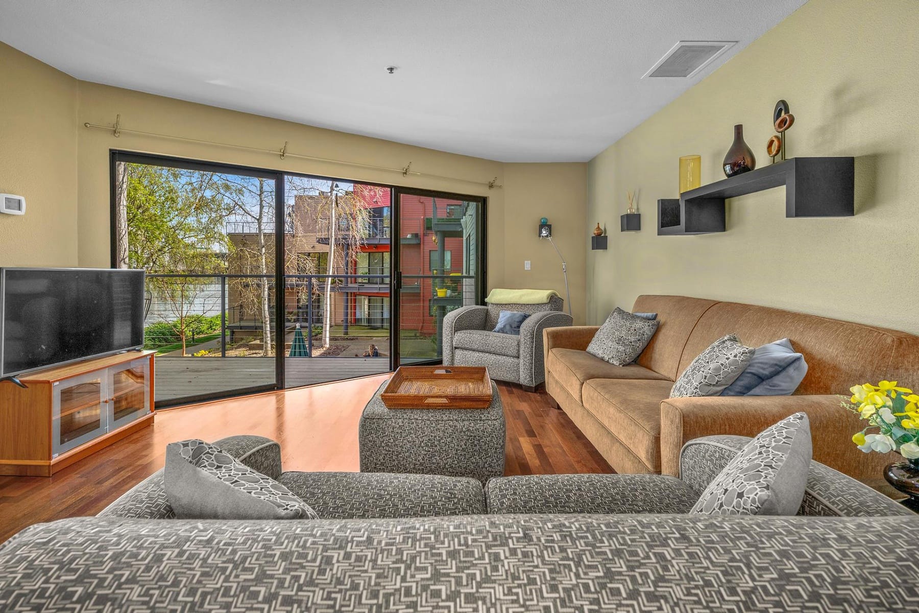 Enjoy a rare opportunity to own a 2-bedroom, 2-bath riverfront condo with a private rooftop deck ' priced under $300k. This immaculate corner unit at McCormick Pier offers sweeping Willamette River views from both levels, including a spacious rooftop deck off the primary suite. The open main level features hardwood floors, granite countertops, stainless steel appliances, and a light-filled living area that opens to a private balcony with river and courtyard views. A flexible main-level room with a Murphy bed easily functions as a guest bedroom or home office. Located in a fully gated community with 24-hour security, amenities include a pool, hot tub, fire pits, and BBQ areas. Deeded covered parking and central A/C add everyday convenience. Step outside to miles of riverfront paths and green space just beyond your door, with easy access to the Pearl District, downtown, Union Station, and Moda Center. Enjoy front-row views of Portland's river life, including the Christmas Ships and Rose Festival Fleet. Possible boat slip opportunities. See video!