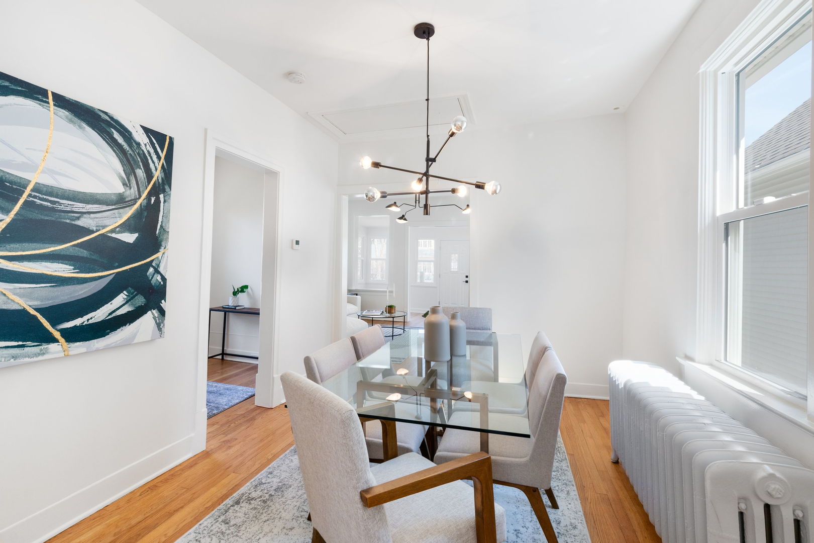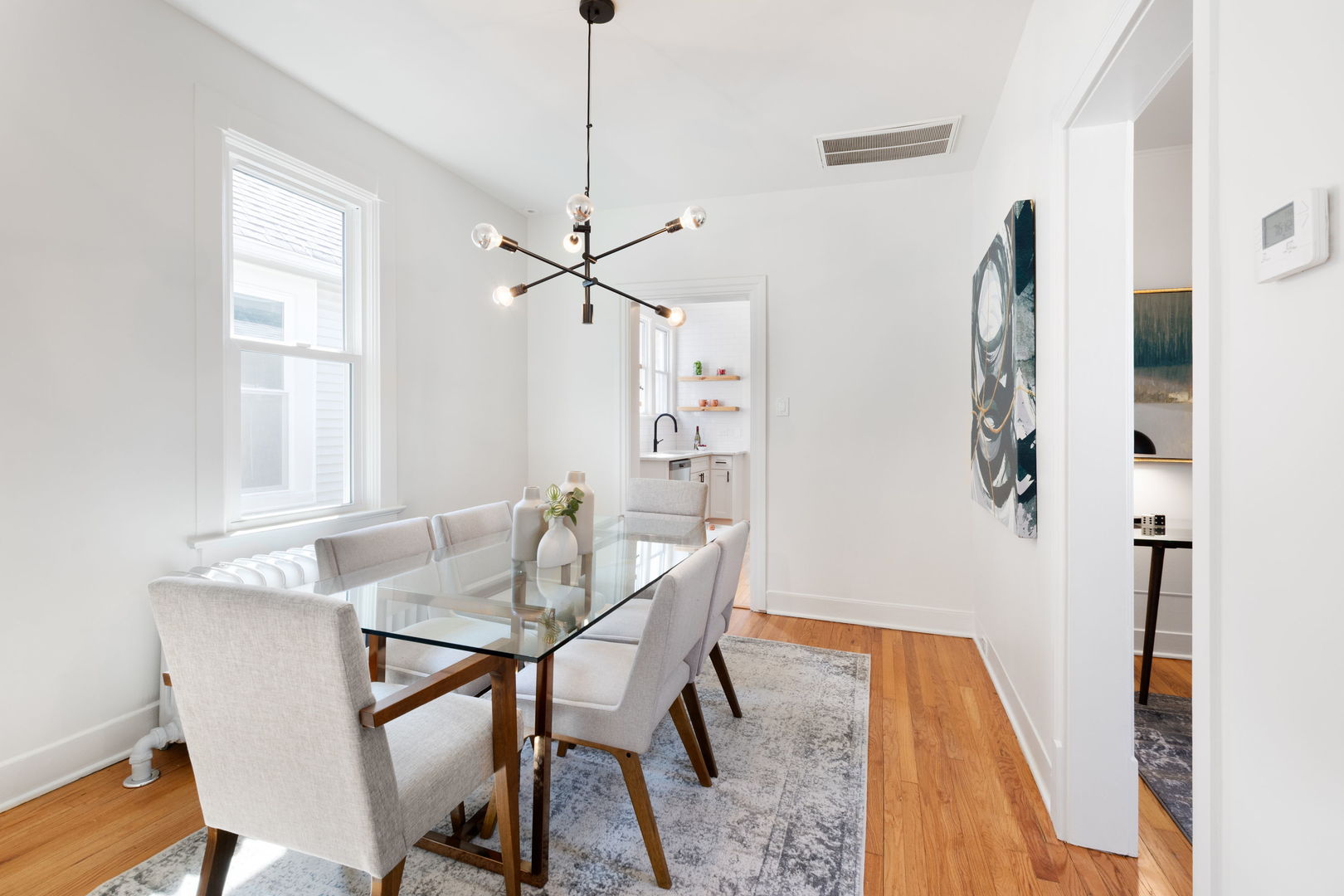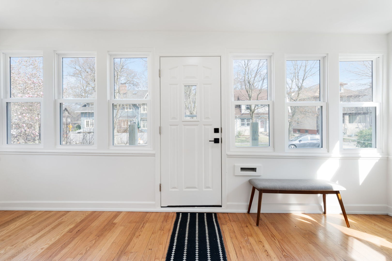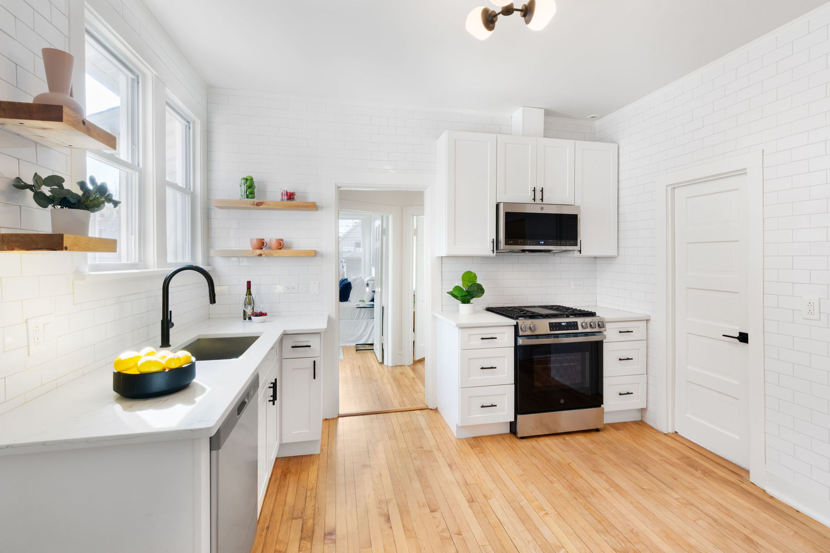 Adorable, move-in ready, freshly updated vintage farmhouse blends timeless character with stylish + thoughtful updates! Perfect walkable location in the heart of Evanston! (Check out drone video) Two short blocks to Dewey Elementary, Cherry pre-school, Penny Park + ETHS. Hard to find, one floor starter home with sunny main level featuring 9' tall ceilings + three bedrooms + one full bath all on same level. Bright enclosed front porch perfect for your all your plants welcomes you the minute you come home. The spacious living room + separate dining room have newly refinished original oak hardwood floors, designer lighting + newer argon gas filled replacement windows. Brand new modern white kitchen with open shelving, shaker cabinetry, quartz counters, GE stainless steel appliances, subway tile walls + matte black hardware. Downstairs, the finished lower level with recessed lighting adds incredible versatility with a cozy family room/playroom open floorplan flex space + a beautiful full bath with custom glass enclosed shower with hand spray. Large laundry room with new LG ThinQ washer & dryer on pedestals. Side entrance with a little mudroom off the kitchen, plus separate basement side entry perfect for guests or even Airbnb possibility. HUGE extra wide sunny 50 x 138 lot! BIG fully fenced backyard with a gorgeous mature flowering magnolia tree, evergreens + pine trees ready for all your gardening ideas, playtime or summer entertaining! Tons of storage space in basement and crawlspace. Almost new two and a half car garage. A warm modern aesthetic, a prime location near NU, Davis St. Metra/CTA + downtown Evanston's shops + restaurants, make this home a rare find. See list of improvements under additional info for complete list of upgrades!