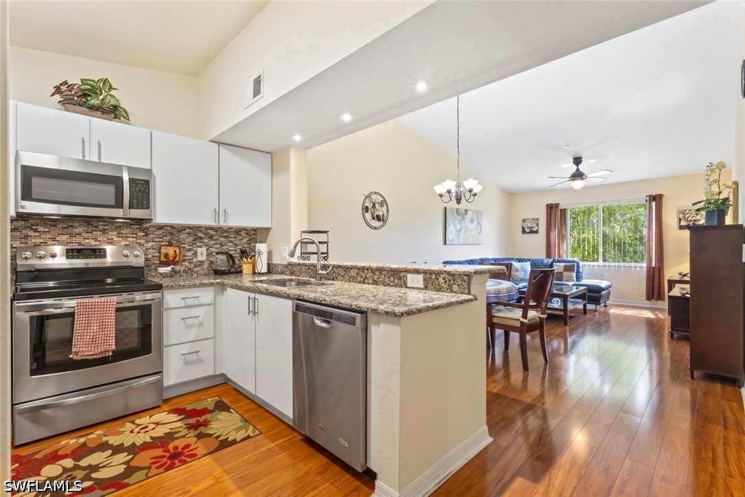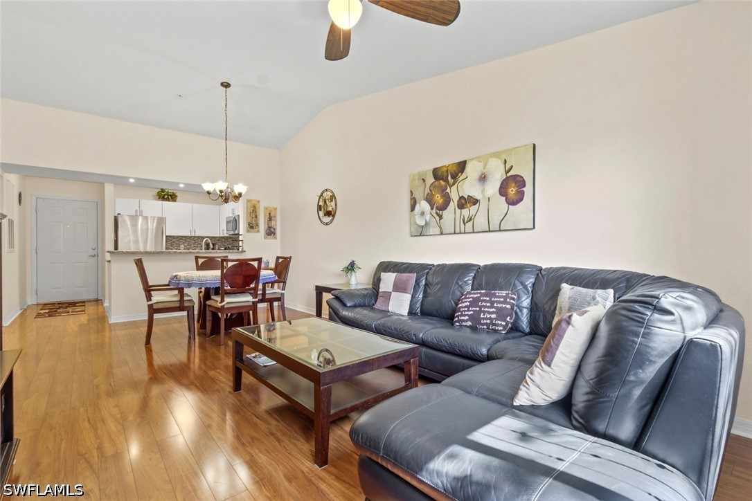 Welcome to easy, breezy Florida living in this beautifully updated third-floor condo in Key Royal community in North Naples. With soaring ceilings and an abundance of natural light, this home feels open, airy, and instantly inviting. The stylish kitchen is ready for anything from morning coffee to dinner with friends, featuring granite countertops, stainless steel appliances, and a sleek tile backsplash. Warm wood flooring flows through the main living areas, adding a touch of elegance, while the bathroom and laundry spaces offer durable, easy-care tile. Thoughtful upgrades throughout, like modern lighting, updated fixtures, a refreshed vanity, and polished finishing touches, give this condo a clean, contemporary feel without lifting a finger. Plus, your covered carport keeps your car cool. Living in this gated community feels like a permanent getaway with fantastic amenities to enjoy. From a clubhouse, large heated pool, and relaxing spa with a charming Tiki hut to an exercise room, billiards, library, poker/games area, and a business center, there's something for everyone! And your furry friends are welcome to join in the fun too! With a well-maintained community and an onsite property manager available five days a week, you'll feel completely at home here. The location is unbeatable, just a 15-minute drive to stunning beaches and 25 minutes to the International Airport. Plus, you're within walking distance to great restaurants, shops, bars, and a new hospital. With an A-rated Naples school district nearby, including Gulf Coast High School just a short walk away, it's the perfect spot for everyone! Whether you're looking for a full-time residence, seasonal escape, or smart investment, this move-in-ready gem checks all the boxes. Come see it before someone else calls it home!