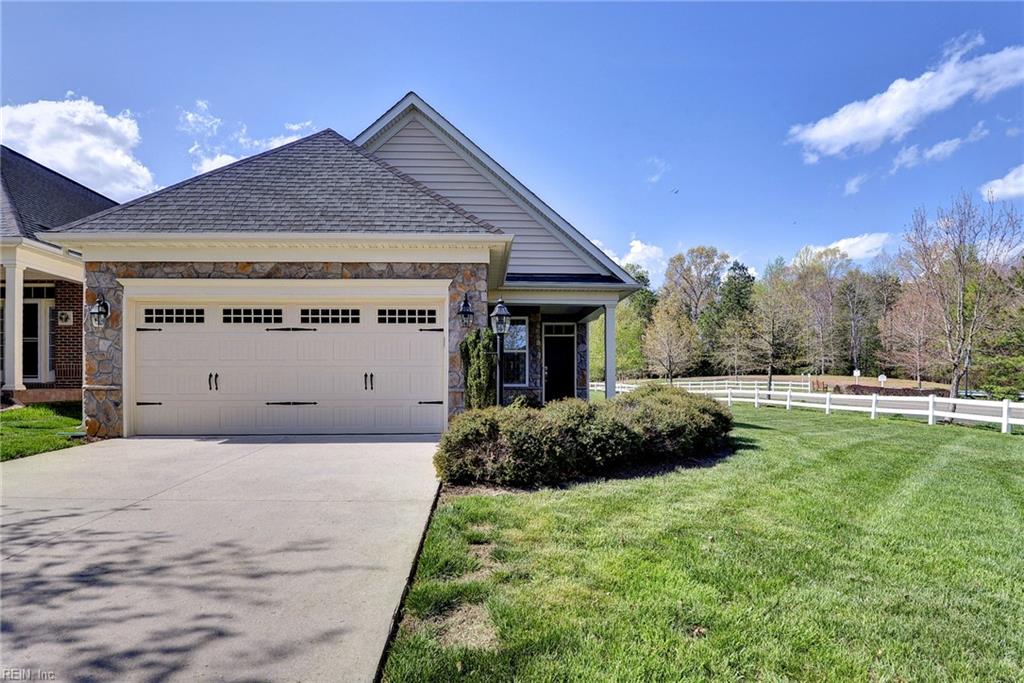 One level living at its finest with this adorable Belle Grove Cottage Series bungalow in the heart of Williamsburg's Premier 55+ Gated Community, Colonial Heritage! Low maintenance and new luxury vinyl plank flooring throughout. Open concept with a gracious living room and dining room sharing a cozy gas fireplace. Lovely kitchen featuring stainless steel appliances and granite countertops. The sizable primary suite features two closets and dual vanities and an oversized shower. An additional bedroom shares another full bath. A private office and a laundry room leading to the two car garage and utility closet completes this fantastic floor plan! Enjoy the lovely corner lot from your private back porch with easy access to the neighborhood walking trails. Bright and airy, see this one first!