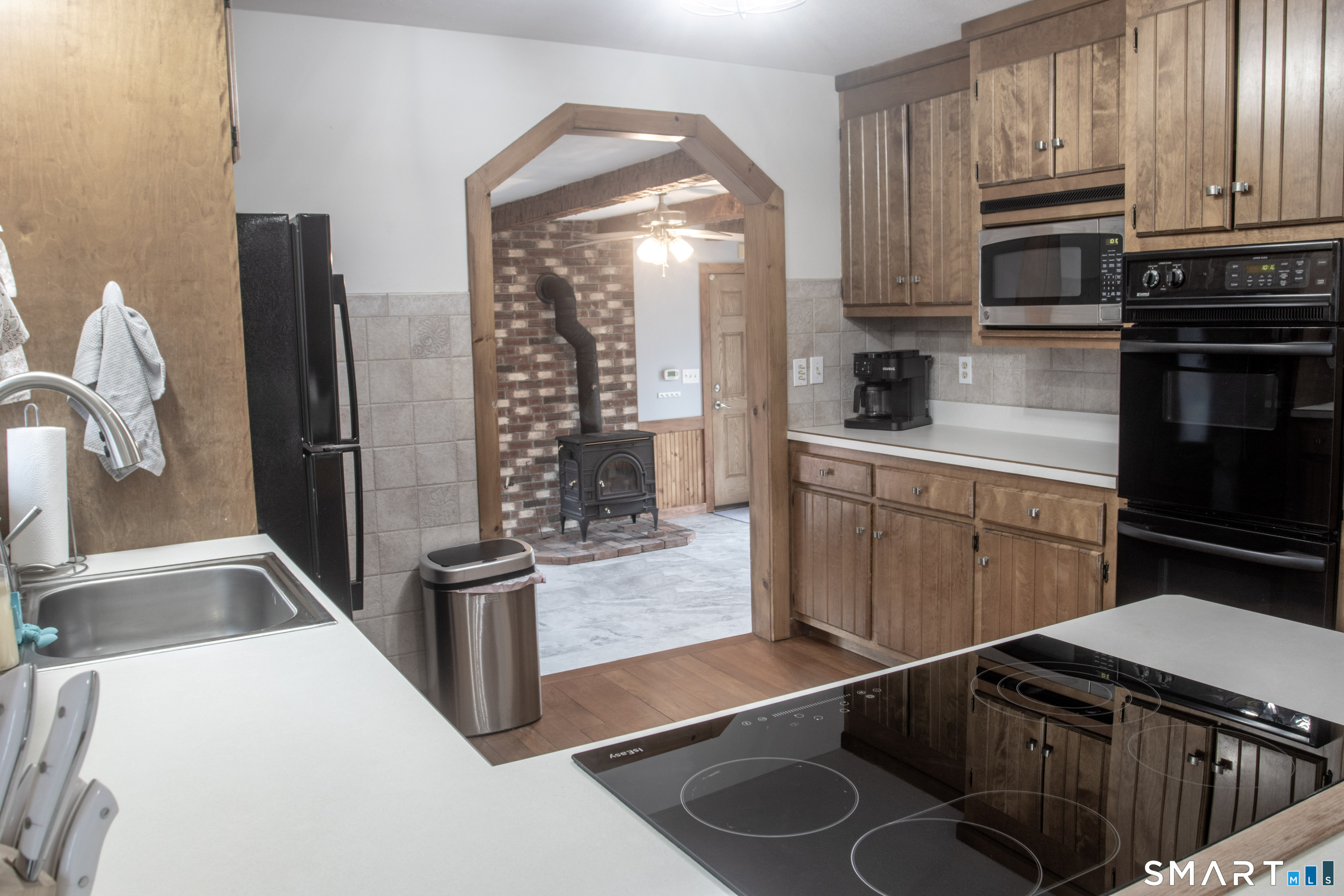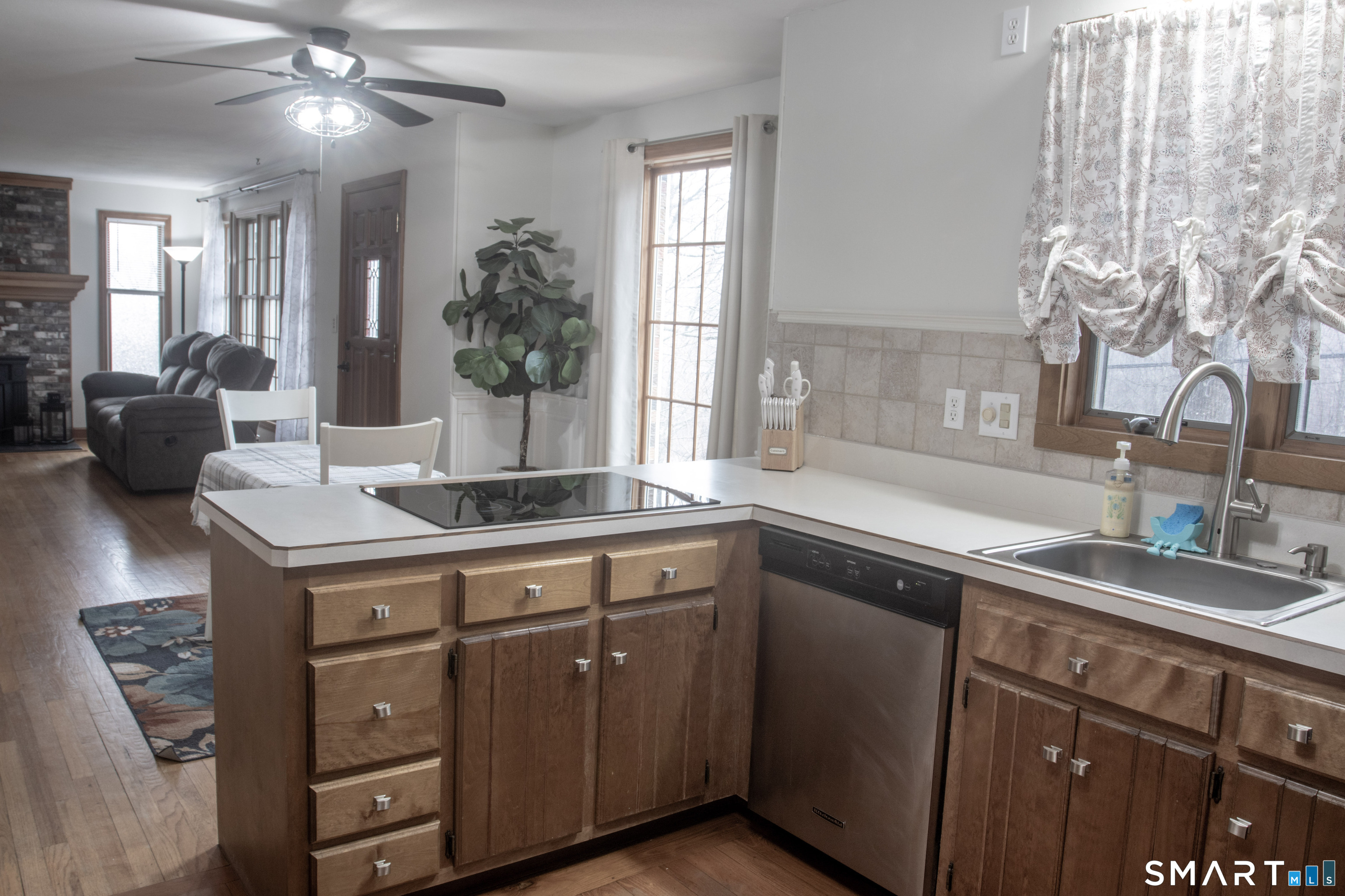 GOLF COURSE VIEWS & TURN-KEY COMFORT! This sun-drenched 3BR/3BA home offers the perfect blend of space, flexibility, and lifestyle. Designed with today's living in mind, the home features a highly desirable first-floor bedroom and beautifully updated full bath, ideal for single-level living or hosting guests. At the heart of the home, a bright and inviting living room showcases oversized windows and a striking brick fireplace with a wood-burning insert, flowing effortlessly into the dining area, kitchen, and family room, perfect for everyday living and entertaining. A cozy den overlooks the private backyard, while a convenient mudroom provides direct access to the oversized two-car garage. Upstairs, you'll find two generously sized bedrooms, a stylishly renovated full bath, and excellent storage, including easy-access attic space. The finished lower level expands your living space with a recreation room, laundry area, and an additional full bath. Recent improvements and features include a newer roof, new well pump, hardwood floors, split duct A/C, and solar panels for energy efficiency and long-term savings. Step outside to enjoy a spacious backyard complete with an oversized deck and patio, perfect for relaxing or entertaining. Take in picturesque views of the Eastwood Country Club golf course right from your front yard. Set in a peaceful, country-like setting yet conveniently located just minutes from shopping, dining, and major routes.