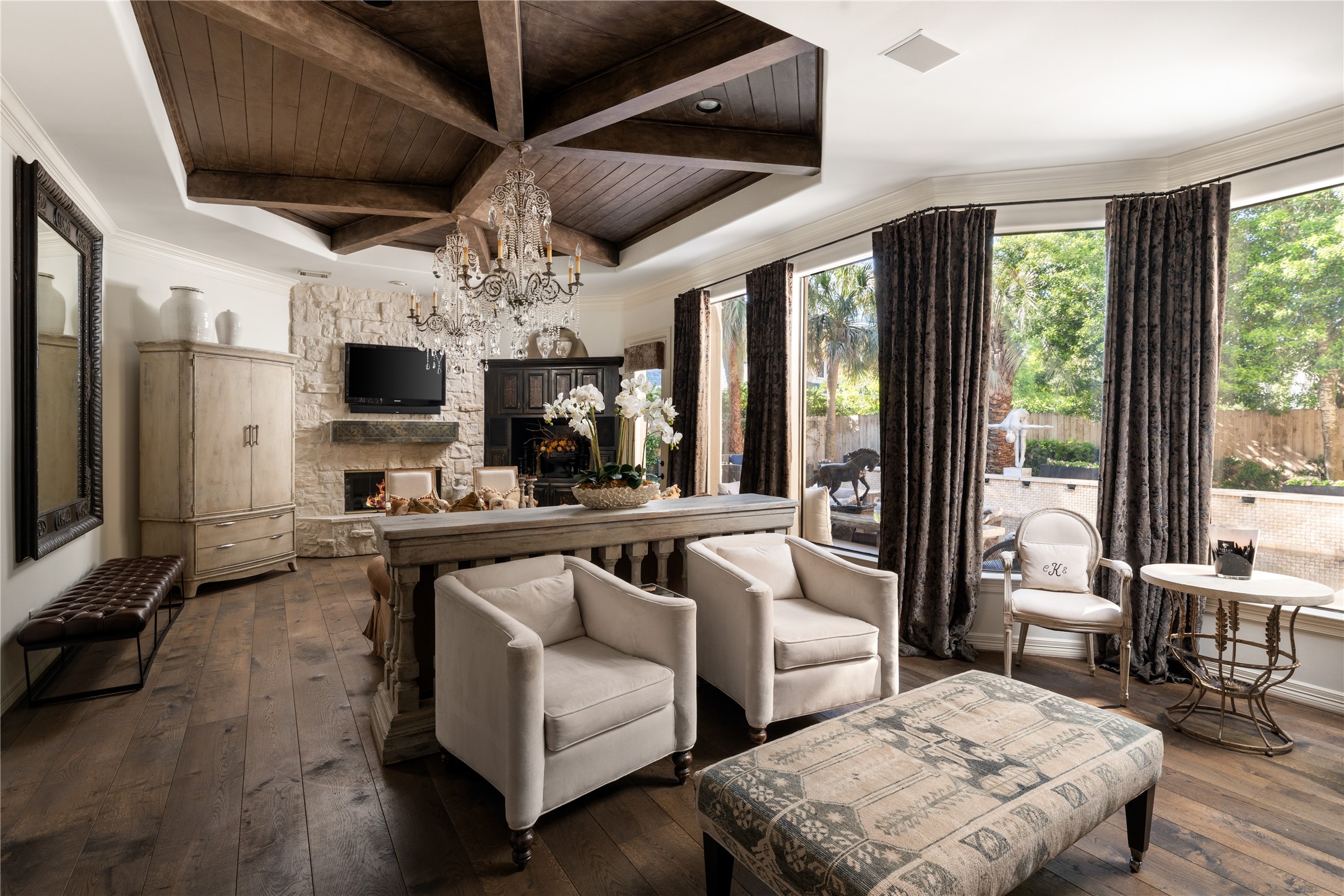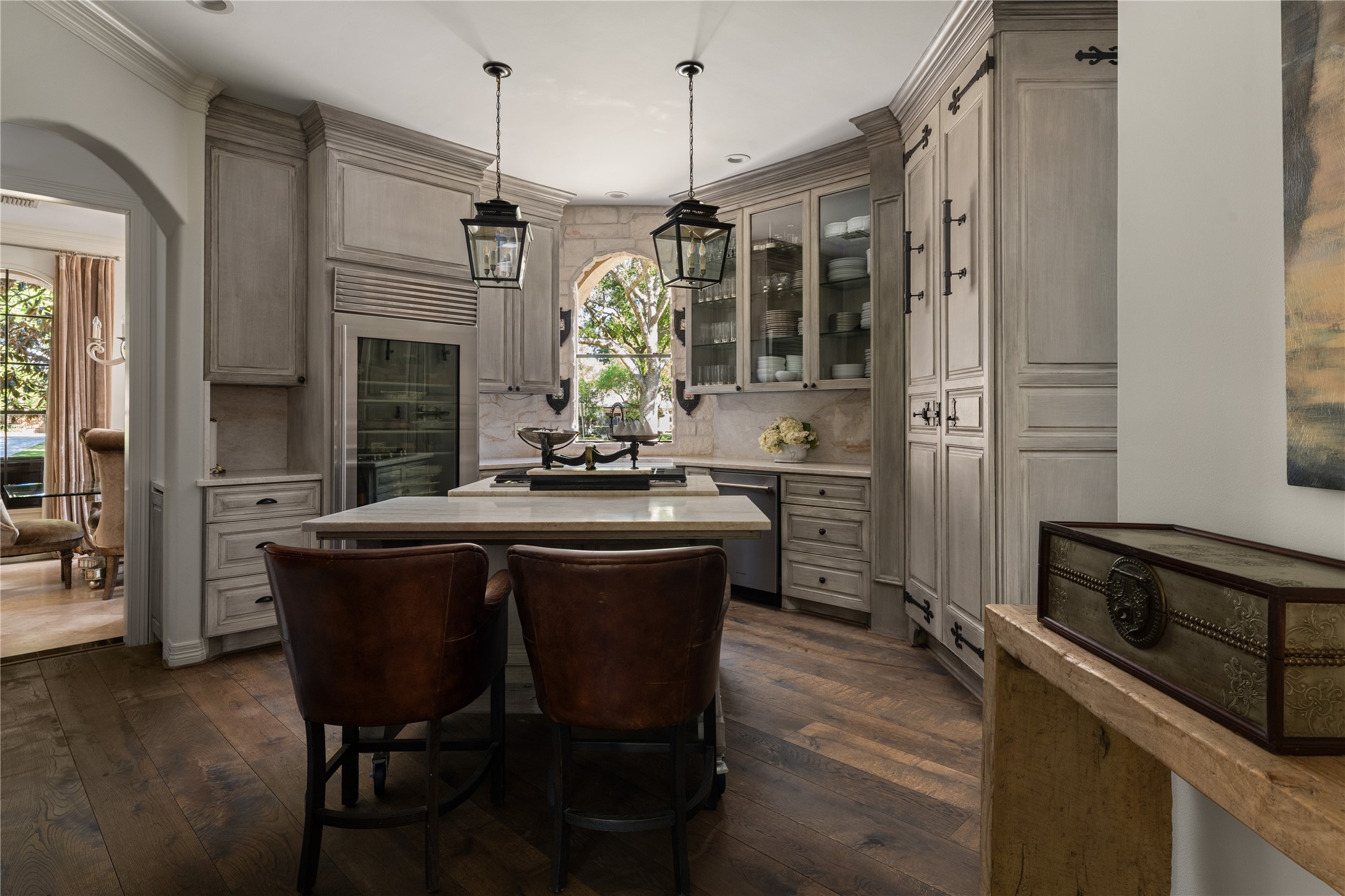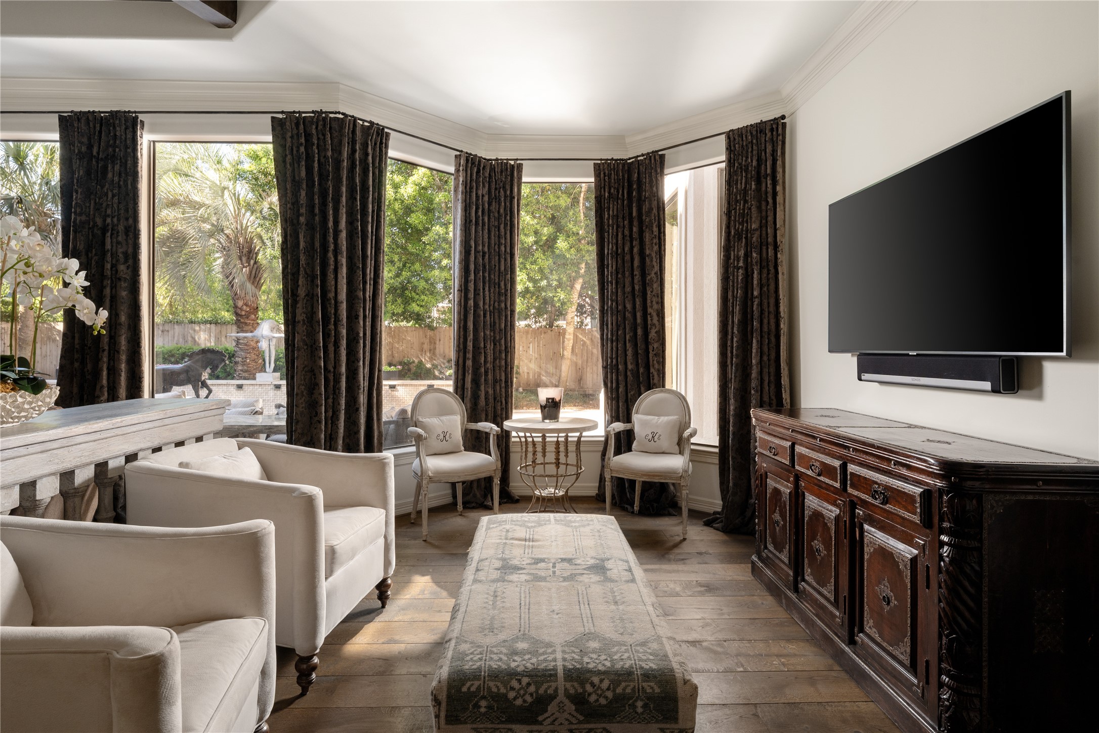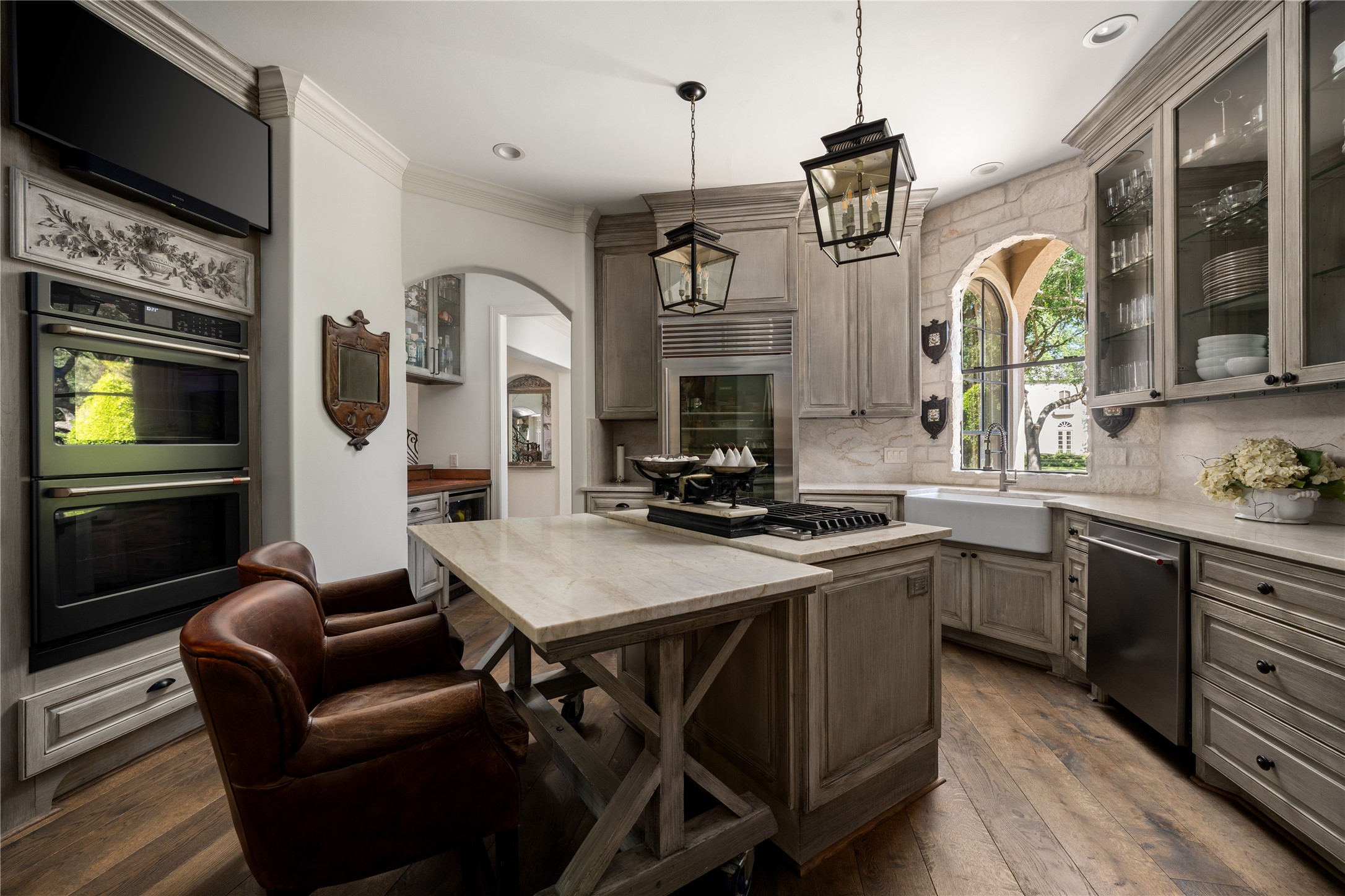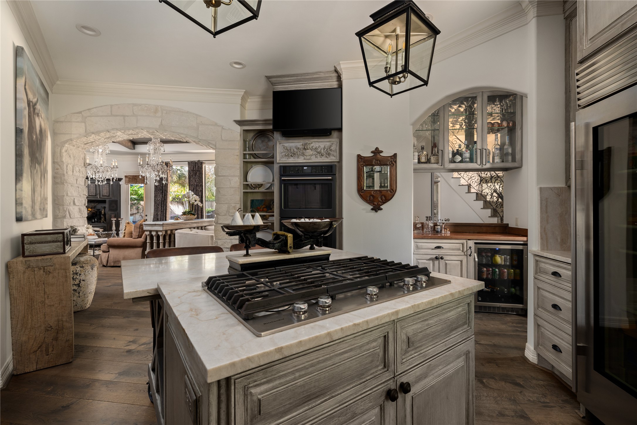 Located in Sweetwater, this well-appointed residence blends timeless architecture with a fully upgraded interior and resort-style outdoor living. Formal living and dining lead into a central family room with hardwoods and detailed millwork. The kitchen was taken to the studs and fully renovated in 2019, featuring custom cabinetry, Stone Harbor hardware, stone countertops, double ovens and a built-in SubZero refrigerator, plus a separate scullery with Miele coffee system and secondary prep sink. The first-floor primary suite offers outdoor access and a spacious bath with dual vanities, soaking tub and walk-in shower. Upstairs includes secondary bedrooms, a game room with full bar and beverage refrigeration and a theatre with projector and in-ceiling speakers. The backyard features a covered outdoor kitchen and a pool and spa resurfaced with PebbleTec in 2023, with updated equipment including pump, cleaner and booster in 2024. Located in Sweetwater, a golf course community near dining.