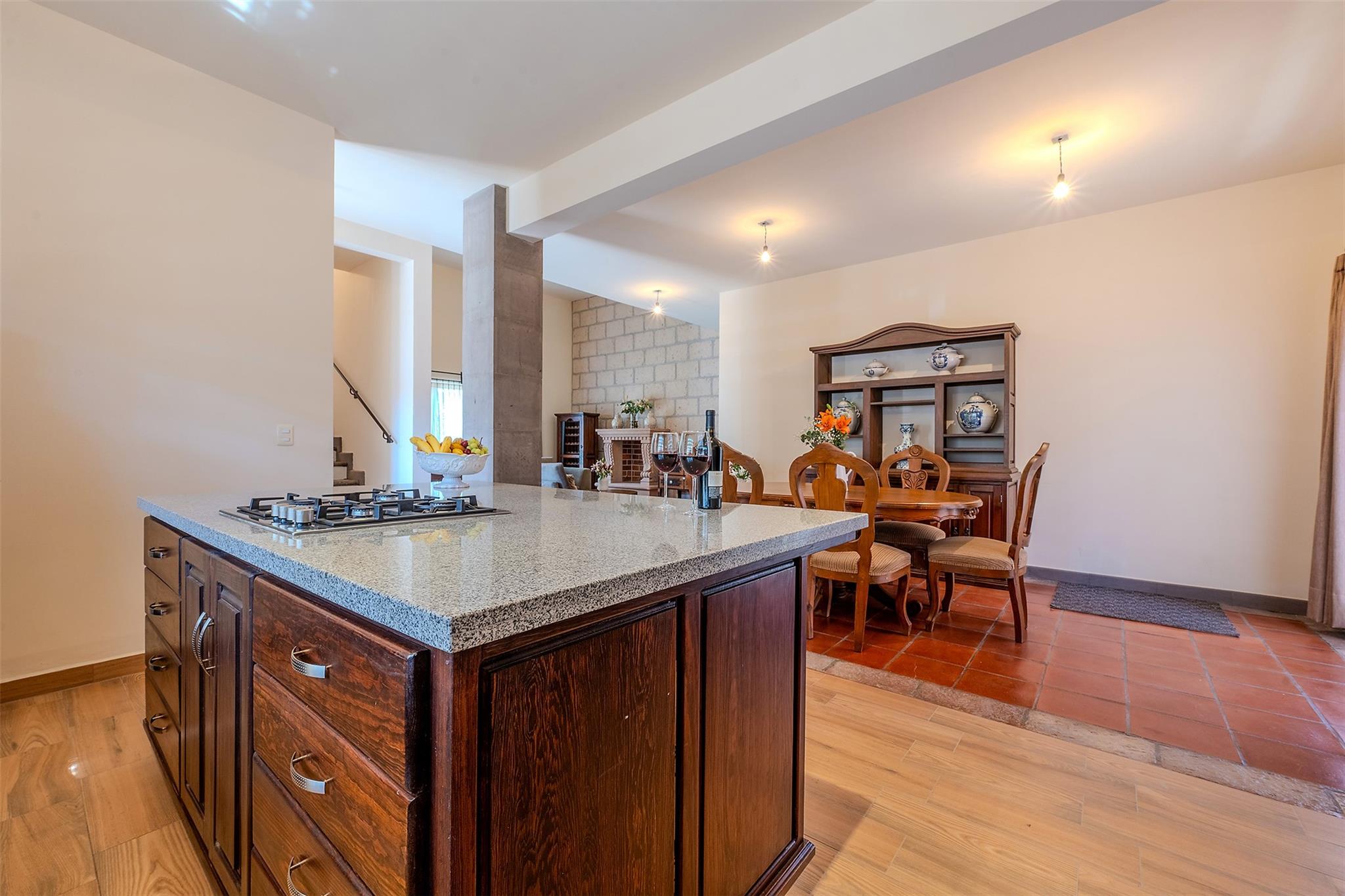 Set within an exclusive gated community in one of the most desirable areas of San Miguel de Allende, this residence offers a rare combination of location, architectural beauty, and refined living. Just a short walk from City Market and the Golf Club, this home places you in the heart of convenience while preserving privacy and tranquility. From the moment you enter, the home welcomes you with a graceful open layout, creating a sense of warmth, sophistication, and authentic San Miguel charm. Natural light flows beautifully through every space, enhancing the elegant finishes and open, airy atmosphere. The thoughtfully designed floor plan offers exceptional functionality. The primary suite on the main level provides effortless living, ideal for full-time residents or those seeking long-term comfort. This private retreat features a serene ambiance perfect for relaxation, offering a peaceful escape at the end of each day.