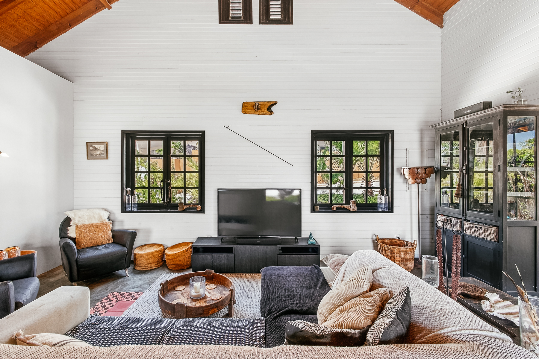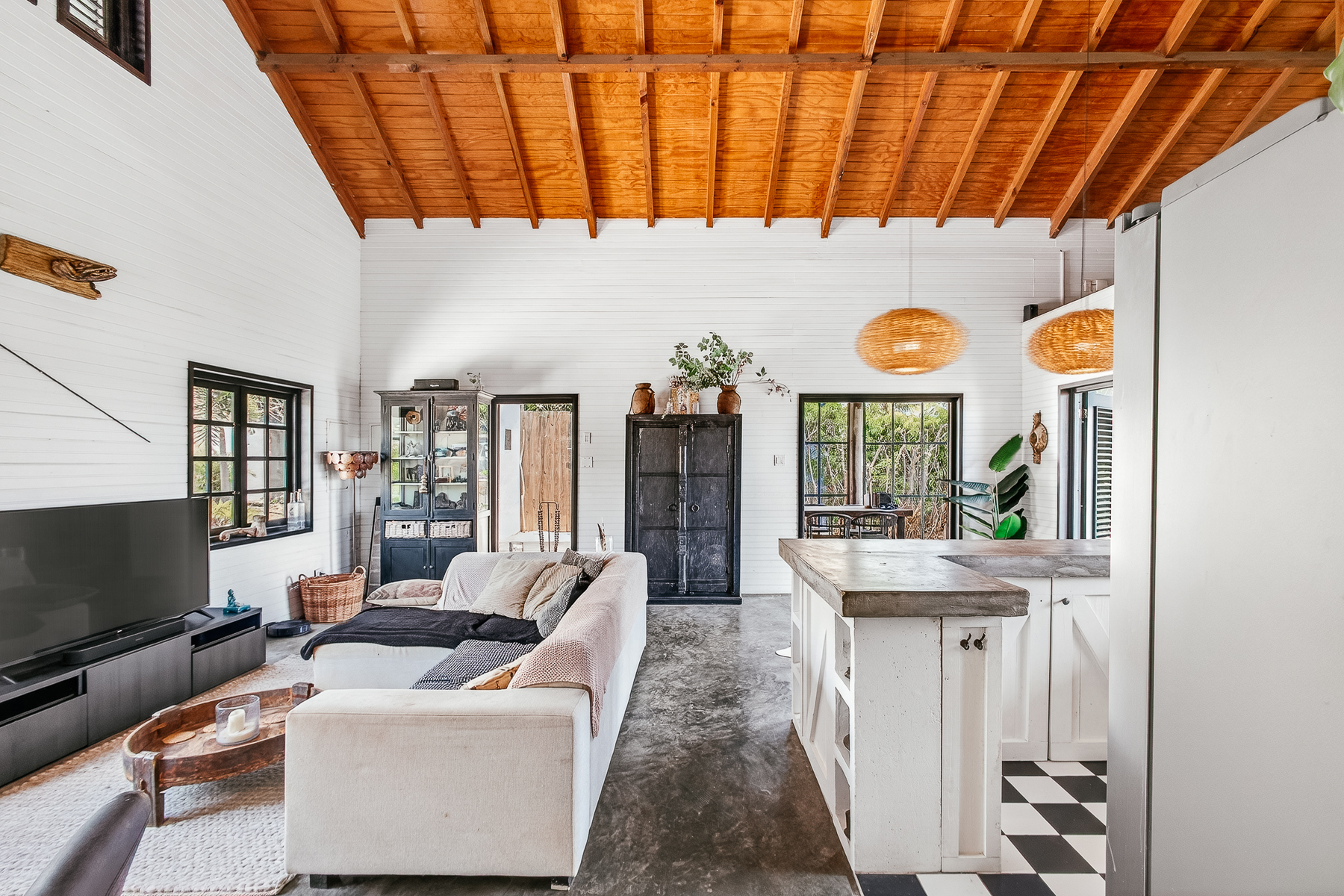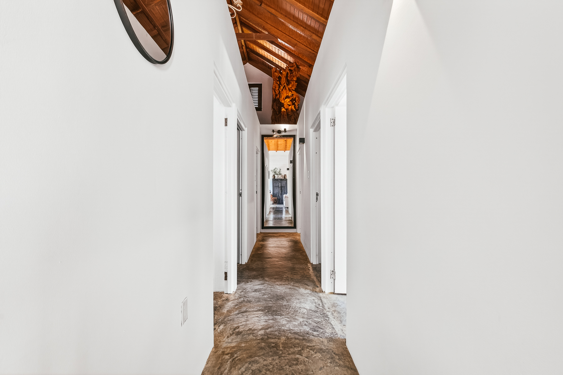 Throughout the property, materials are selected for both durability and texture, complementing the island’s climate while enhancing the tactile experience of the home. Wooden beams, shaded overhangs, and well-proportioned openings contribute to a comfortable indoor-outdoor balance, where airflow is constant and the boundary between inside and outside remains fluid.