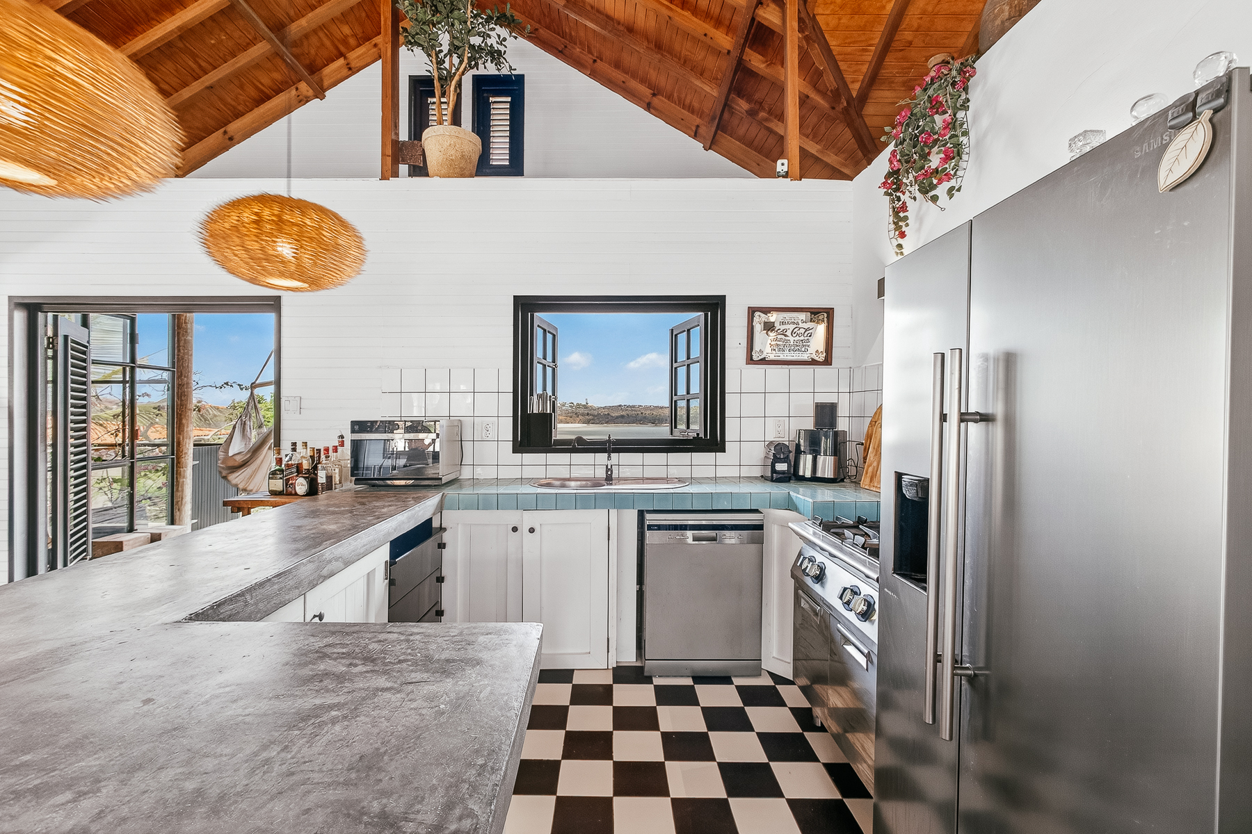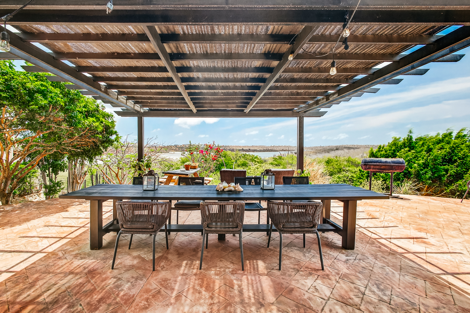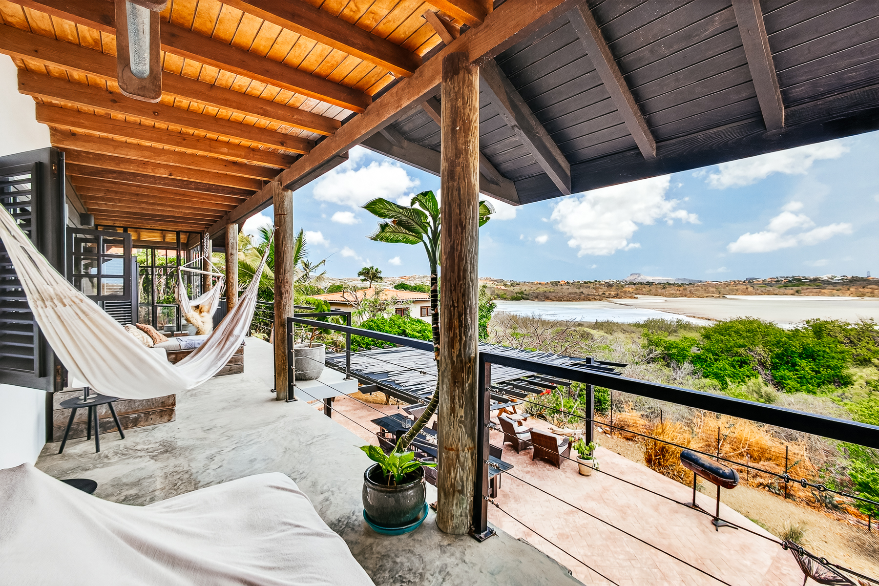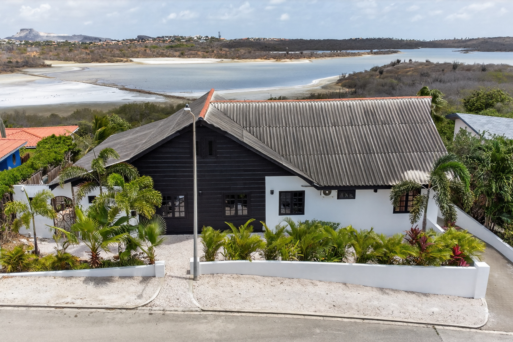 Set along the elevated contours of Seru Bottelier, this residence is thoughtfully positioned to embrace expansive views over Curaçao’s distinctive salt pans, where shifting tones of water and land create a constantly evolving backdrop. The home unfolds across two levels, designed to capture light, breeze, and the natural rhythm of the surrounding landscape.