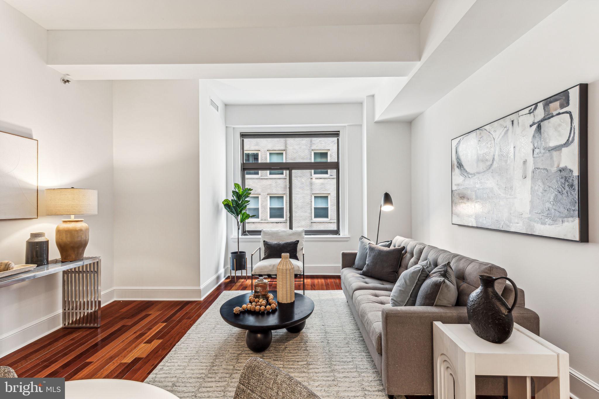 WELCOME HOME to this beautiful one bedroom, one bath home at the Ellington! The living and dining areas offer dramatic ten foot high ceilings, Brazilian cherry hardwood floors, and oversized windows that fill the home with natural light. The kitchen with breakfast bar features Poggenpohl cabinets, stainless steel appliances, Kohler fixtures, and Capao Bonito granite countertops. The bedroom is set across from the spacious spa-like bathroom, which boasts White Gioia marble tile flooring, chrome fixtures, and a ceramic sink with storage vanity. Rent includes central air and heating, water and sewer, 24 hour concierge, private fitness center, and club room. Perfectly situated in the Rittenhouse and Avenue of the Arts area, this stunning home is steps away from fine dining, one-of-a kind shopping, world-renowned cultural destinations and exciting nightlife. ** Photos are from a different unit with similar finishes and identical floor plan.