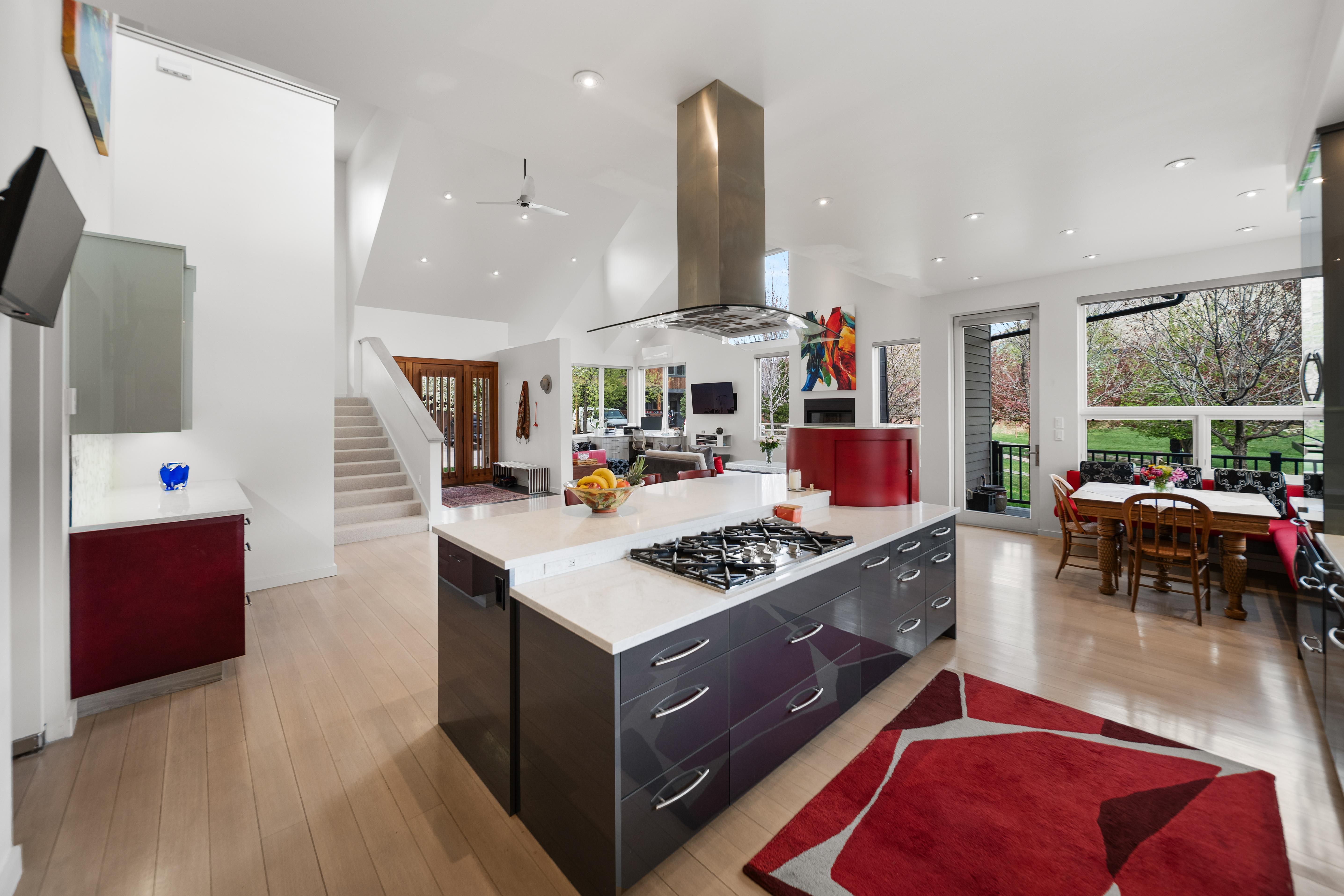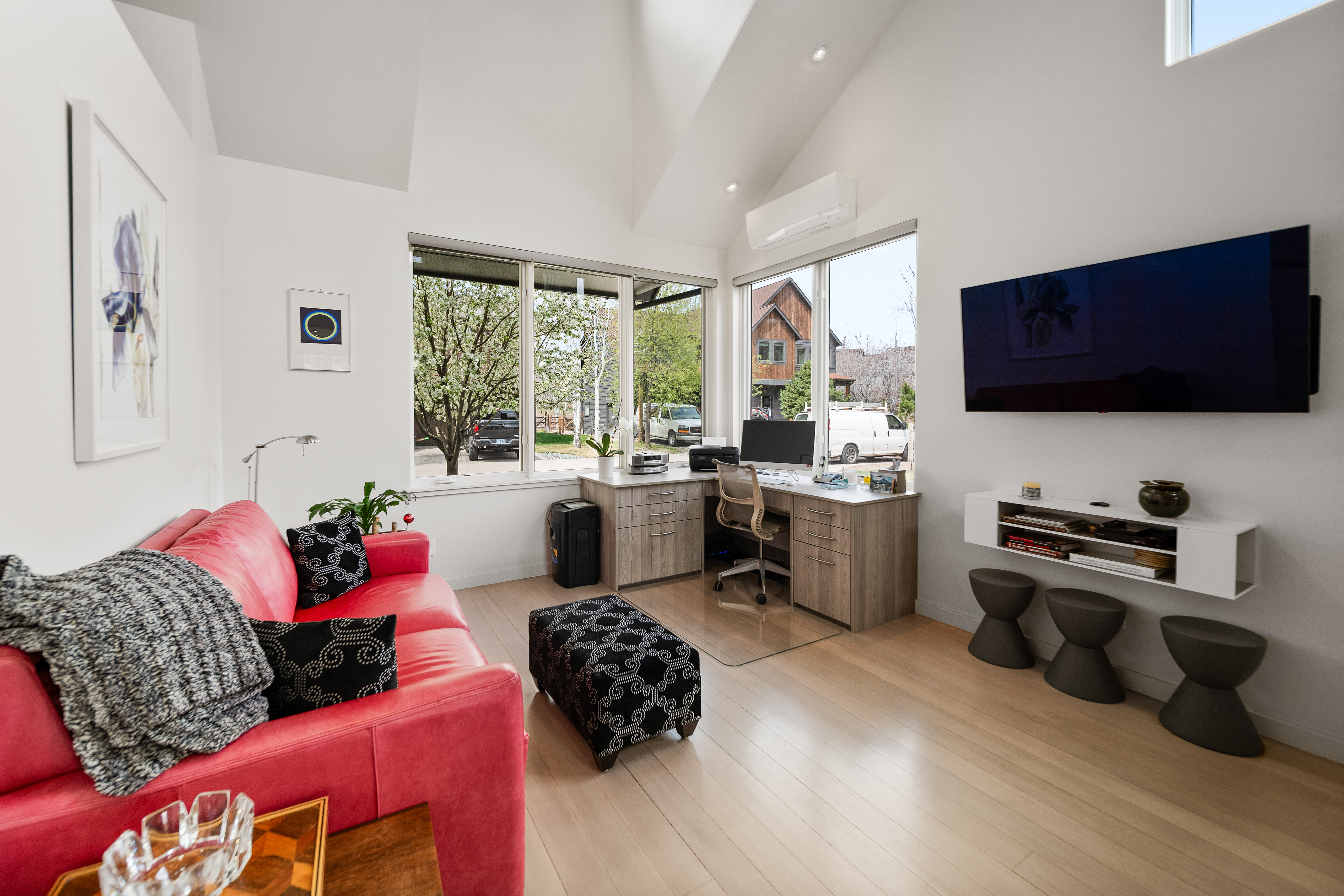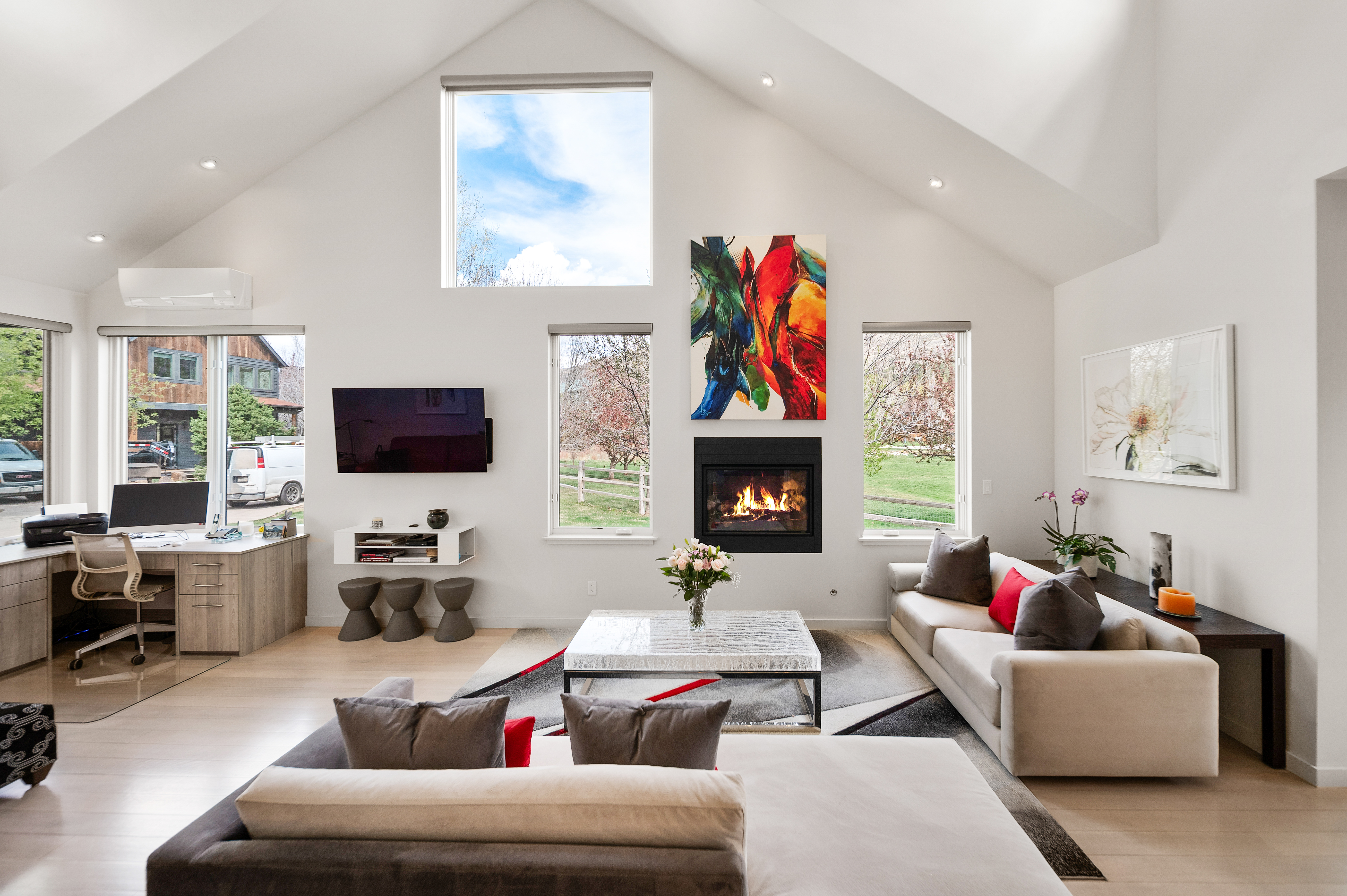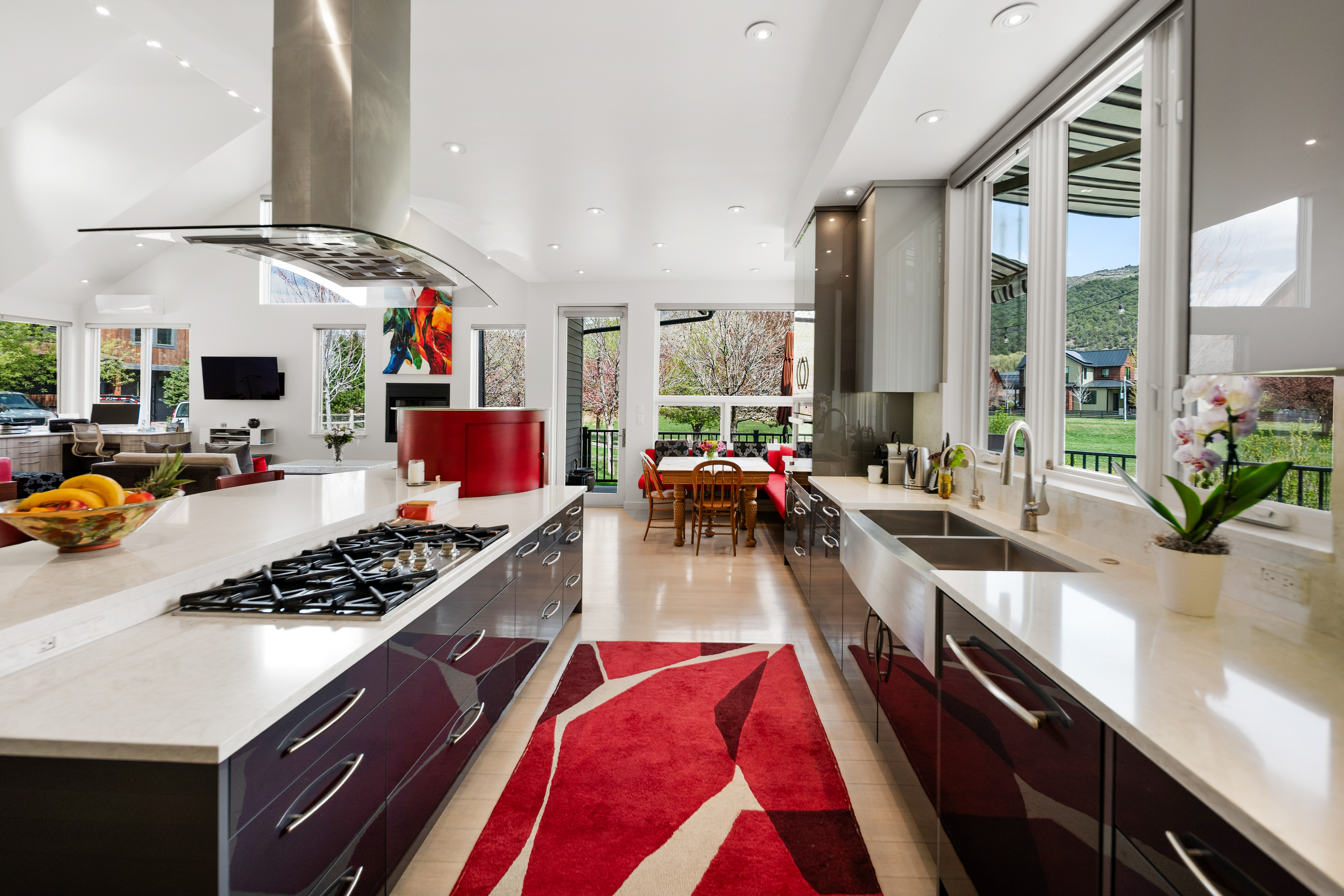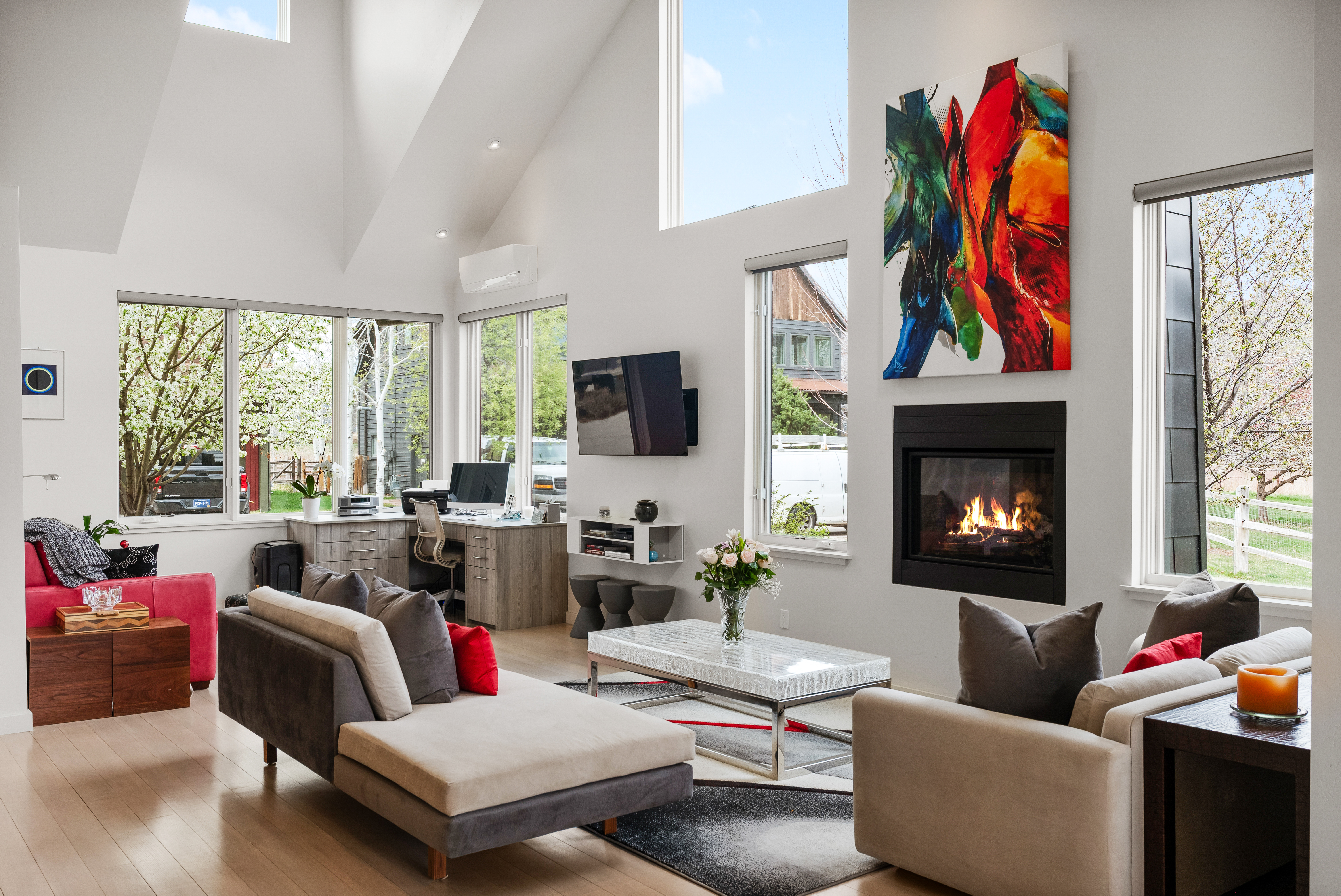 What immediately sets 350 Sopris Circle apart is its sleek, European-inspired design sensibility. Clean architectural lines, vaulted ceilings, expansive windows, and an open, light-filled floor plan create a home that feels sophisticated, modern, and effortlessly livable. Set on one of the best lots in Willits, beside the neighborhood park, this contemporary 3-bedroom residence pairs striking design with privacy, comfort, and everyday functionality. The main level is designed for easy living and elegant flow, with wood floors, abundant natural light, a gas fireplace, a built-in office nook, and seamless access to the spacious Trex deck. The kitchen is refined and highly functional, featuring quartz countertops, glossy contemporary cabinetry, a Bluestar 5-burner cooktop, a Sub-Zero full-size refrigerator and separate freezer drawers, a Miele dishwasher and oven, a warming drawer, a walk-in pantry, and built-in dining seating. A leather-front bar area adds another distinctive custom touch. The main-floor primary suite opens to the deck and offers a quiet, private retreat with automated blinds, a walk-in closet with sliding barn doors, double vanities, quartz countertops, and a steam shower. Upstairs, two private guest suites each enjoy their own bath, mini-split A/C, and excellent separation from the main living spaces. Outside, the home continues to impress with a large deck, retractable awnings, a fenced yard, a herb garden bed, lawn sprinklers, a covered entry, an extra parking area, and a two-car garage with additional storage. Solar PV adds meaningful efficiency. With only one adjoining neighbor and direct proximity to the park and walking distance to Whole Foods and all of Willits, this is a rare opportunity to own a stylish, design-forward Basalt home