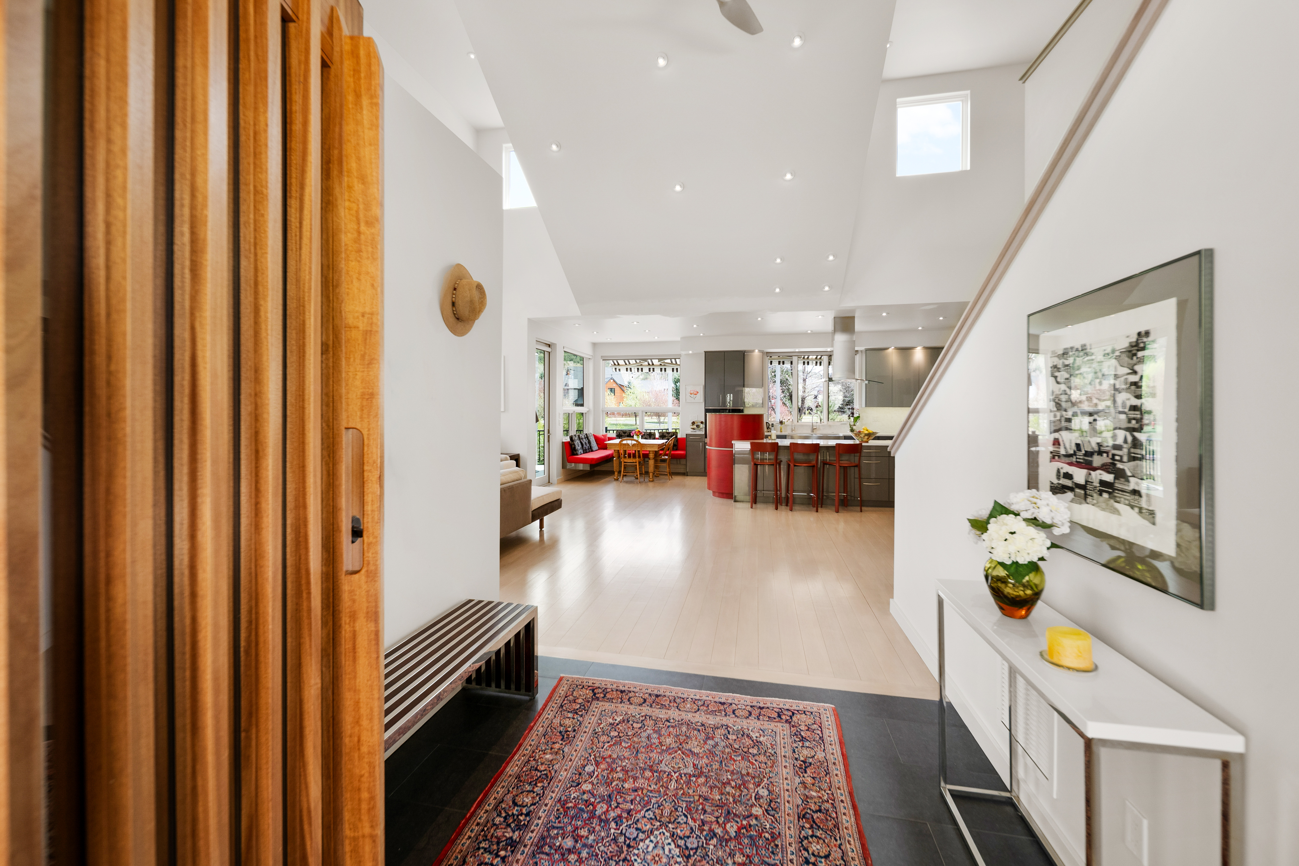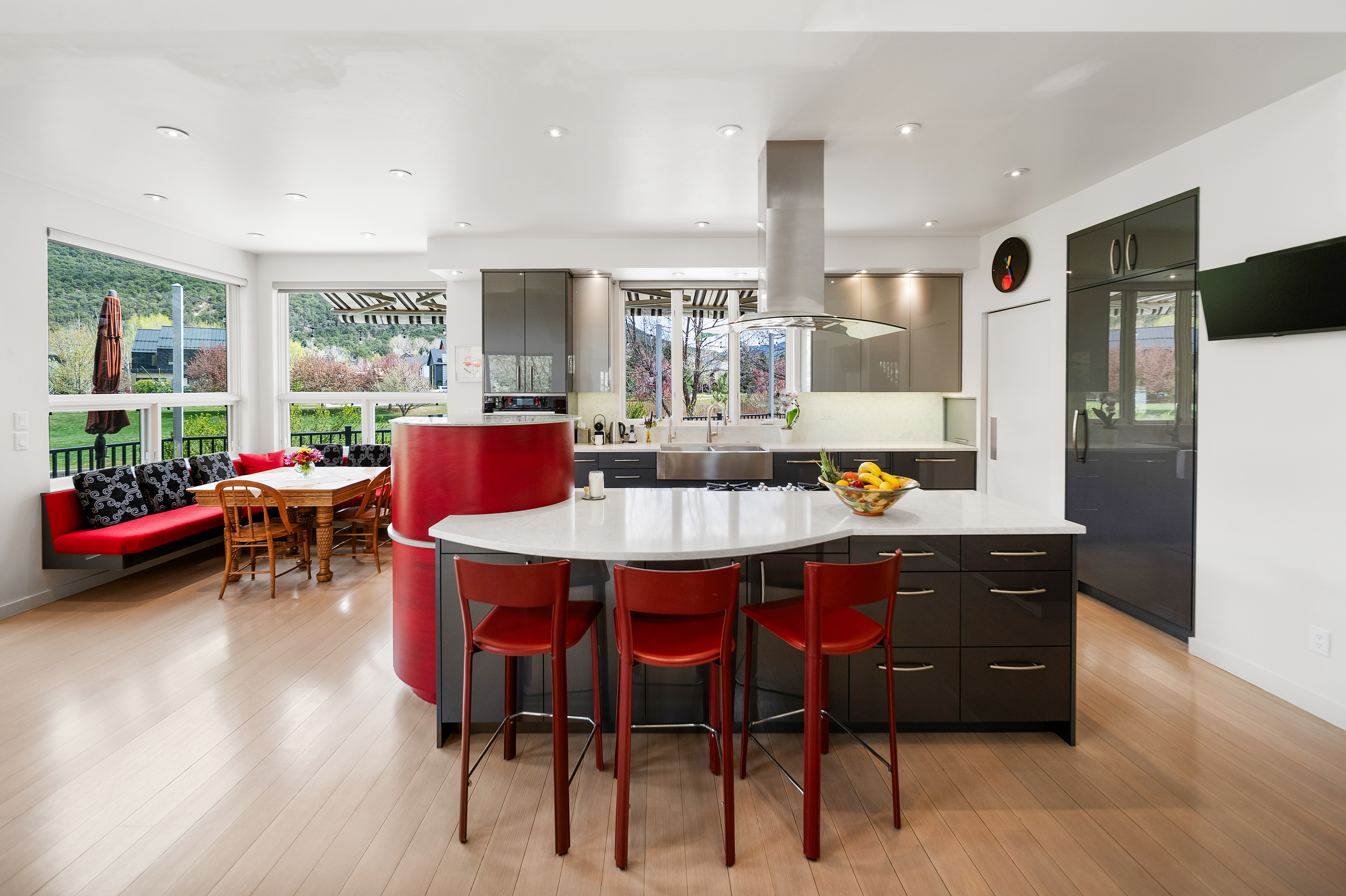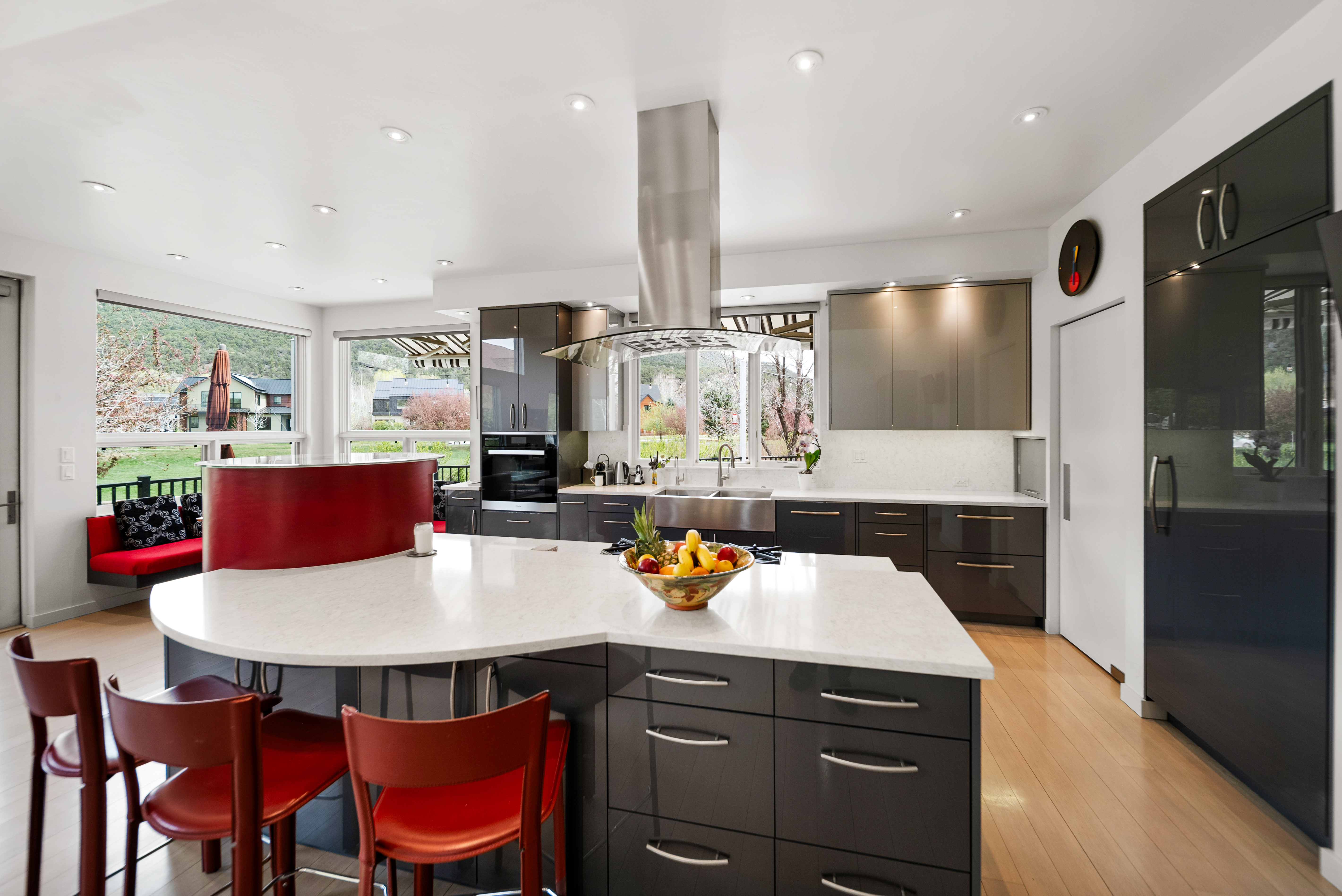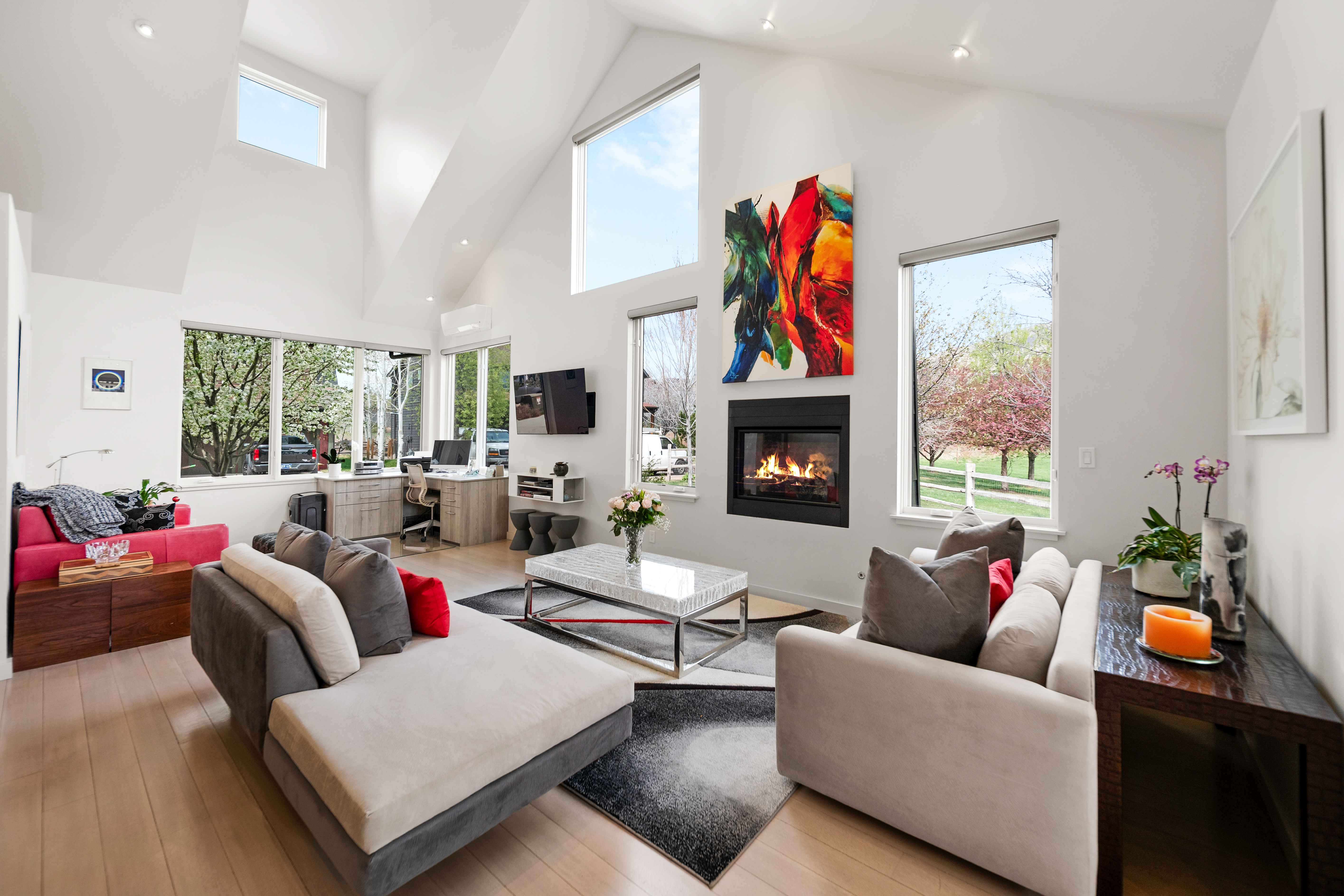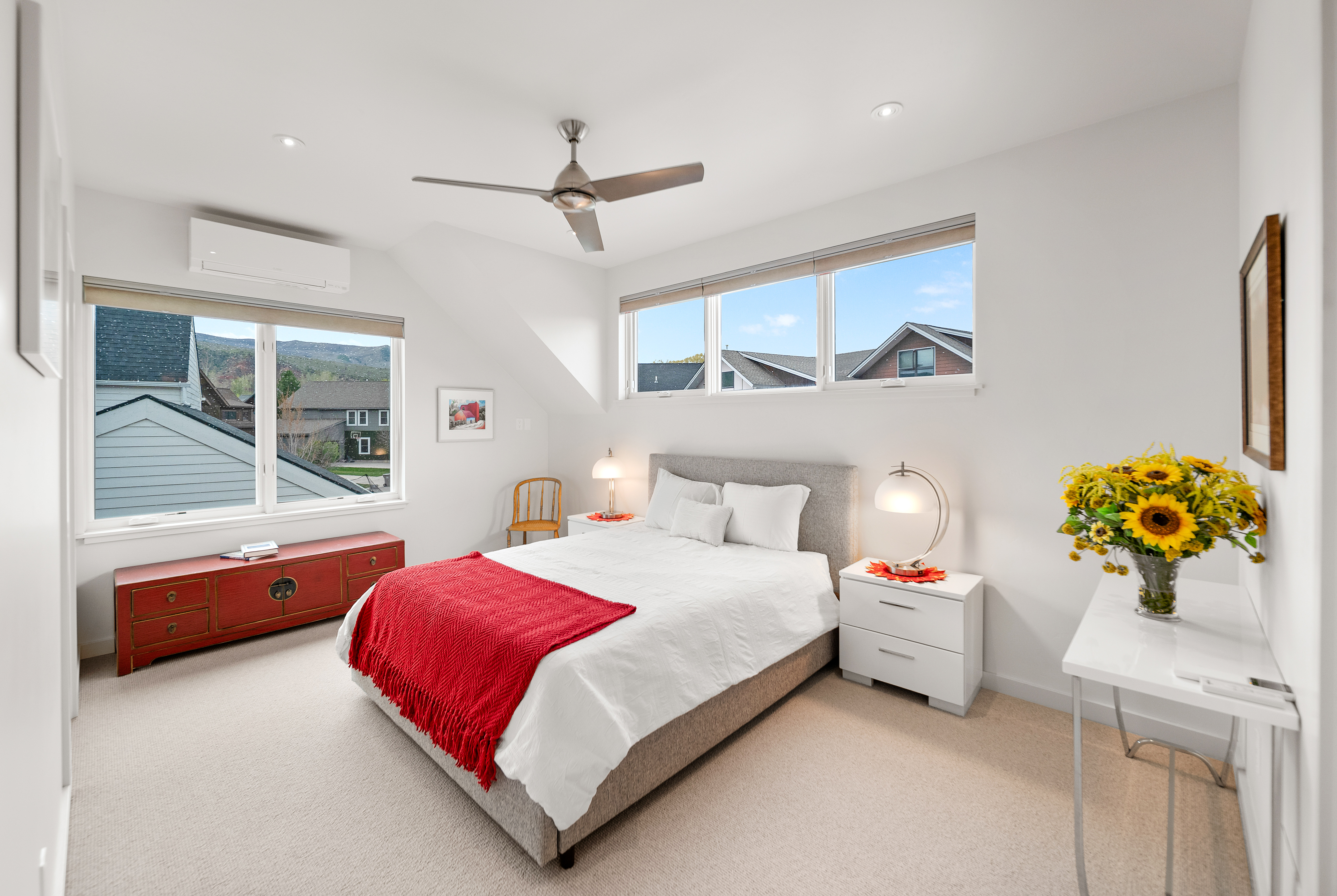 What immediately sets 350 Sopris Circle apart is its sleek, European-inspired design sensibility. Clean architectural lines, vaulted ceilings, expansive windows, and an open, light-filled floor plan create a home that feels sophisticated, modern, and effortlessly livable. Set on one of the best lots in Willits, beside the neighborhood park, this contemporary 3-bedroom residence pairs striking design with privacy, comfort, and everyday functionality. The main level is designed for easy living and elegant flow, with wood floors, abundant natural light, a gas fireplace, a built-in office nook, and seamless access to the spacious Trex deck. The kitchen is refined and highly functional, featuring quartz countertops, glossy contemporary cabinetry, a Bluestar 5-burner cooktop, a Sub-Zero full-size refrigerator and separate freezer drawers, a Miele dishwasher and oven, a warming drawer, a walk-in pantry, and built-in dining seating. A leather-front bar area adds another distinctive custom touch. The main-floor primary suite opens to the deck and offers a quiet, private retreat with automated blinds, a walk-in closet with sliding barn doors, double vanities, quartz countertops, and a steam shower. Upstairs, two private guest suites each enjoy their own bath, mini-split A/C, and excellent separation from the main living spaces. Outside, the home continues to impress with a large deck, retractable awnings, a fenced yard, a herb garden bed, lawn sprinklers, a covered entry, an extra parking area, and a two-car garage with additional storage. Solar PV adds meaningful efficiency. With only one adjoining neighbor and direct proximity to the park and walking distance to Whole Foods and all of Willits, this is a rare opportunity to own a stylish, design-forward Basalt home