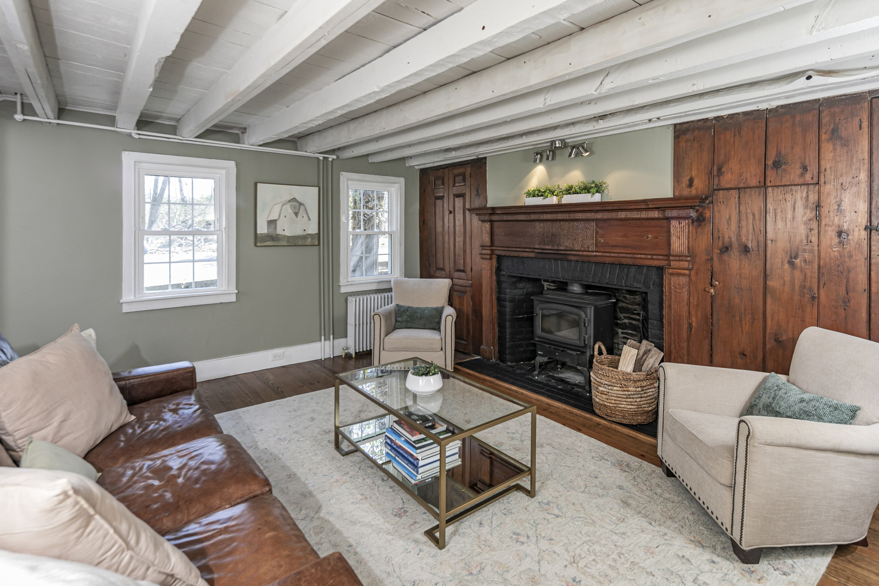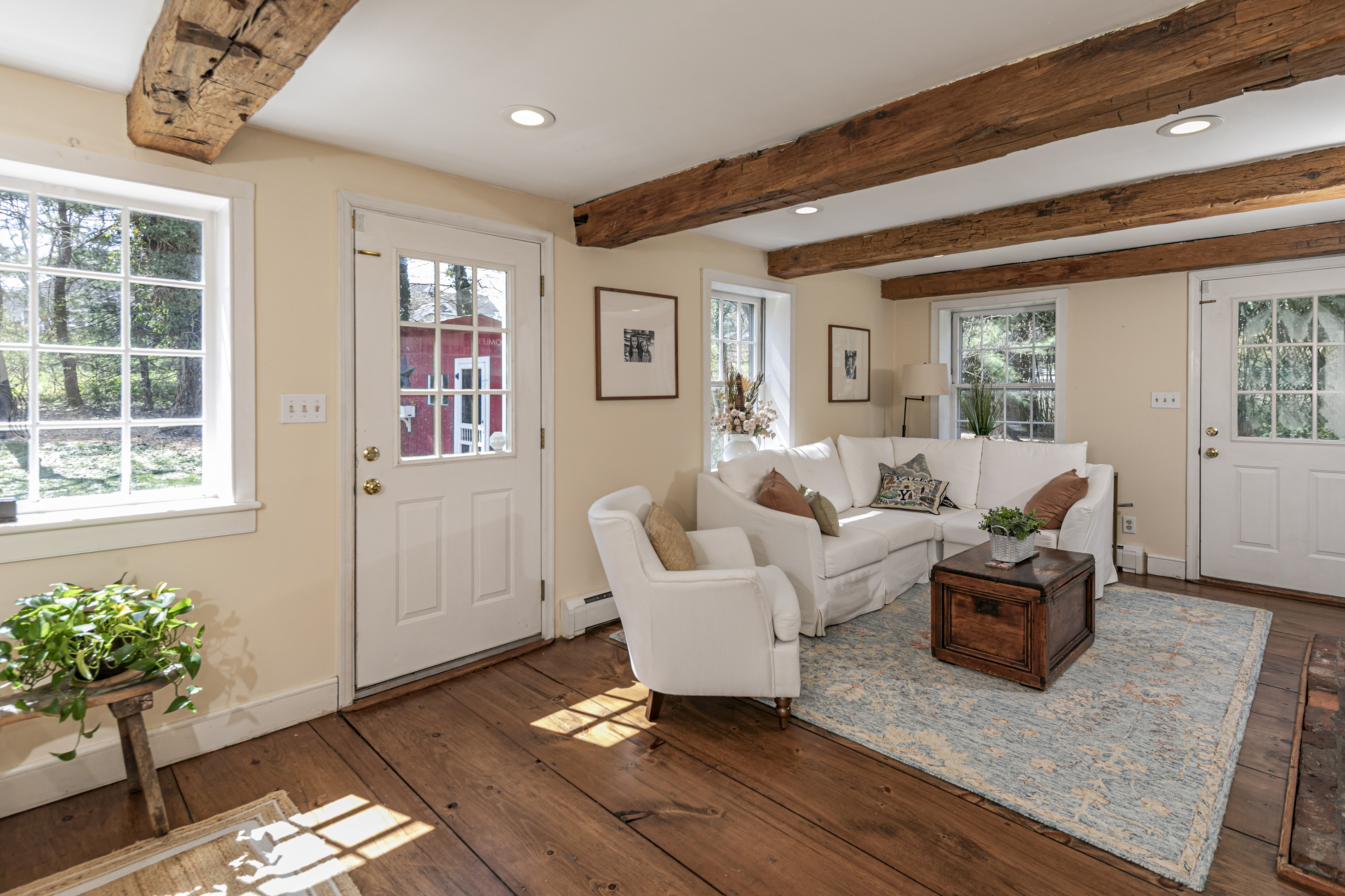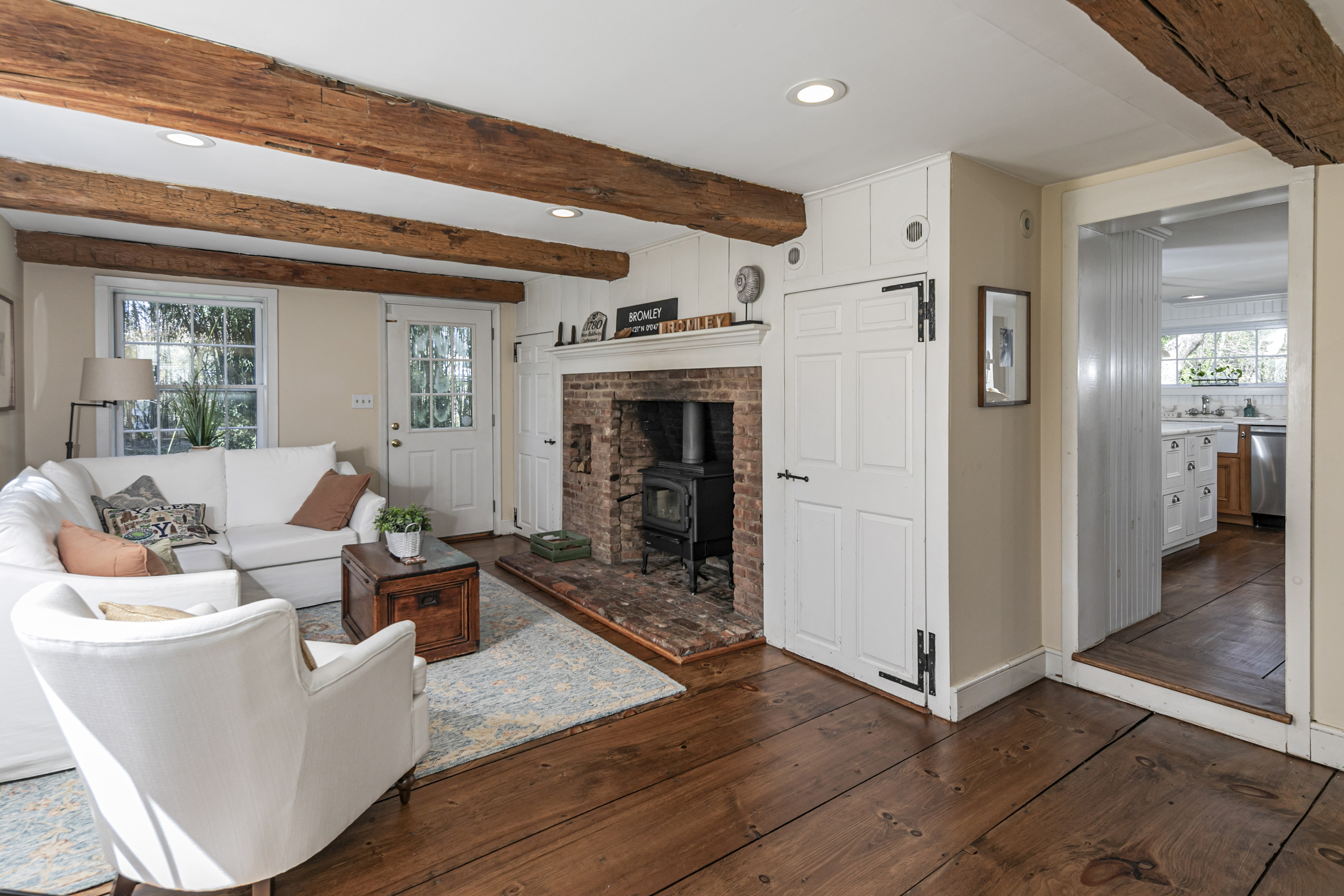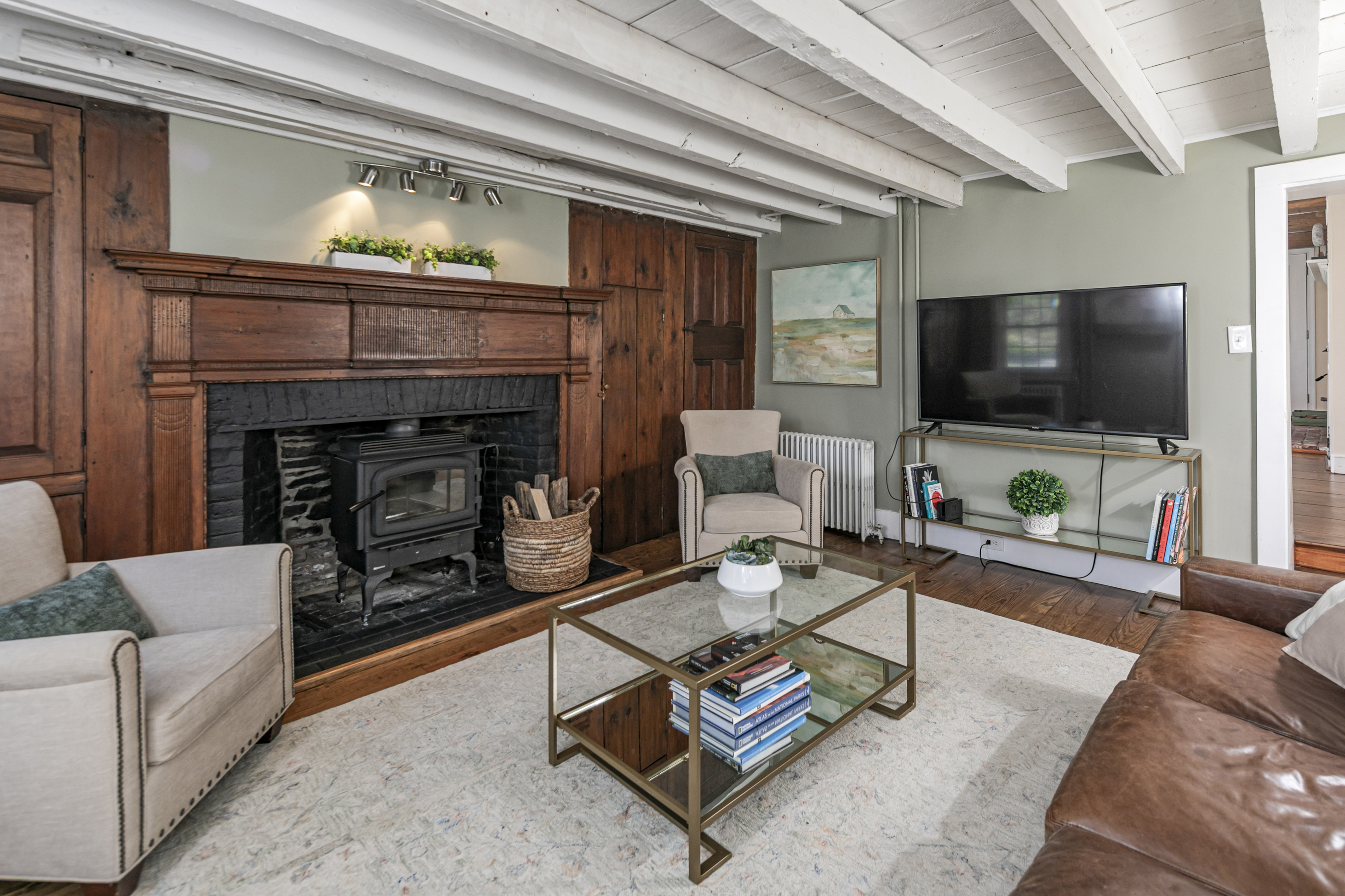 Built circa 1780, the Moses Baldwin House is a captivating homestead set in a quiet corner of Pennington. Once home to the town’s cordwainer (or shoemaker), the property has evolved through thoughtful upgrades that align it with 21st-century living while honoring its past. A clear sense of care and stewardship is evident throughout. Historic details such as wide-plank floors, timber-framed doorways, generous fireplaces, and original fixtures lend warmth and character to every room. These elements are complemented by well-considered modern updates that enhance comfort and function. Both the living room and family room feature woodstoves within their fireplaces and provide inviting spaces for gathering, along with a spacious dining room. The renovated kitchen stands out as a central hub, with marble countertops, a farmhouse sink, custom pantry storage, a Bertazzoni range and hood, and refined cabinetry. A nearby powder room is handy. Upstairs, is the main bedroom, along with three additional bedrooms, a laundry closet, and two modern bathrooms. A thoughtfully added study connects directly to one of the bathrooms, offering a cozy work-from-home nook or TV lounge. Despite its peaceful setting, the home is just minutes from Pennington’s shops, dining, and everyday amenities, offering an appealing balance of privacy and accessibility.