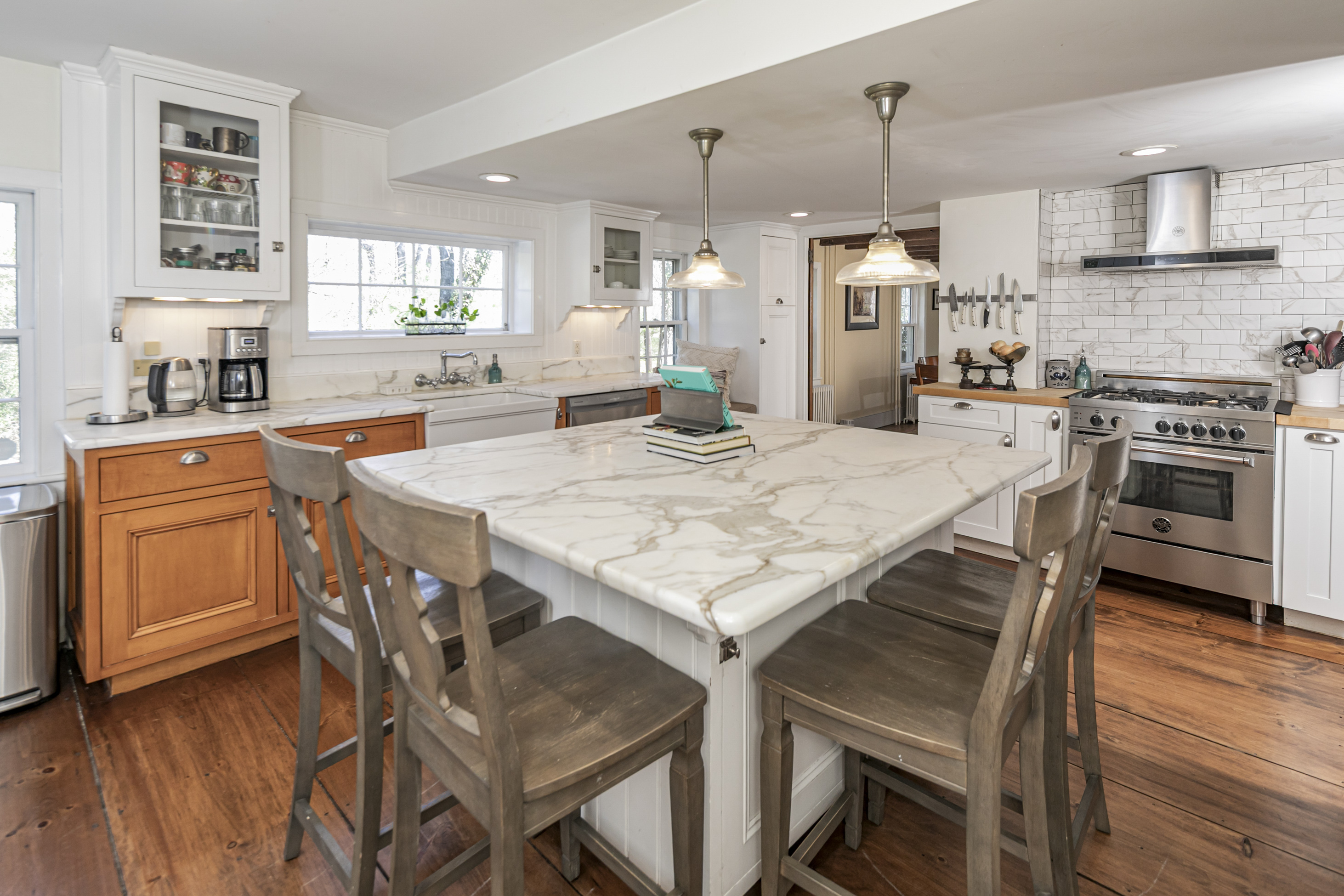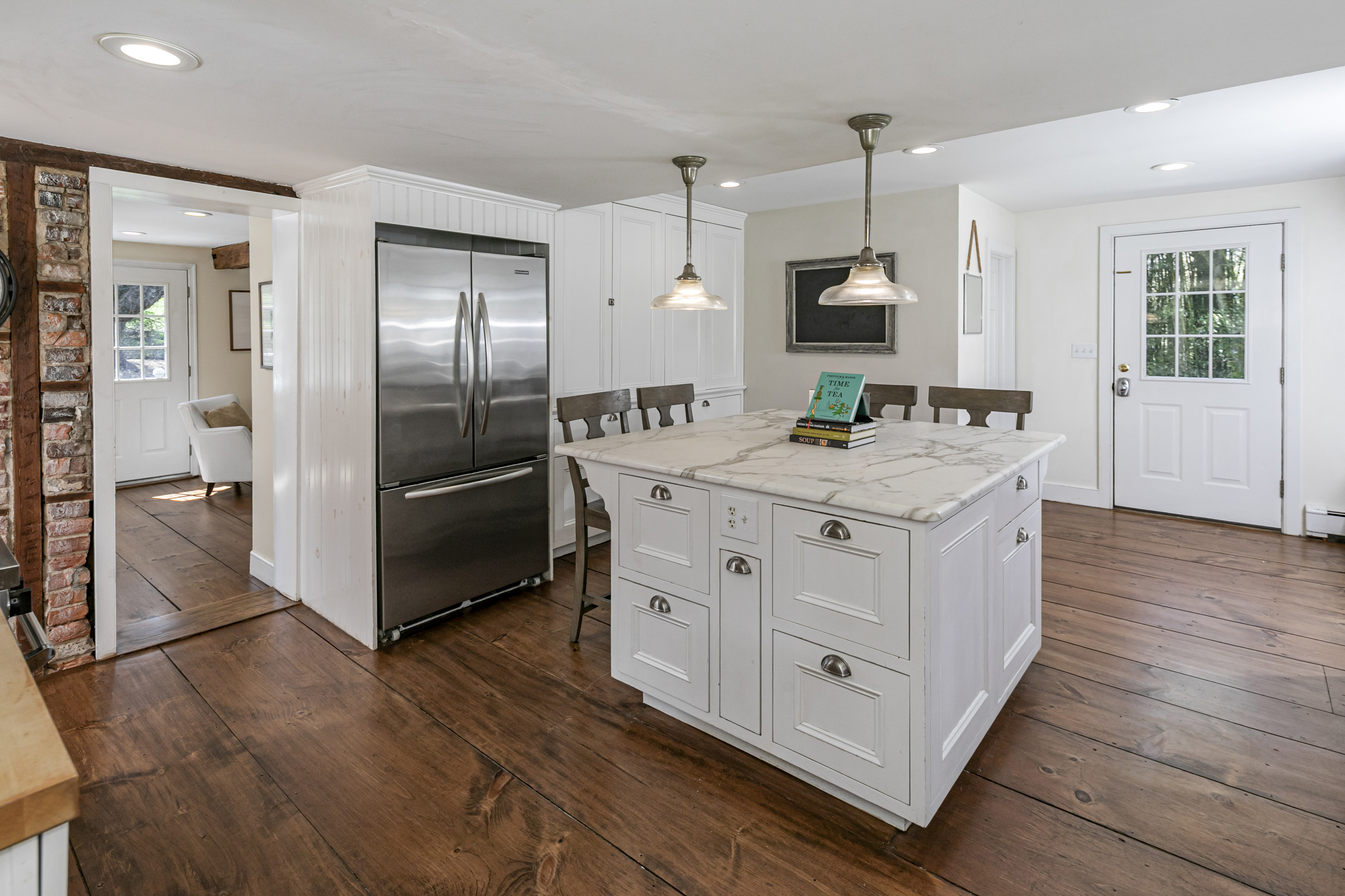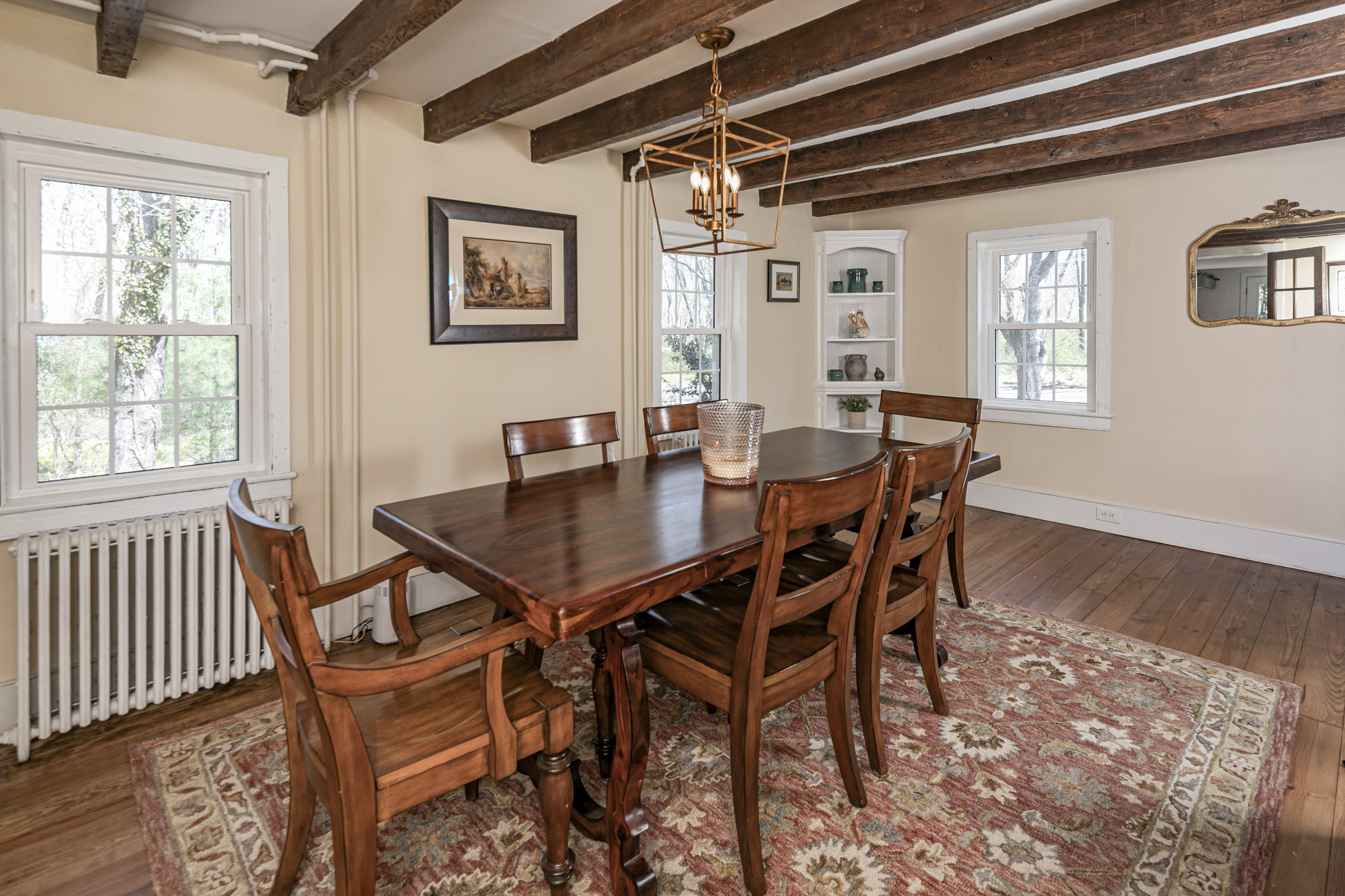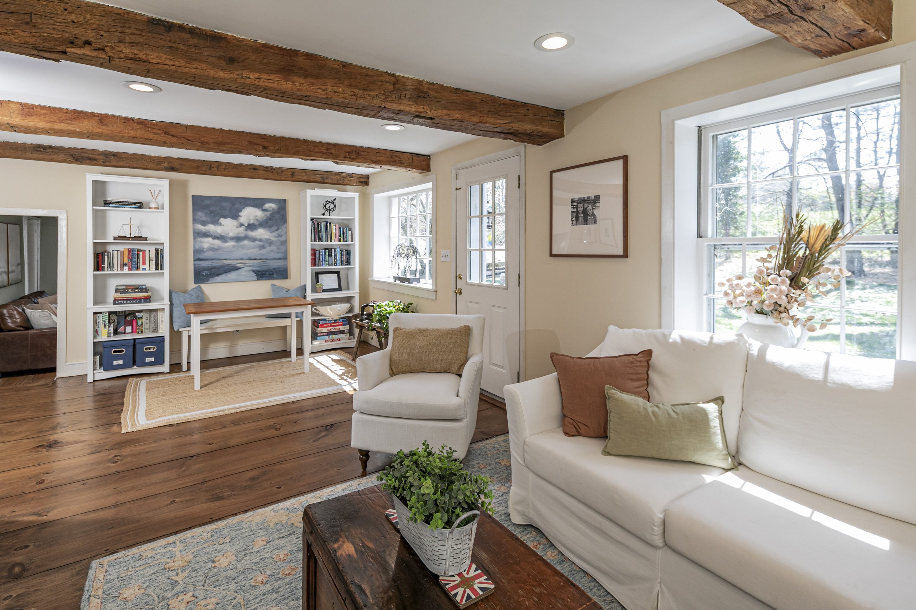 Built circa 1780, the Moses Baldwin House is a captivating homestead set in a quiet corner of Pennington. Once home to the town’s cordwainer (or shoemaker), the property has evolved through thoughtful upgrades that align it with 21st-century living while honoring its past. A clear sense of care and stewardship is evident throughout. Historic details such as wide-plank floors, timber-framed doorways, generous fireplaces, and original fixtures lend warmth and character to every room. These elements are complemented by well-considered modern updates that enhance comfort and function. Both the living room and family room feature woodstoves within their fireplaces and provide inviting spaces for gathering, along with a spacious dining room. The renovated kitchen stands out as a central hub, with marble countertops, a farmhouse sink, custom pantry storage, a Bertazzoni range and hood, and refined cabinetry. A nearby powder room is handy. Upstairs, is the main bedroom, along with three additional bedrooms, a laundry closet, and two modern bathrooms. A thoughtfully added study connects directly to one of the bathrooms, offering a cozy work-from-home nook or TV lounge. Despite its peaceful setting, the home is just minutes from Pennington’s shops, dining, and everyday amenities, offering an appealing balance of privacy and accessibility.
