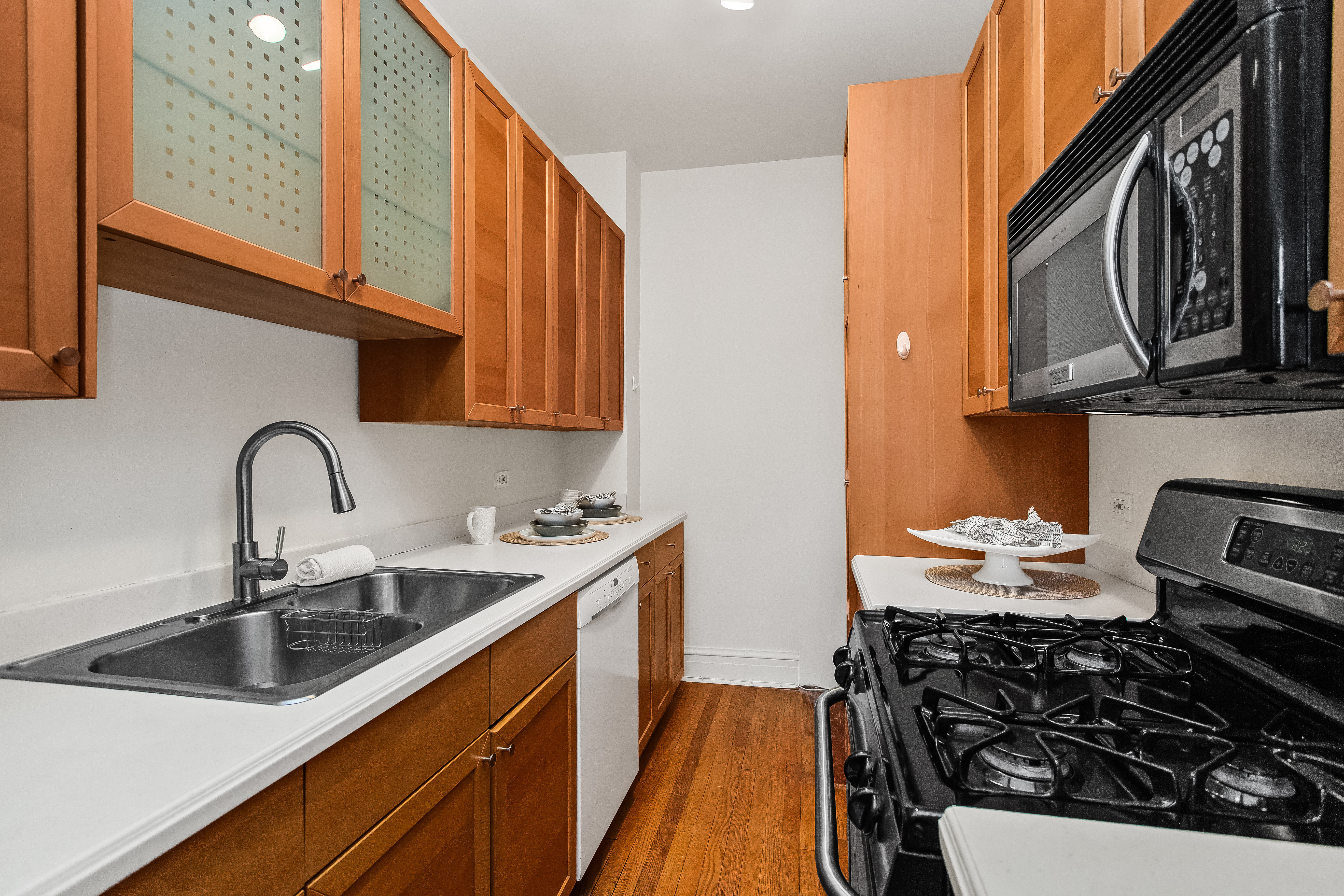 Charming one-bedroom, one-bathroom corner co-op in a beautiful vintage landmark building at The Rookwood. This unit features an inviting entry hall that opens to a spacious, light-filled living room with west- and north-facing windows. The galley kitchen is well-appointed with 42-inch maple cabinetry, granite countertops, stainless steel gas range and refrigerator, microwave, and a newer dishwasher, and flows seamlessly into a bright breakfast room. The generously sized bedroom includes two closets, while hardwood floors and high ceilings throughout enhance the home's timeless appeal. Residents enjoy access to a shared English garden and on-site laundry, completing this classic Evanston offering in an unbeatable location. Ideally located just steps from the Noyes "L" station, Northwestern University, Lake Michigan, and the shops, grocery store, and arts venues of downtown Evanston, this home offers both character and convenience.