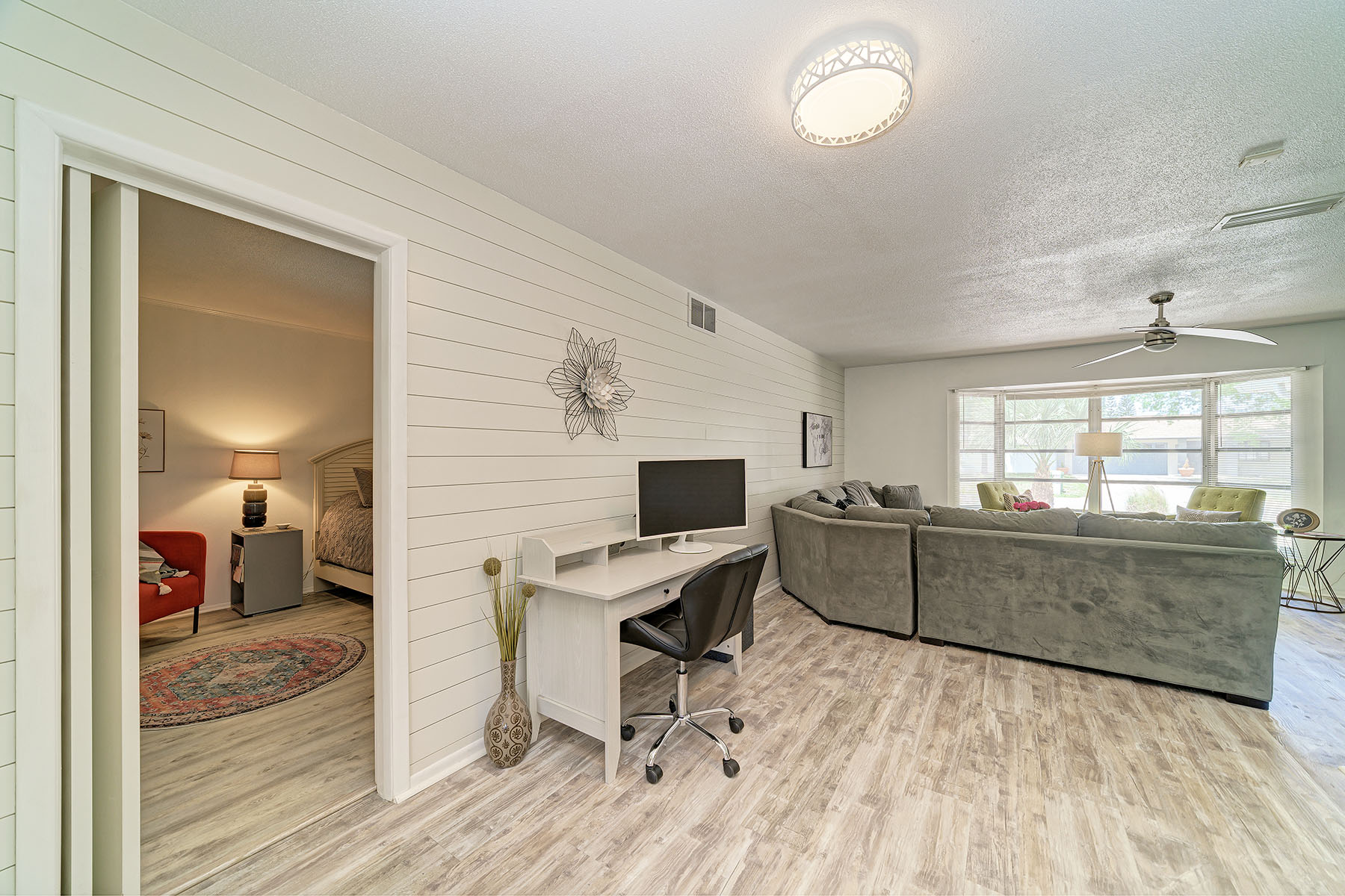Welcome to this well-maintained, zen-inspired pool home in the Glen Oaks Country Club Estates community of Sarasota, offering a functional layout, recent upgrades and convenient access to the area's key destinations. Set on a 0.22-acre lot, this single-family home features 2,115 total square feet of living space with two bedrooms, two baths, a Florida room and a two-car garage. The interior includes new luxury vinyl tile flooring a flexible floor plan designed for everyday living, designer finishes, a ship-lapped accent wall and crown molding. A separate dining room and additional flex space provide options for a home office or study. The kitchen is appointed with granite countertops and connects seamlessly to the main living areas. The primary suite offers a walk-in closet and shower with designer finishes. Outdoor features include a south-facing pool enclosed within a spacious screened lanai, creating a private and peaceful setting for year-round use. The fully fenced yard includes a dedicated dog run, while xeriscape landscaping supports low-maintenance living. Recent improvements include a roof, A/C, and water heater replacement in 2023 as well as all new plumbing lines in 2026. Hurricane shutters are in place. The property is not located in a flood zone, and the homeowner's association fee is voluntary. You could not ask for a better central location near Bobby Jones Golf Course; this residence is within approximately three miles of downtown Sarasota, with access to Gulf beaches, dining and cultural amenities, as well as being only six miles from the UTC mall, offering great shopping, dining and entertainment options close by. This home is move-in-ready and represents pride of ownership with many unique features.