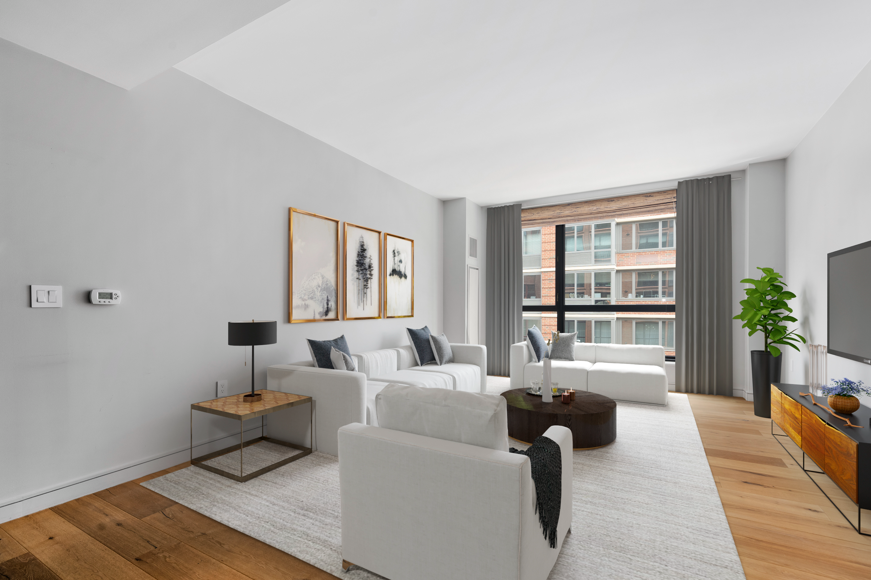 Highly sought-after B-line residence in West Chelsea’s premier +Art Building, this bright and loft-like two-bedroom, two-bathroom home seamlessly blends modern design with everyday comfort. Thoughtfully appointed, the residence features individual climate control, 7-inch white oak flooring, double-glazed insulated windows, and a convenient in-unit washer and dryer. Residence 4B boasts a highly desirable layout, with an expansive living and dining area that is ideal for both relaxing and entertaining. The open chef’s kitchen is beautifully finished with rich walnut cabinetry, honed granite countertops, under-cabinet lighting, and a suite of top-tier appliances by Sub-Zero, Bosch, and Viking. The spacious primary suite offers a large walk-in closet and a refined en-suite bath complete with a deep soaking tub, separate glass-enclosed shower, and a sleek black lacquer vanity with Corian countertops. The generously proportioned secondary bedroom is complemented by a well-appointed full bathroom just outside. The +Art Building is a full-service condominium offering a 24-hour doorman, resident superintendent, fitness center, and a stunning landscaped Art Yard. Residents also enjoy a beautifully designed rooftop terrace featuring a wet bar and grill—perfect for entertaining. Ideally located just moments from the High Line, Hudson Yards, Whole Foods, and an array of renowned galleries and world-class dining destinations.