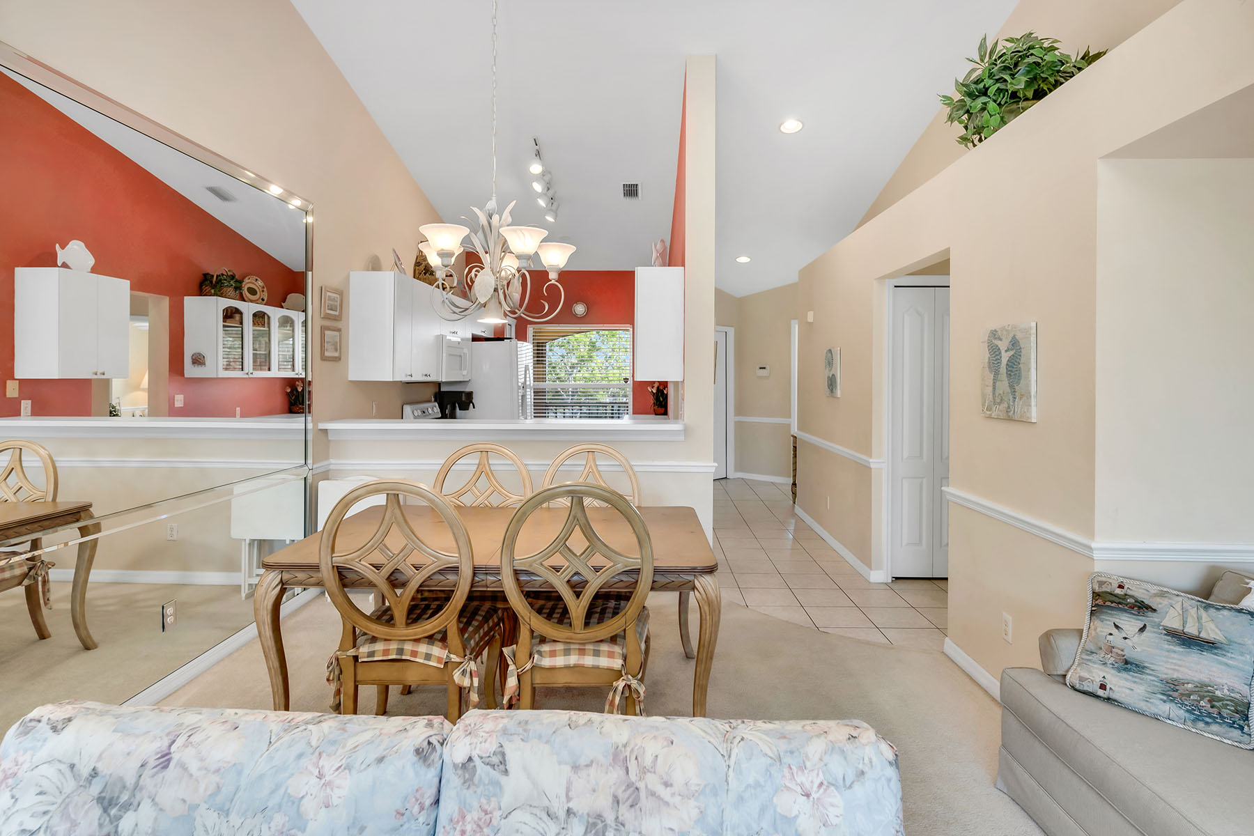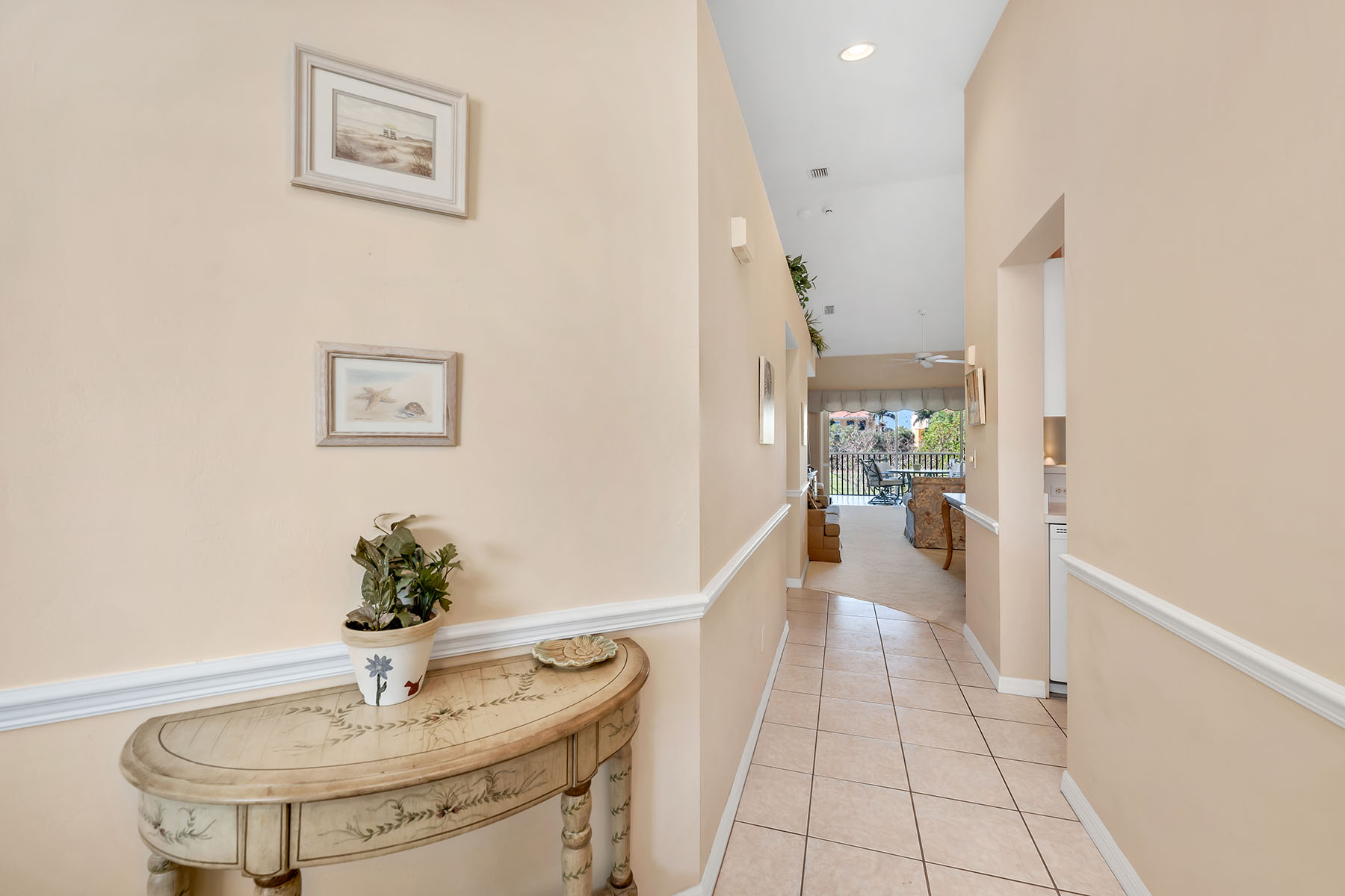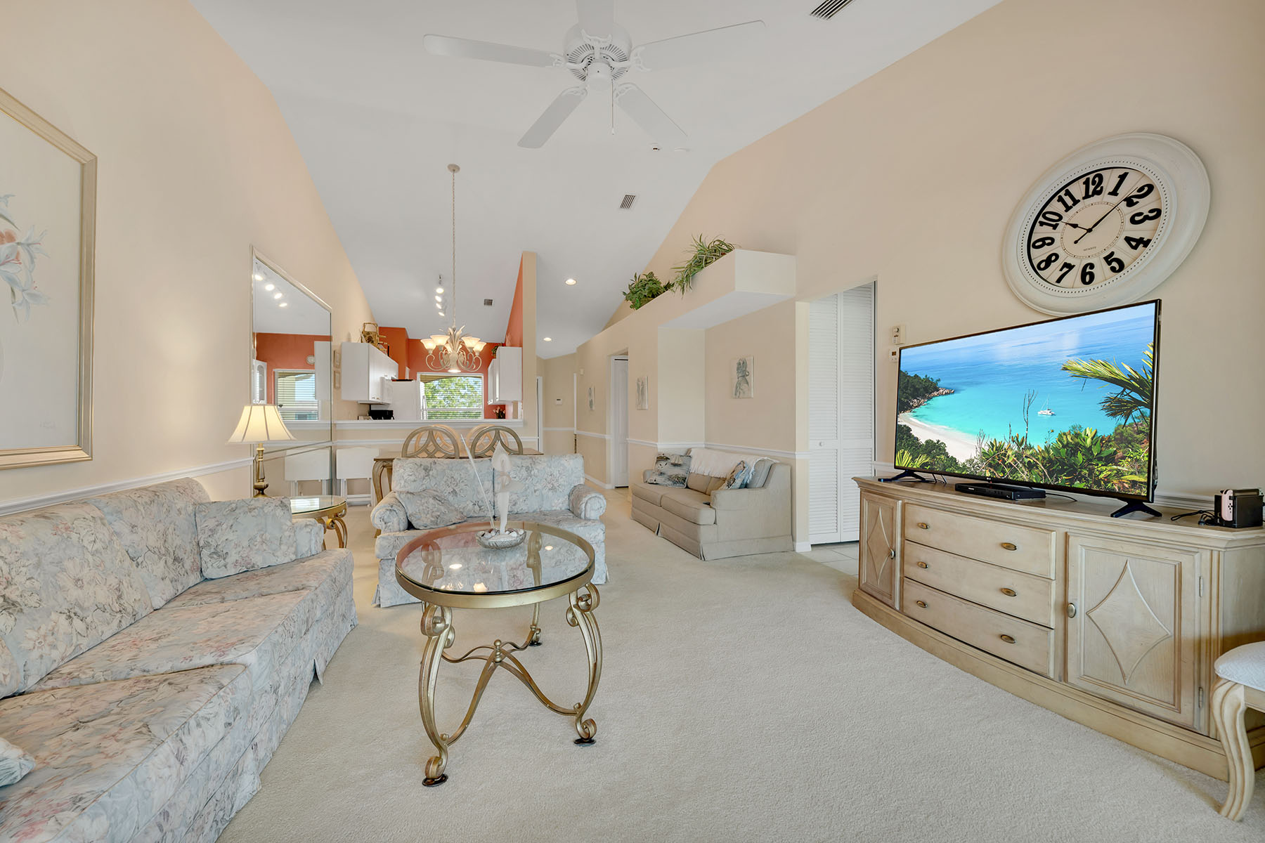 In the sought-after Fairways II at Marco Shores community in Naples, this impeccably maintained three-bedroom, two-bath condominium presents an exceptional opportunity to enjoy the best of Southwest Florida living. From the moment you go inside, you're welcomed by soaring volume ceilings and an abundance of natural light, creating a bright and inviting atmosphere throughout. The spacious open-concept living and dining areas flow effortlessly to a screened lanai, where tranquil golf course views provide the backdrop for relaxing or entertaining. Front and rear lanais have been upgraded with no-see-um screens, allowing you to fully enjoy the outdoor spaces in comfort year-round. The well-appointed kitchen offers functionality and style, seamlessly connecting to the main living areas. The primary suite serves as a private retreat, while two additional bedrooms provide flexibility for guests or a home office. Additional features include an in-residence laundry area and an assigned covered parking space for added convenience. Residents of Fairways II enjoy access to a resort-style community pool, ideal for soaking up the Florida sunshine. Ideally just minutes from renowned beaches of Marco Island and the vibrant downtown district of Naples, you'll have easy access to fine dining, shopping and world-class golf. Whether you're seeking a full-time place or a seasonal getaway, this residence offers an outstanding combination of comfort, location and lifestyle.
