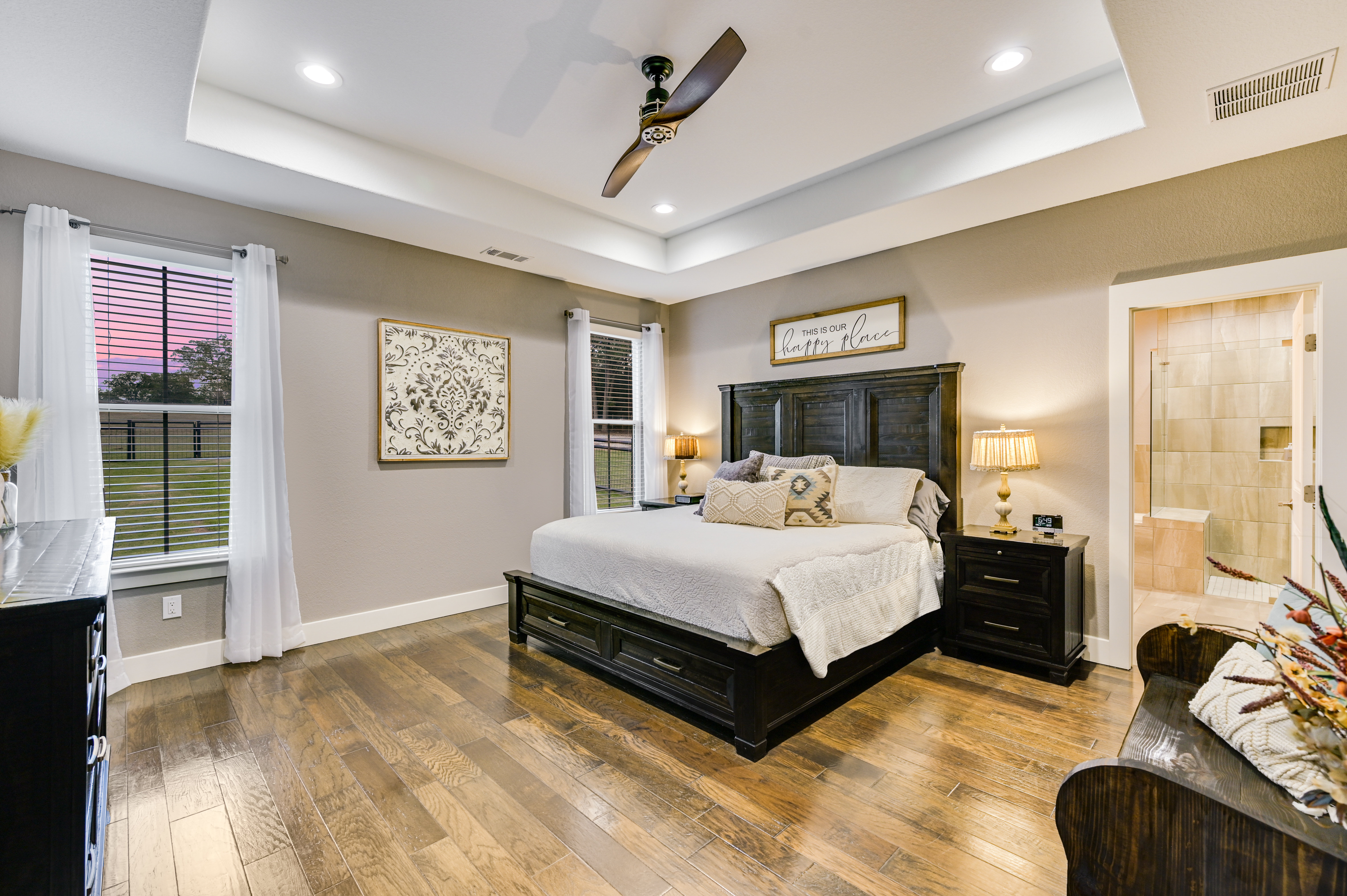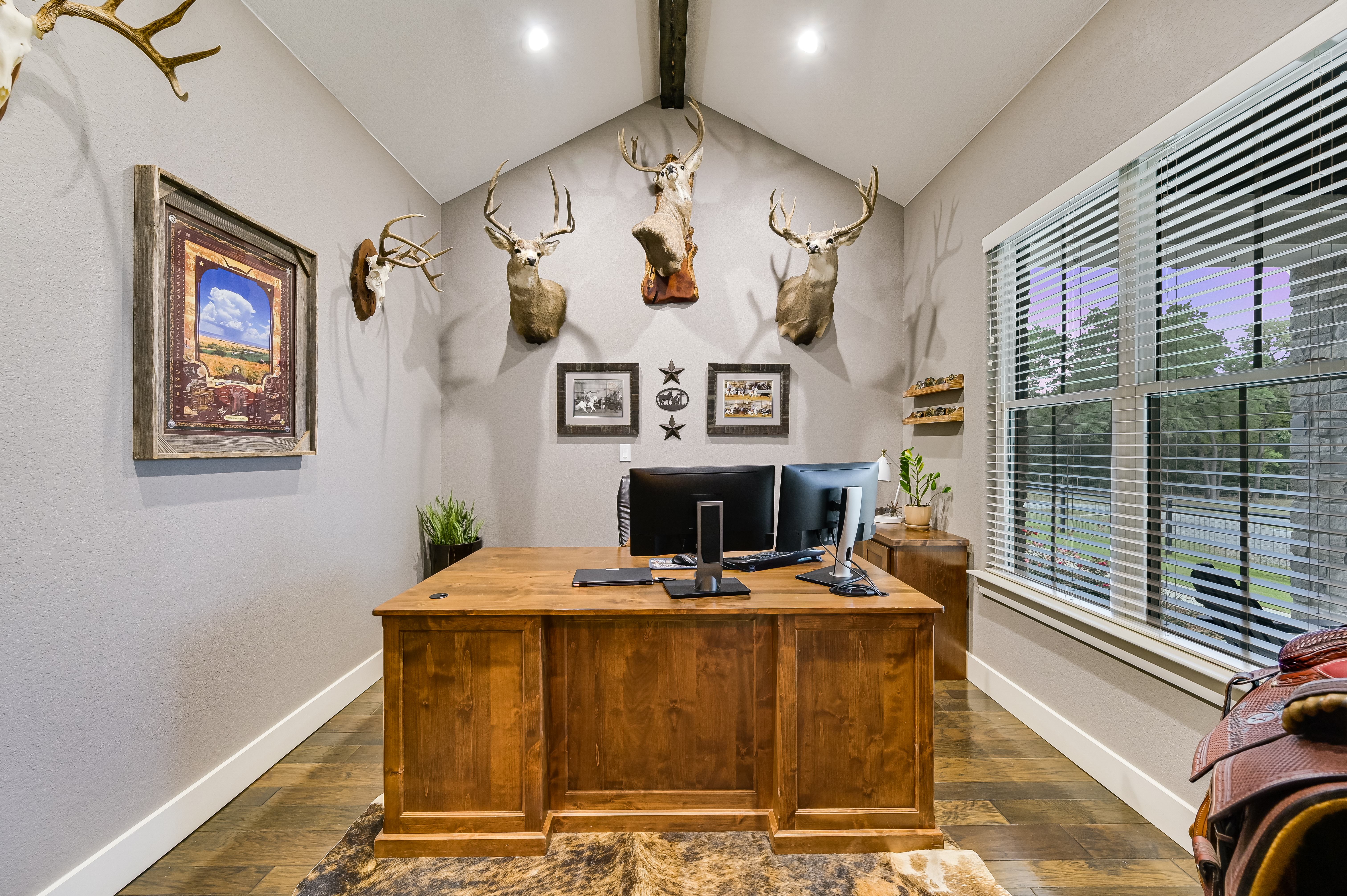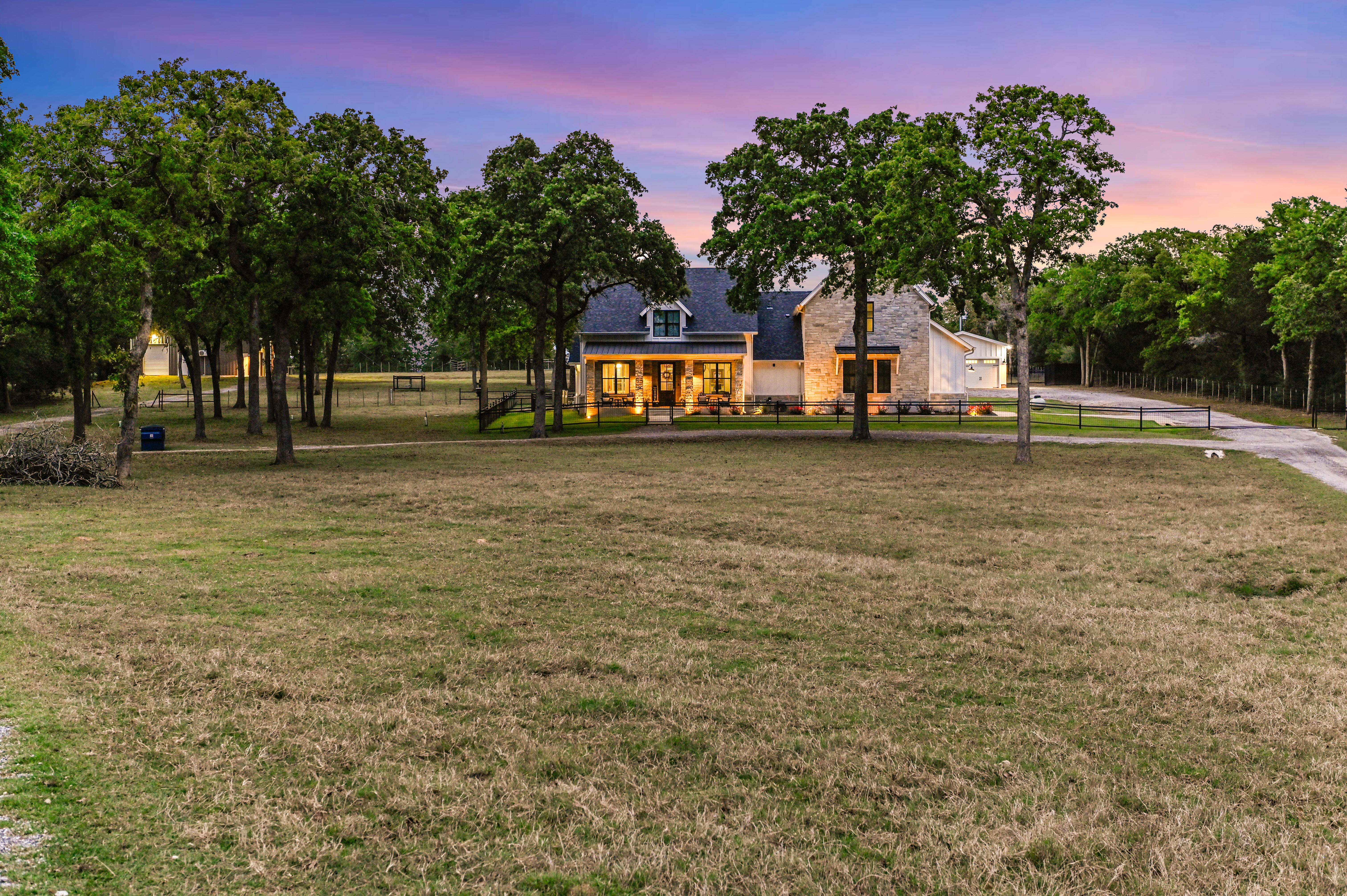 Pride of Rosanky! ~ This stunning 7.47-acre property sits along a scenic stretch of FM 535 between Rosanky and Rockne in Bastrop County. Enter through a gated entrance to a private, park-like setting featuring scattered oaks, coastal Bermuda pastures, and a sparkling stocked pond with fishing dock. The 3,182 SF custom farmhouse showcases stone and Hardi plank construction with 3 bedrooms, 2.5 baths, and a flexible 1.5-story layout. Living spaces include a dedicated office/study, spacious living room, and an upstairs bonus room ideal for a game or play room, media space, or gym. Interior highlights include engineered hardwood floors, ceramic tile in baths, quartzite countertops, and an open-concept kitchen with breakfast bar, island, propane 5-burner cooktop, stainless appliances, and walk-in butler’s pantry. The spacious private primary suite includes dual vanities, a jetted tub and walk-in shower and a thoughtfully designed closet, with built-ins and plenty of storage, with access to a well-appointed utility room featuring a sink, desk area, and abundant cabinetry. Step outside to enjoy a covered porch with wood-burning fireplace, outdoor kitchen, and gas grill—perfect for entertaining. Additional features include an oversized attached 2-car garage, detached 2-car garage with workshop and storage, and a versatile barn with dog kennels, hay storage, ½ bath, and potential guest quarters or horse setup. The fenced yard includes black pipe fencing, irrigation, and dog run. Newly installed livestock fencing and cattle pens in place for turnkey operation. AG exemption present for cattle grazing offers valuable tax savings. Water is provided by Aqua Water for the home and a well for irrigation and pond. Energy-efficient upgrades include foam insulation, zoned HVAC, and generator. Ideally located near Bastrop, Smithville, ABIA, COTA, and major employers including Tesla, SpaceX, and The Boring Company.