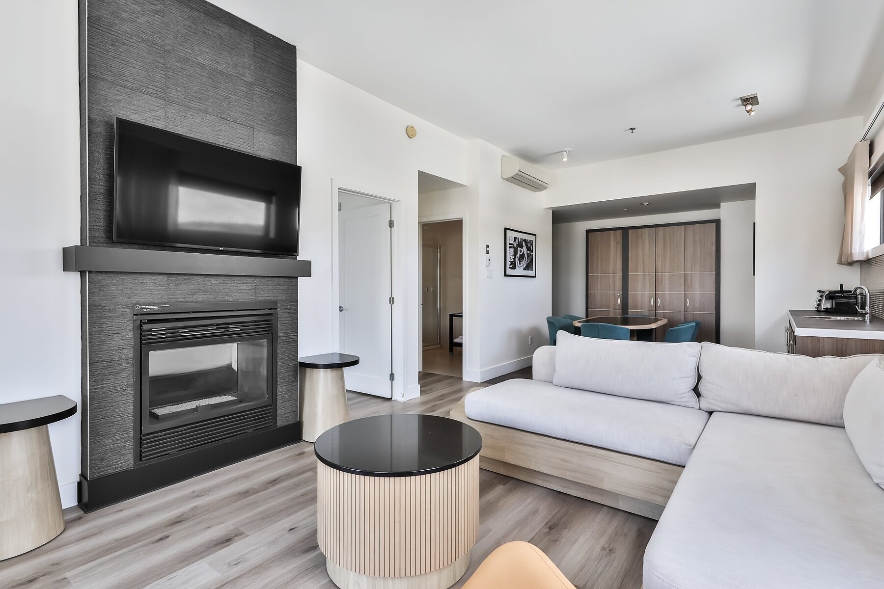 *** FULLY RENOVATED SUITE IN 2021 GUARANTEED MONTHLY REVENUES *** EXECUTIVE SUITE - Luxurious condo of 670 S.F. with bedroom open to a living room and 2-sided gas fireplace. Well equipped kitchenette. Flat screen TV. A large balcony offers you an environment based on nature and the gardens. Cellar space 12 bottles.