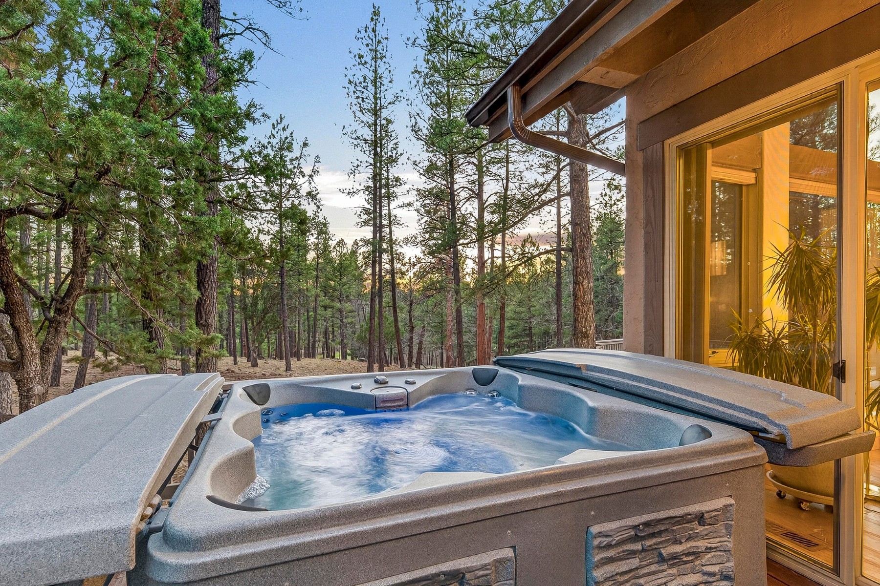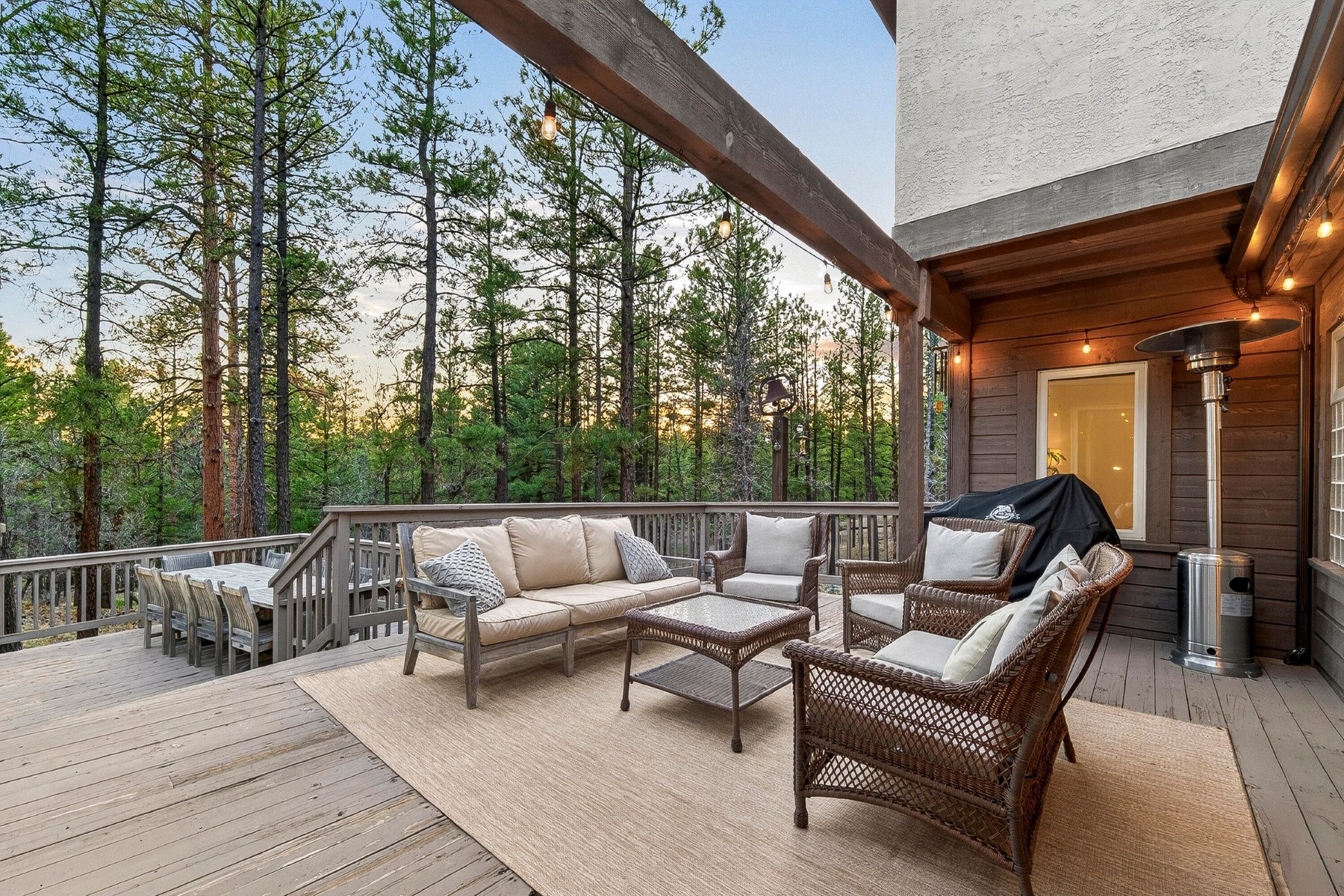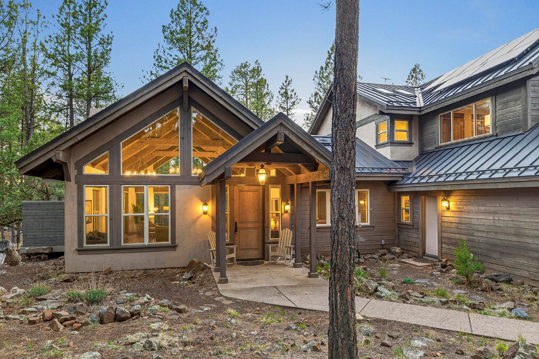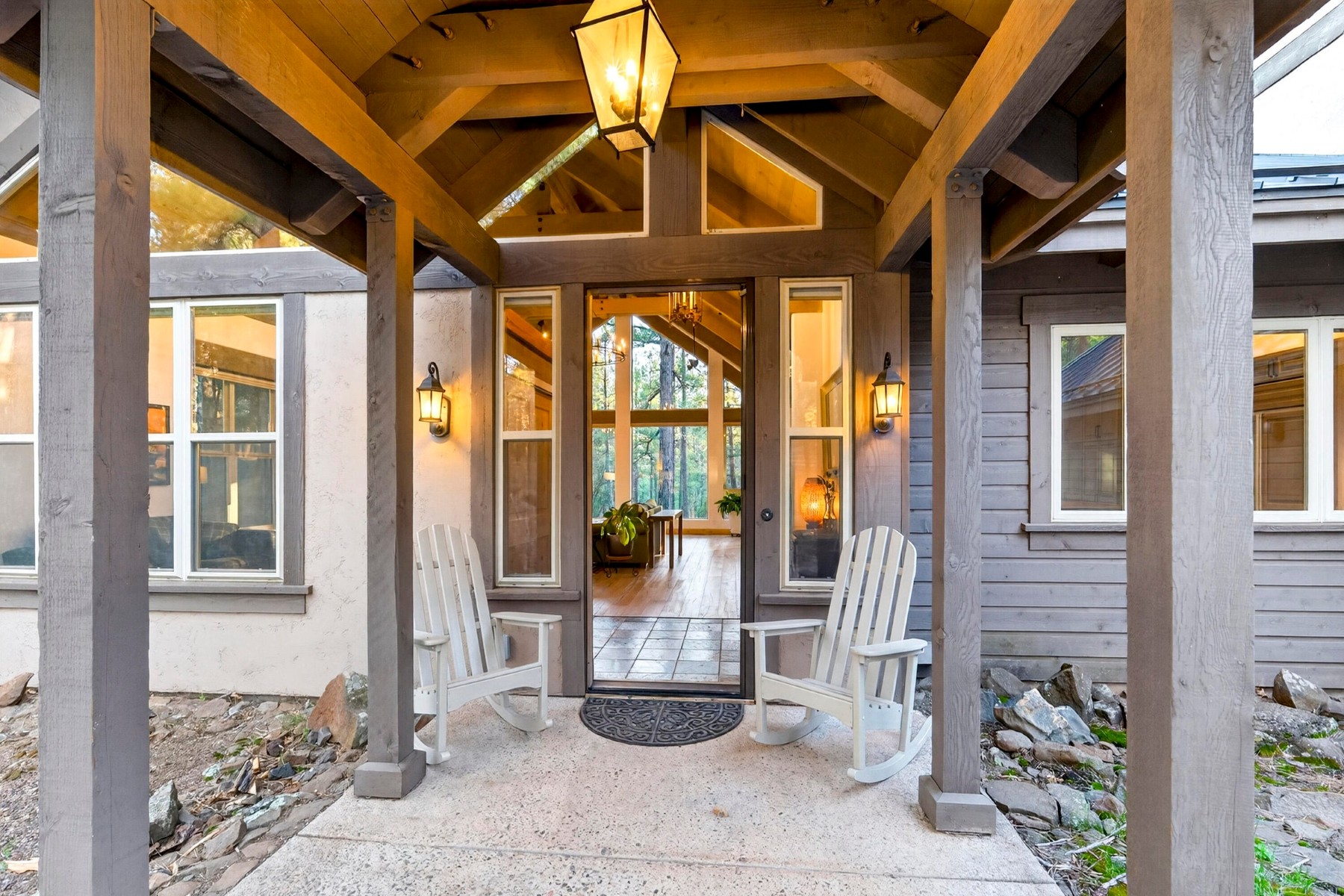 Set on 6.84 Ponderosa pine‑covered acres at the base of Mt. Elden, this Legacy property captures the very best of Flagstaff’s outdoor lifestyle: privacy, wildlife, and miles of premier mountain biking and hiking right outside your door. A custom home crafted with care and layered improvements welcomes you into a setting that feels both elevated and deeply peaceful. Inside, a grand living room showcases a custom Malapai rock fireplace and expansive view windows framing daily wildlife sightings, offering quiet moments among the pines. The entertainer’s kitchen features stain‑washed oak cabinetry, a walnut butcher‑block workstation, double ovens, and a dual‑fuel cooktop. The main‑level primary suite sits near an office or 5th bedroom, with three oversized ensuite bedrooms upstairs, including one with custom triple bunk beds. This home has undergone extensive high‑end interior renovations, including Knotty Alder doors and trim, designer lighting, premium wool Berber carpeting, a mix of slate and large wood plank wood floors, Hunter Douglas window coverings, upgraded stone and granite counters, and a spa‑inspired primary bath with a custom slate soaking tub. Recent major investments elevate long‑term reliability: owned solar, a premium metal roof, whole‑home air sealing by Cozy Home, a high‑efficiency heat pump system, and an upgraded 10,000‑gallon galvanized cistern. The property has been professionally fire‑wise treated, with over 150 additional trees and hazardous limbs removed. A mudroom and laundry area connect to the oversized 3‑car garage, and the home includes two heaters, a hot tub, two A/C units, a large shed, a central vacuum, and more. This turnkey mountain retreat blends luxury, durability, privacy, and an unmatched outdoor lifestyle, all on a paved county road in one of Flagstaff’s most coveted settings.