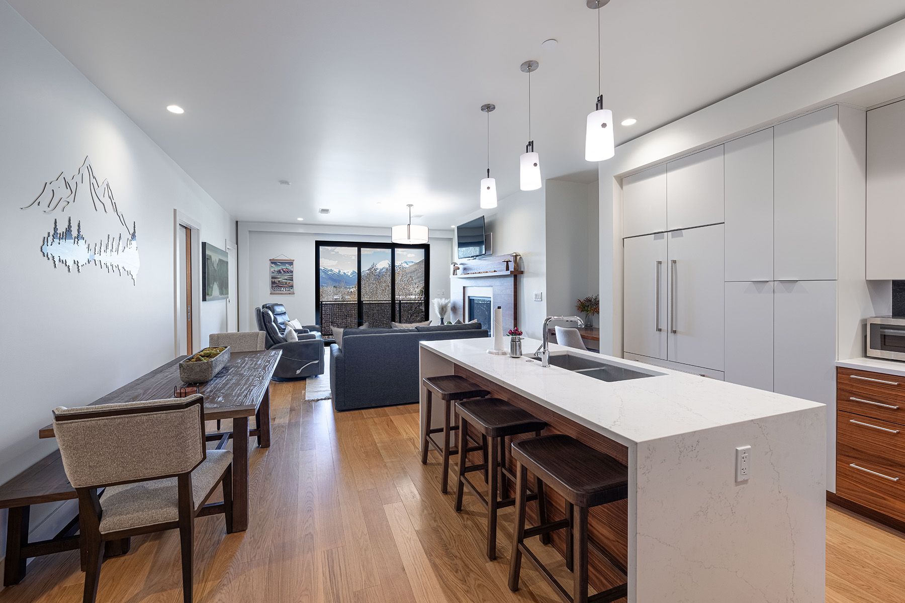 Views, luxury, location, and opportunity: Perched on the fifth floor of the prestigious One Town Hill, this like-new one-bedroom, one-and-a-half-bath slope-side condo puts you right at the base of Snow King with sweeping views over Jackson toward Glory Bowl and the peaks beyond. Fully furnished with high-end appliances, motorized electric blinds, and a gas fireplace, this is the ultimate turnkey mountain retreat. Secure building entry, assigned underground parking, and a private 6' × 8' storage area round out the package. Although the current owner has not enrolled in a rental program, short-term rentals are permitted -- making this a rare opportunity to own a luxury ski-in residence with serious income potential in the heart of Jackson Hole.