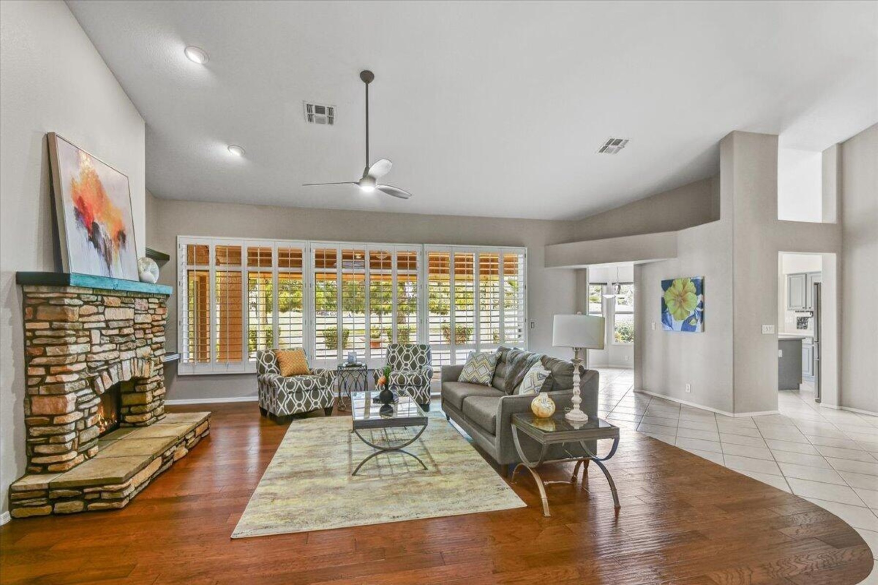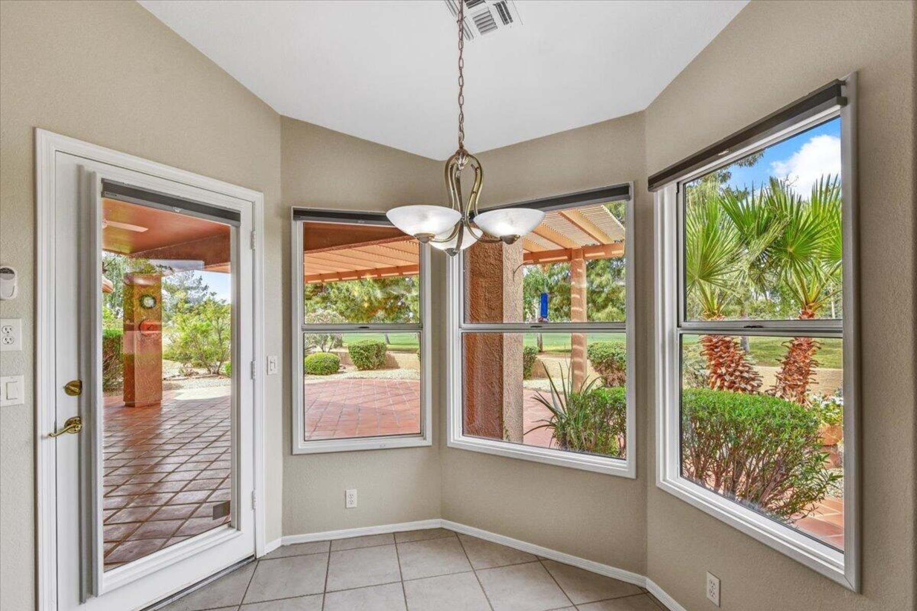 If you've been looking for the perfect home, look no more! Enjoy golf course living in highly desirable Westbrook Village. This 3 bed, 2.5 bath home with a 3-car garage features an open floorplan, vaulted ceilings, shutters, and a formal dining area with fireplace--perfect for entertaining. The eat-in kitchen offers stunning panoramic views. The primary suite includes vinyl plank flooring, bay window, patio access, and an en-suite bath with dual sinks and tiled walk-in shower. Two additional bedrooms provide space for guests or a home office. Relax on the extended covered patio overlooking the course. Enjoy resort-style amenities including 2-18 hole golf courses, 2 community pools, 2 rec centers, pickleball, restaurants, clubs and so much more!