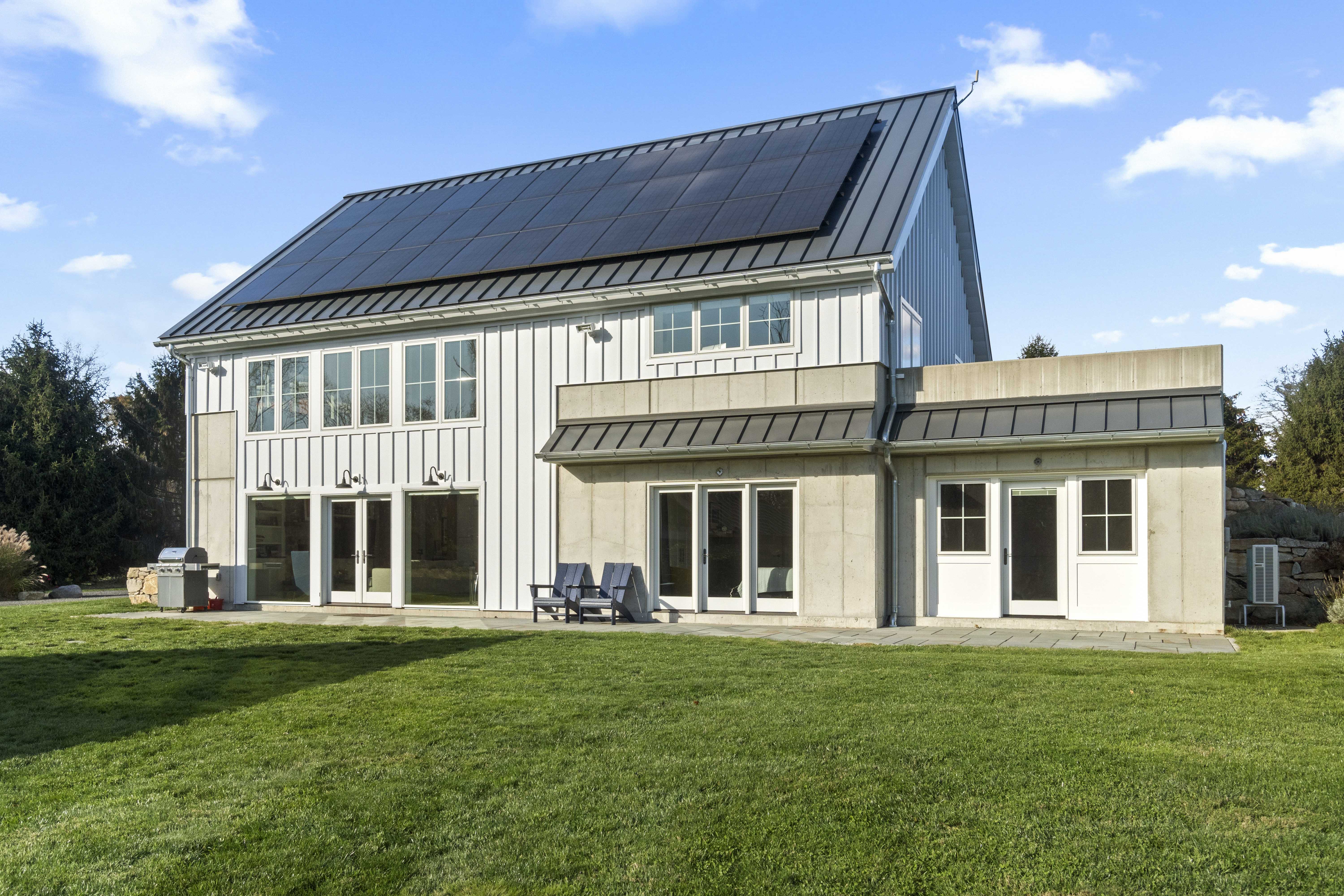 Discover a New-Generation Modern Farmhouse set on 7.3 pristine acres on one of the most coveted addresses in Historic Stonington. Once Colonial Farmland, now a Masterfully Designed Private Estate combining timeless character with cutting-edge performance. This 3 Bedroom 2 and 1/2 Bath home was thoughtfully constructed in 2019 to the highest Passive House, Net Zero Plus, and extreme weather-resilience standards. Enjoy a stunning First-Floor Primary Suite retreat with sauna and the spa-like heated-floor bath designed for two, walk-in closet, and glass doors opening to the patio, create a serene private sanctuary. Adjacent, a sun-filled exercise/recreation room and is ideal for a gym, studio, or indoor garden. The expansive open-concept living and dining space is anchored by soaring 30-foot post-and-beam ceilings and a striking gas fireplace, perfect for elegant entertaining and everyday comfort. The Chef's Kitchen is impeccably appointed with GE Wall oven, Sub-Zero refrigeration, Wolf induction cooktop, Miele commercial dishwasher, custom cabinetry, built-ins, and a Custom Island with Quartz Countertop. Outdoor living is equally extraordinary featuring a 20'x16' Post and Beam Pavilion, a 40' Bluestone Patio and also includes a Custom Rock-Enclosed Outdoor Shower. Infrastructure is already in place for a 40-foot lap pool, including electricals and equipment slab. Many Recent upgrades including professional landscaping.