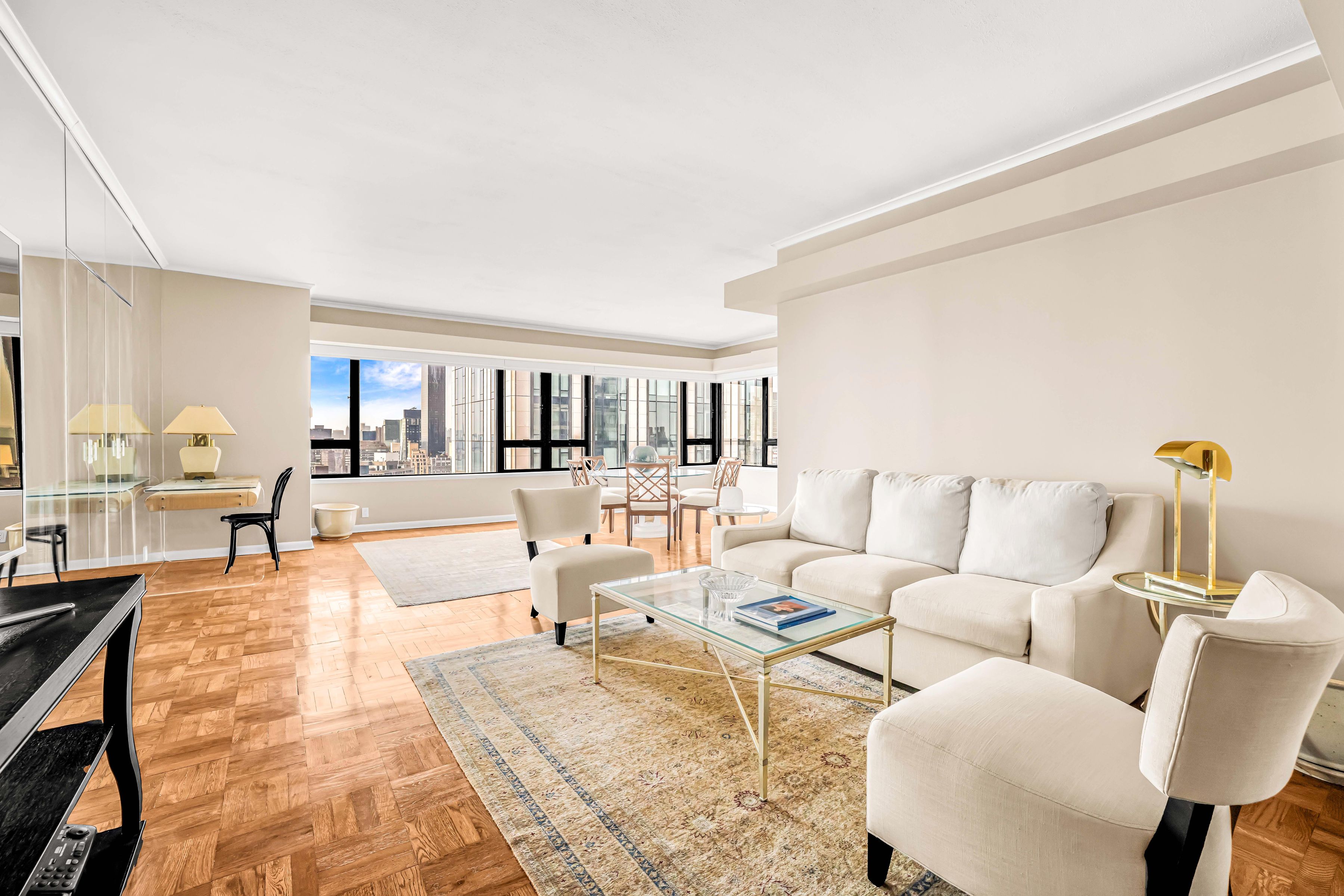 Experience the ultimate in luxury living, right in the heart of New York City's prestigious Sutton Place. This extraordinary two-bedroom, two-and-a-half-bath residence commands the 42nd floor, boasting coveted southern and western exposures that flood the interior with natural light and deliver panoramic views of the East River and glittering city skyline. With an expansive footprint of approximately 1,800+/- square feet, soaring nine-foot ceilings, and dramatic walls of windows, this home offers a breathtaking backdrop for your sophisticated urban lifestyle. The impeccable layout welcomes you with an elegant entry foyer, leading to a radiant, sun-drenched living room facing south. The spacious primary suite is a true retreat, offering abundant closet space and remarkable comfort. Every detail has been carefully considered: luxurious en-suite marble bathrooms, a windowed gourmet kitchen perfect for culinary creations, a separate laundry area, rich hardwood floors throughout, and a dedicated service entrance for convenience and privacy. The Sovereign stands as a beacon of timeless mid-century elegance, renowned for its unparalleled service and reputation as a premier, full-service building. Enjoy an unrivaled suite of amenities designed to enhance your everyday: - State-of-the-art fitness center—work out without leaving the lobby - Valet parking garage with Tesla charging stations—arrive and depart with ease - Year-round climate control—central heating and air conditioning for your comfort - Beautifully landscaped, park-like gardens—an oasis to relax and rejuvenate - Professional staff—including sentry, doorman, and concierge for white-glove service With only two residences on each floor, The Sovereign offers an unmatched combination of privacy, exclusivity, and impeccable service. This is more than a home—it's a statement, a sanctuary, and a rare opportunity to own in one of Manhattan’s most coveted addresses. This luxury residence is truly a must-see! Don’t let this opportunity slip away. Call now for your private showing—luxury living awaits, and we can’t wait to welcome you home.