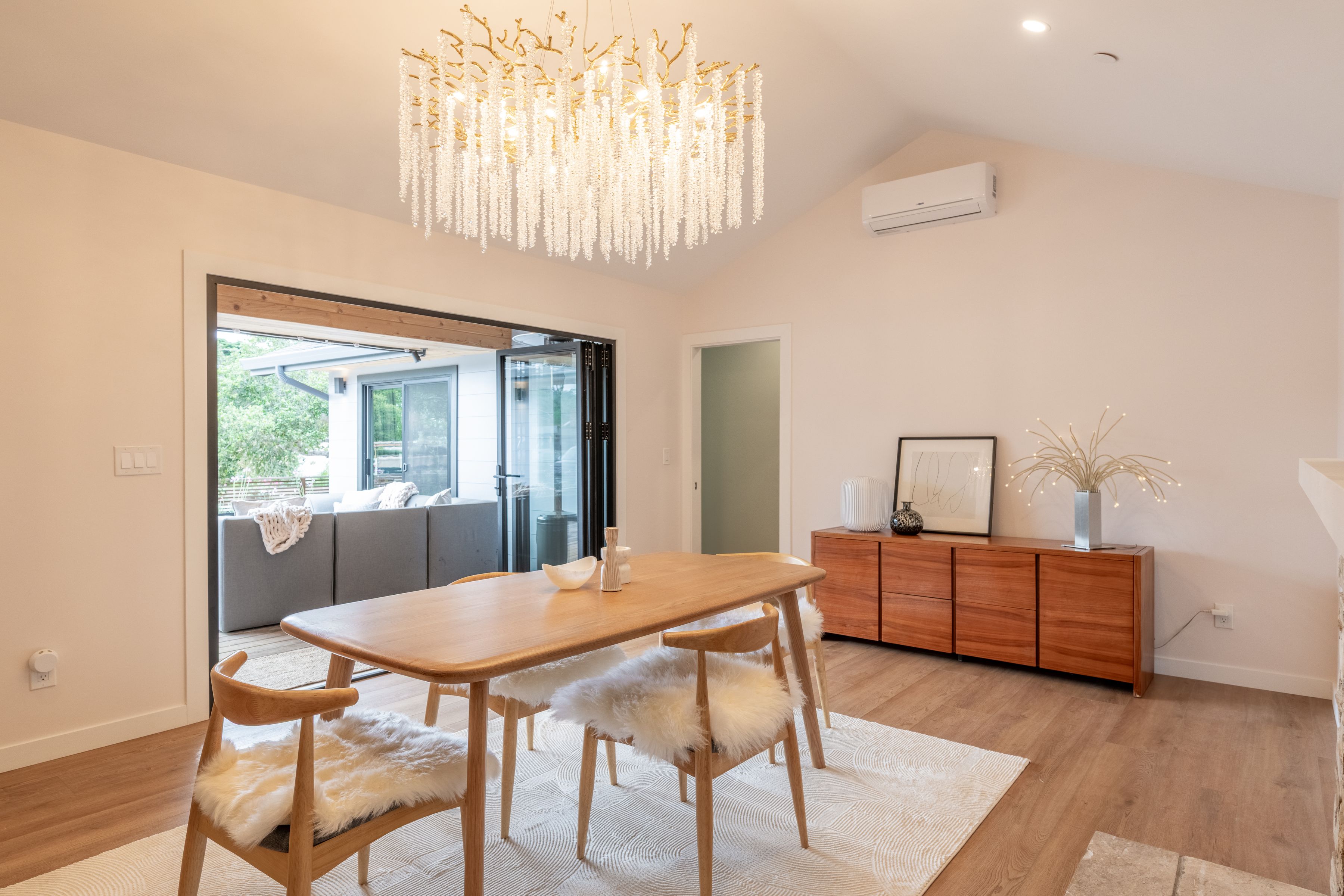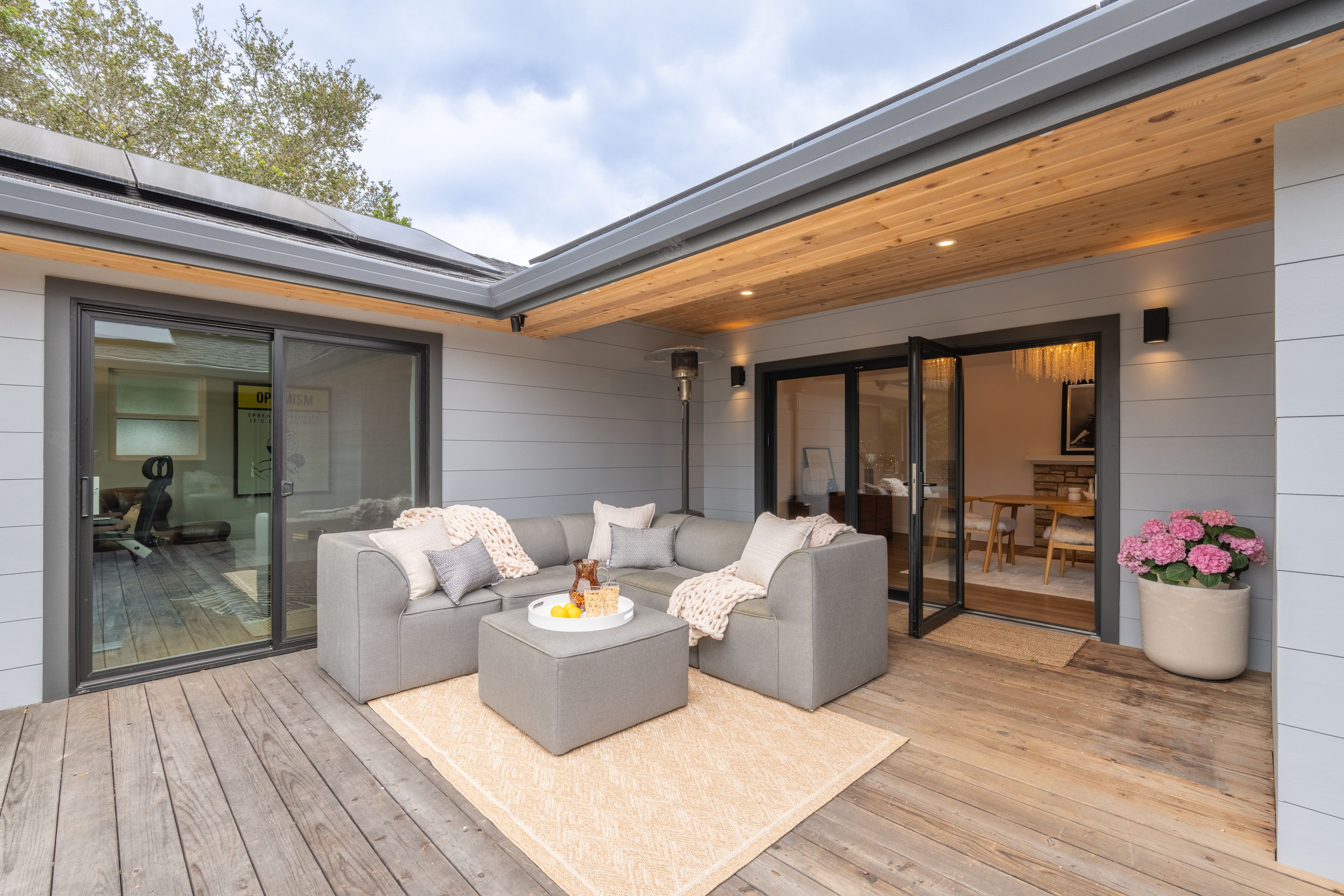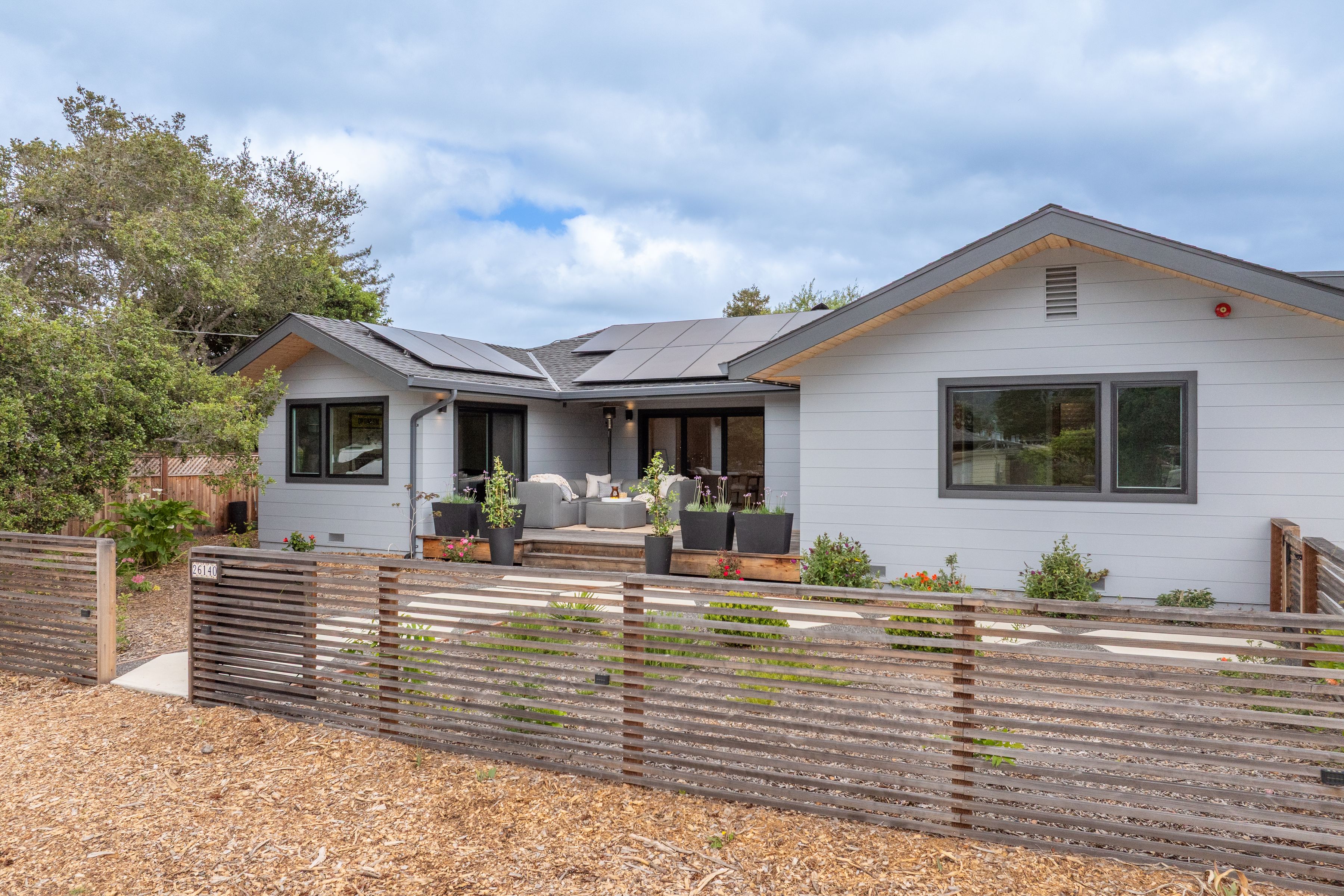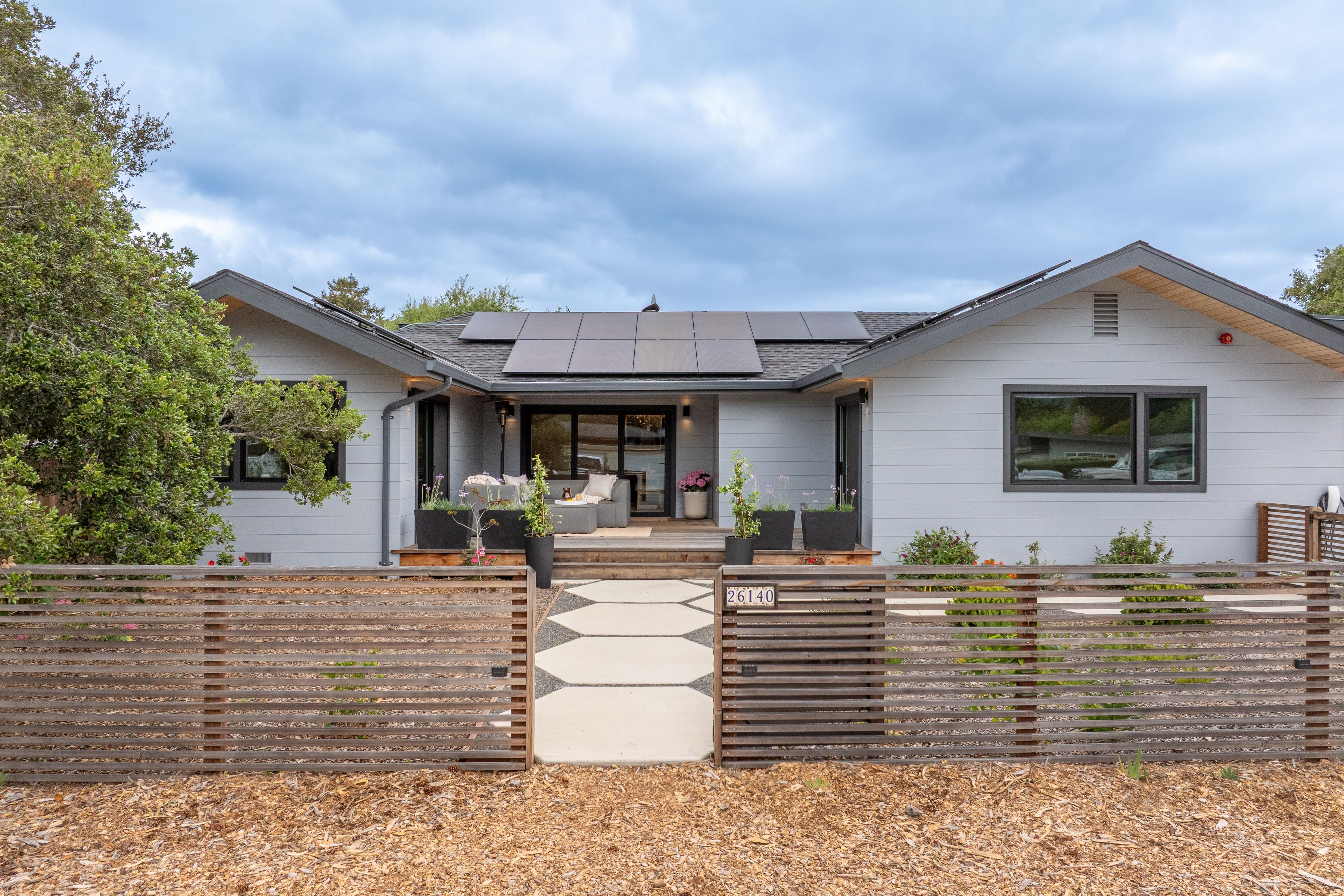 Carmel, an exceptional high end modern designer retreat fully reimagined inside and out set on a private, lush 1/3acre just minutes from beaches, shops, and dining. This rare single level 3BD/2.5BA home offers 2,142± square feet of refined coastal living with owned solar and resort style grounds. Striking yet inviting interiors blend contemporary architecture with warmth and livability, featuring custom cabinetry, soapstone countertops, quartz baths, a wood burning fireplace, and a chefs kitchen with premium appliances, Bosch induction cooktop, and double ovens designed for everyday comfort and entertaining. Comprehensively upgraded throughout with new electrical, plumbing, insulation, subfloor, drywall, and a 5zone minisplit HVAC system. Energy efficiency is enhanced by an owned 10.44 kW solar system (NEM 2.0) and Tesla EV charger. The grounds offer a true private sanctuary with lush landscaping, mature fruit trees, new decks and patios, and thoughtfully designed outdoor living spaces. A barrel sauna and hot tub create a spa like experience at home.