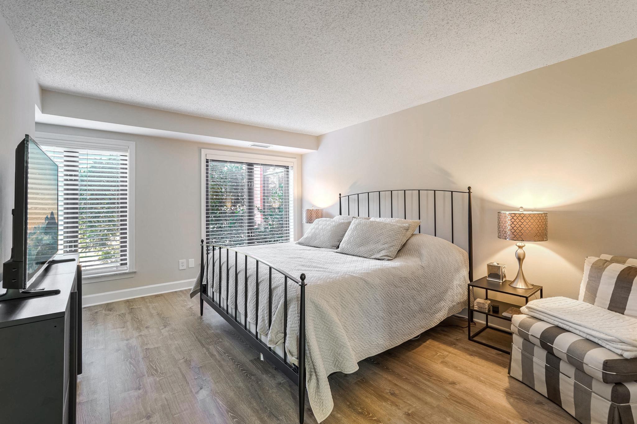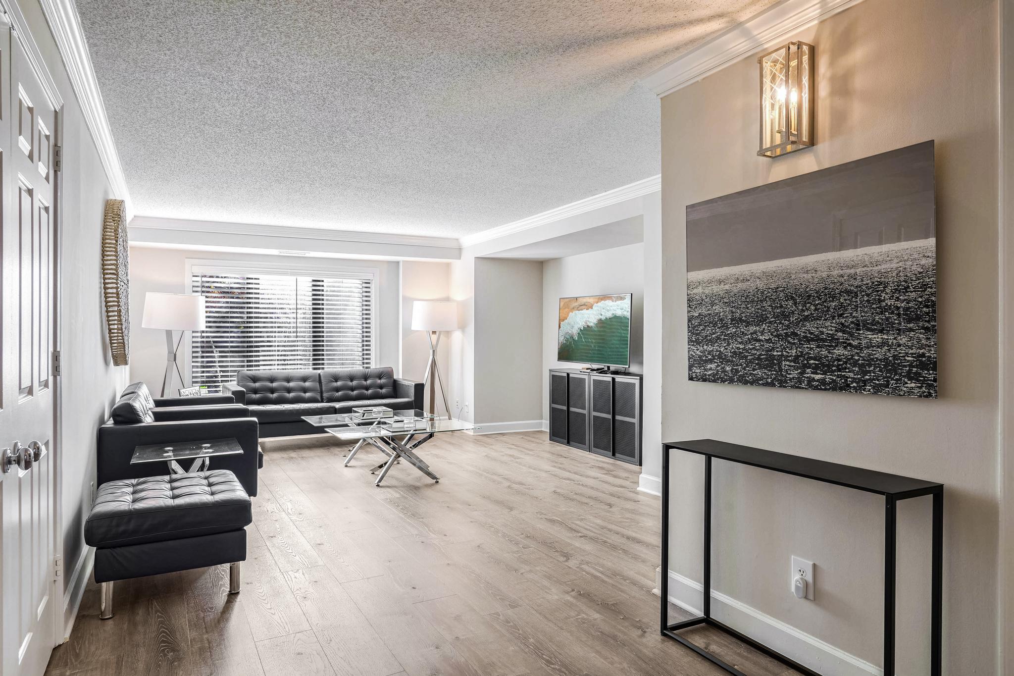 Welcome home to this iconic address in the heart of Georgetown. This beautifully appointed large one bedroom plus 1.5 bath condo is South facing for plenty of sunshine with a serene courtyard view . Secured underground parking is included and located just steps away from this unit for very easy access via stairs or elevator and comes with additional garage parking perks. This luxury apartment has been fully renovated in 2024 and features brand new wide plank flooring, new washer and dryer, all new stainless steel kitchen appliances, updated lighting fixtures and fresh neutral paint throughout. Plenty of storage with two walk in closets plus additional built in storage space. This unit is unique in that there are no shared walls with neighbors making it extra quiet. The well insulated building also keeps electric costs down (plus water, sewer and trash are included!). Georgetown Park is a secured building with front desk concierge, package service, an outdoor pool and easy underground parking - all located in the most iconic cross streets of Georgetown - at Wisconsin Ave. and M Street all so very convenient to dining, shopping and the Georgetown waterfront park. **Also offered fully furnished for $4250/month**
