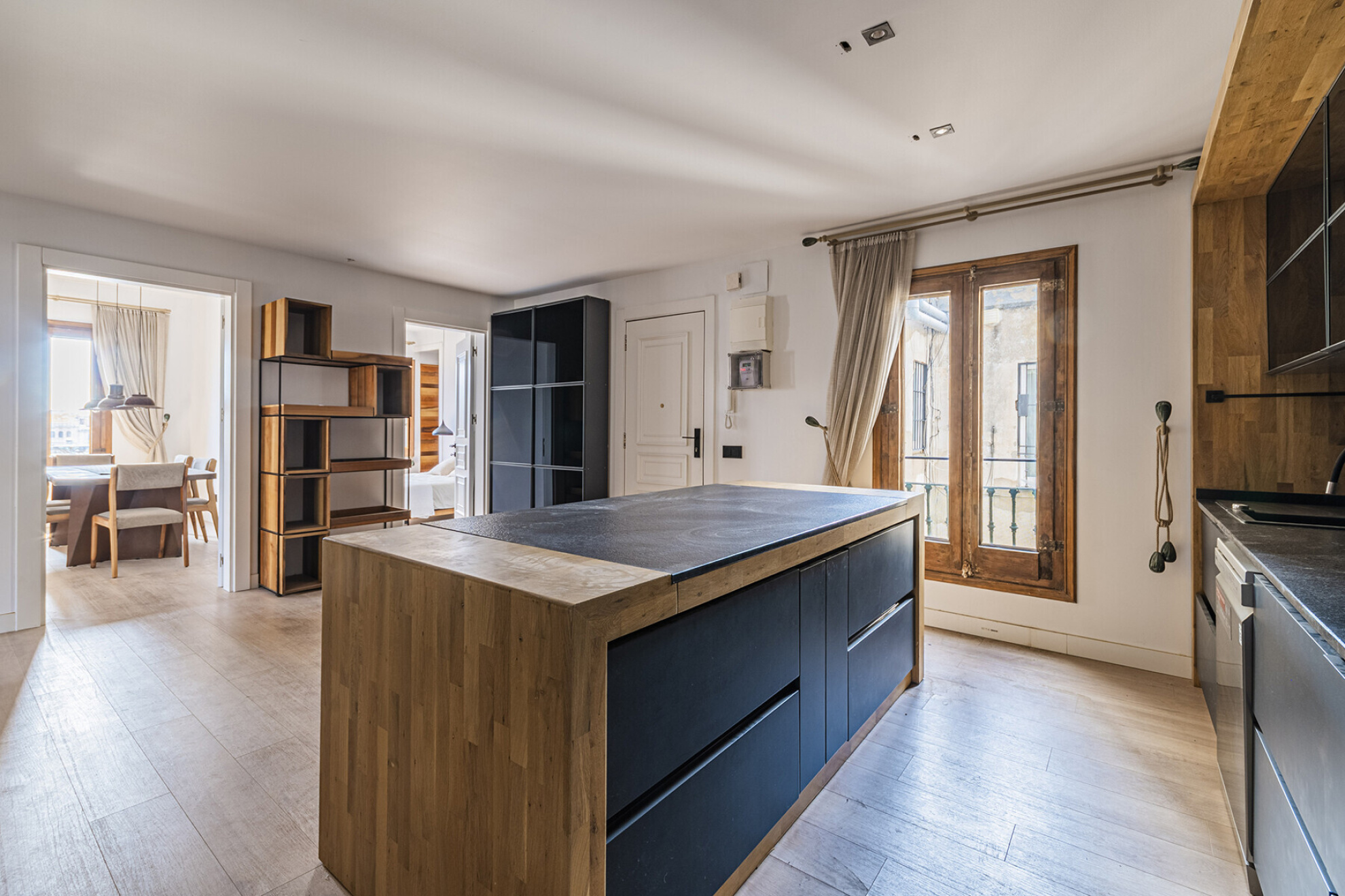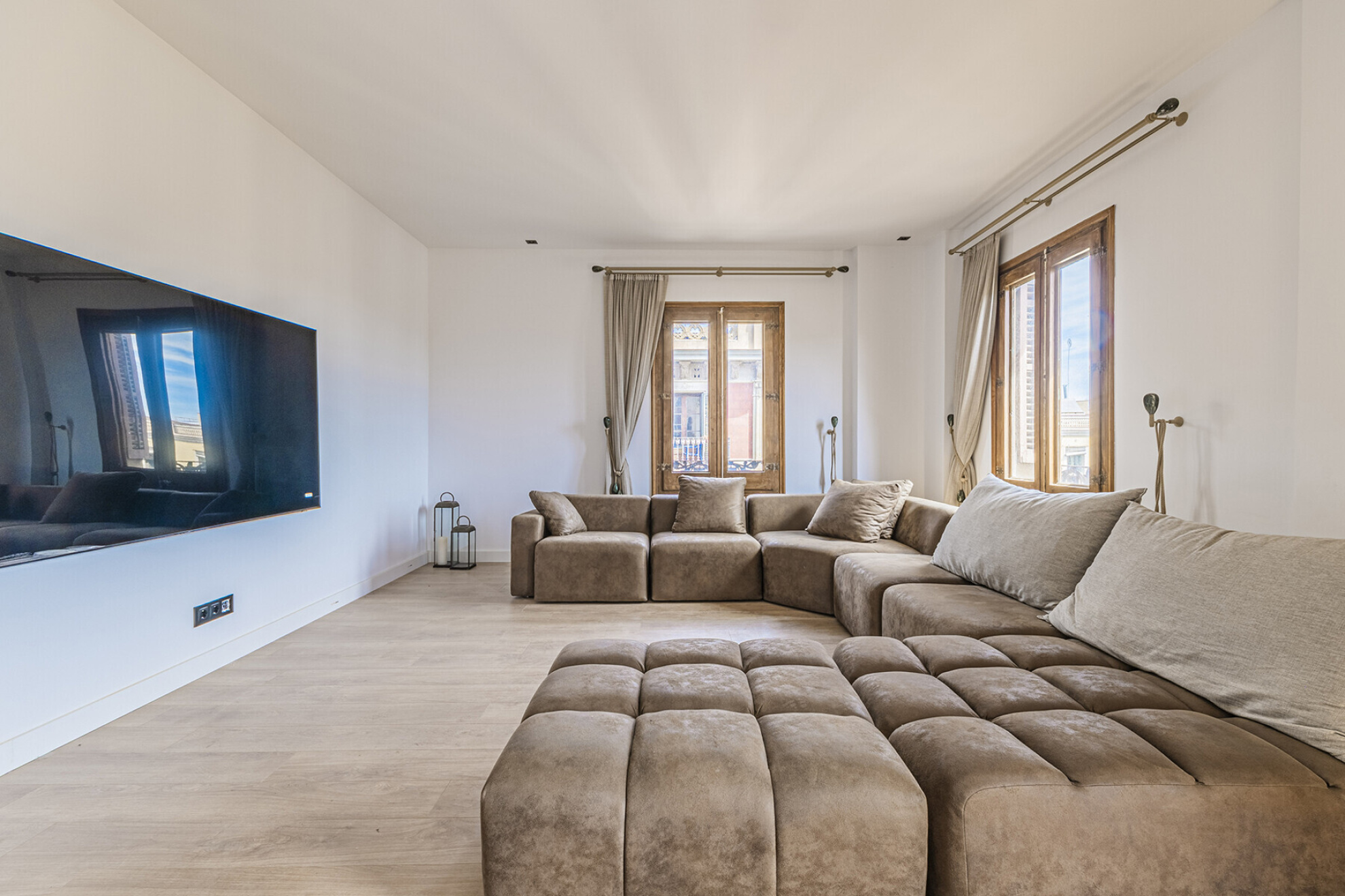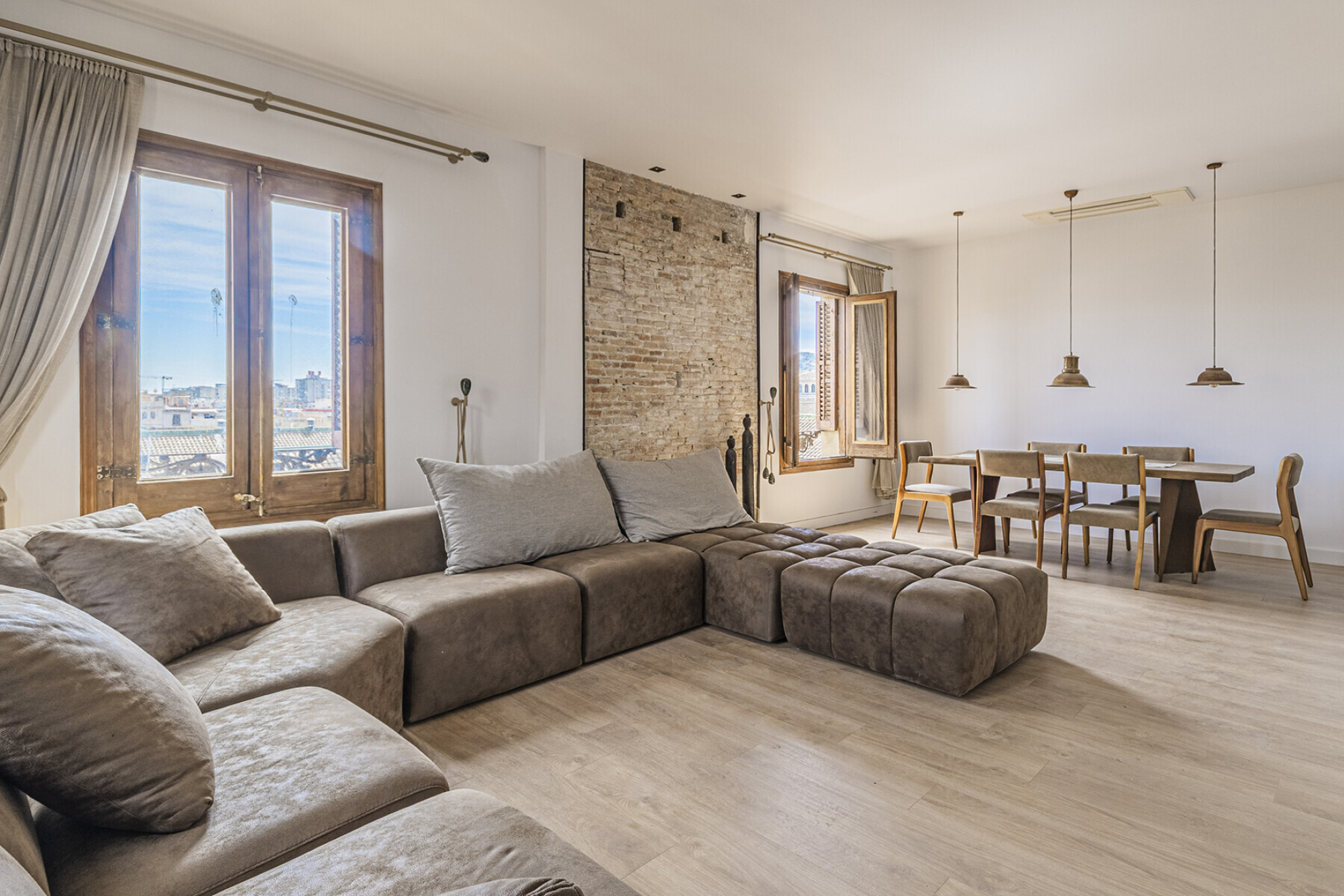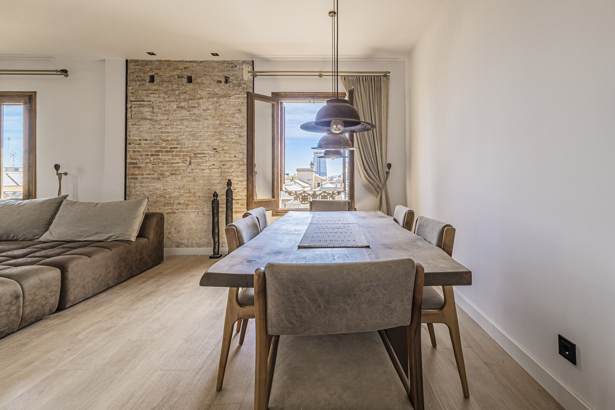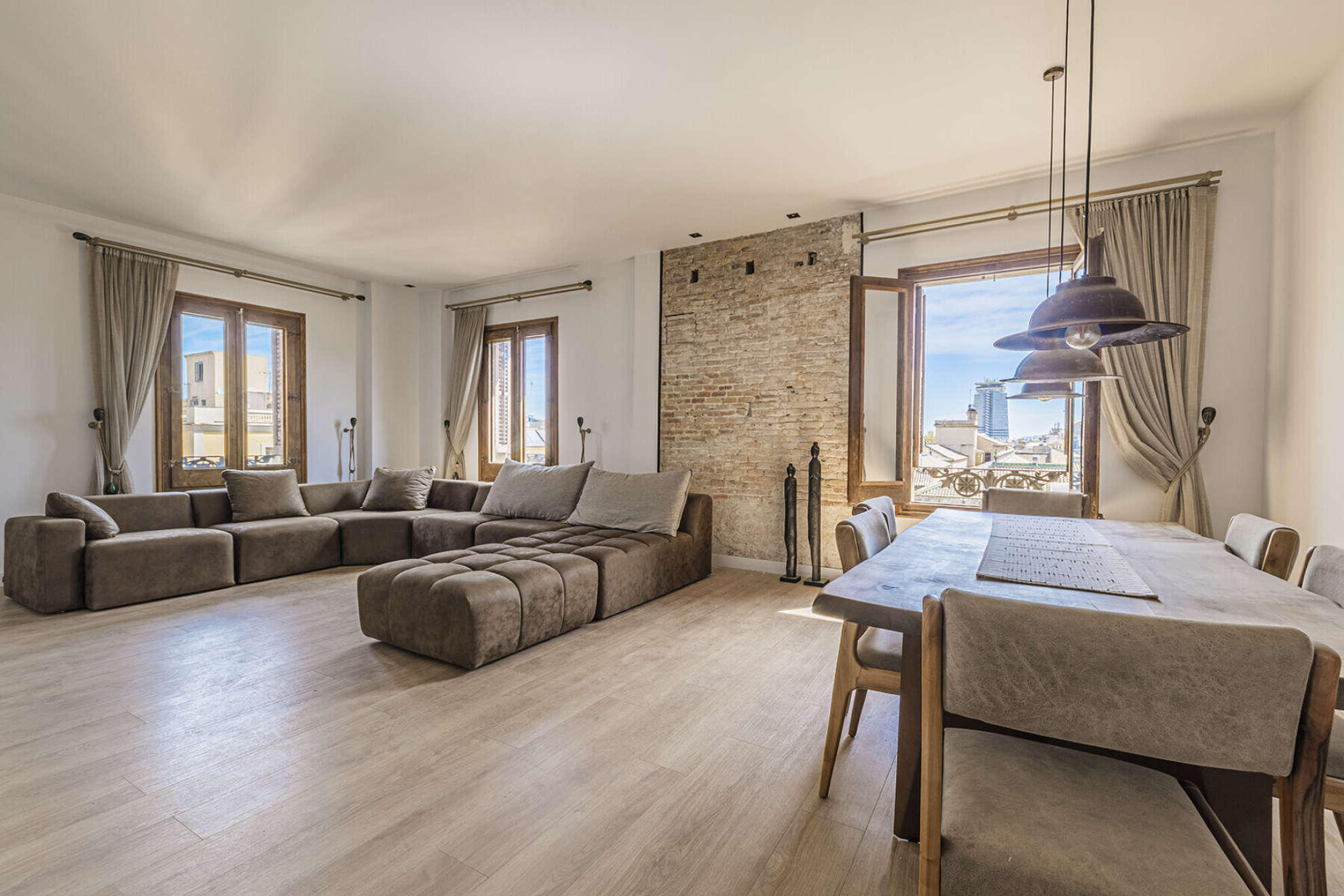 Fantastic property located in the center of Barcelona, in Ciutat Vella, in the vibrant Raval neighborhood. Located in an elegant corner building, on the third floor with elevator, this property stands out for its character, brightness and careful renovation, ready to move in.With an approximate area of 157 sqm, the apartment offers a comfortable and functional distribution, with three bedrooms and two bathrooms, both en suite, providing privacy and comfort.The day area consists of a large living-dining room, spacious and bright, with a perfectly integrated open kitchen, ideal to enjoy both day-to-day life and to receive guests. The high ceilings enhance the feeling of spaciousness and elegance, while the south orientation ensures direct natural light throughout the day.From the apartment you can enjoy unobstructed views, reaching the mountain of Montjuïc, which provides a sense of tranquility unusual in the city center.The property comes fully furnished, with a contemporary design and quality materials, designed for those looking for a home ready to move into without sacrificing style and comfort.A unique opportunity to enjoy a unique home in one of the most authentic and dynamic areas of Barcelona.