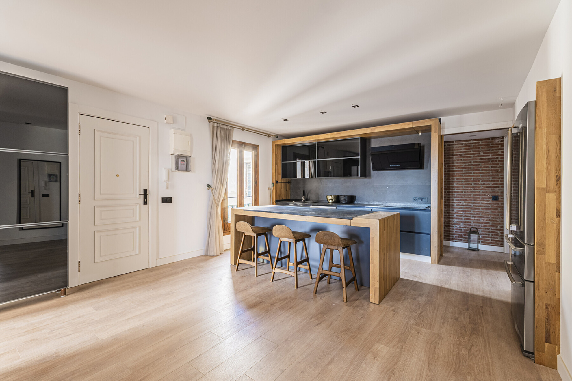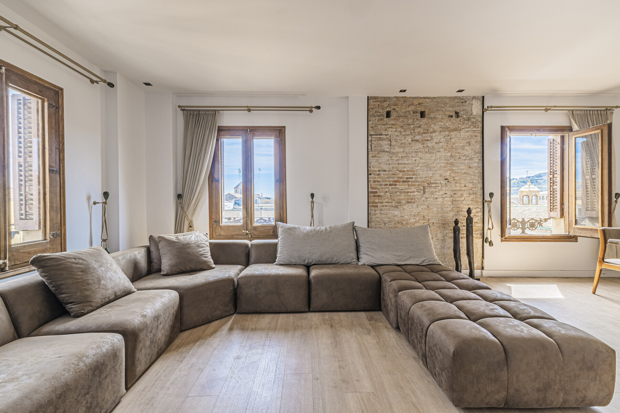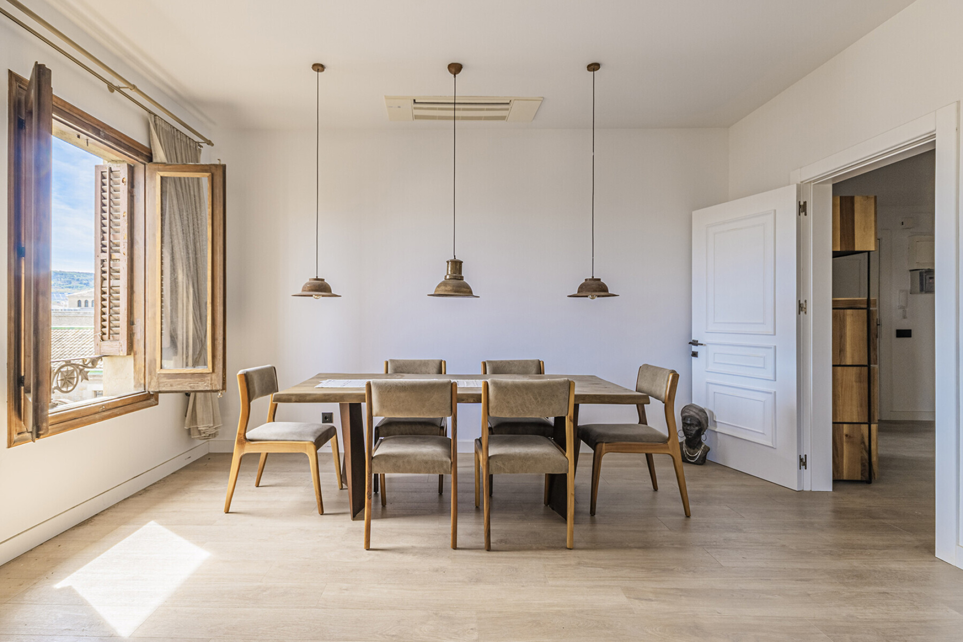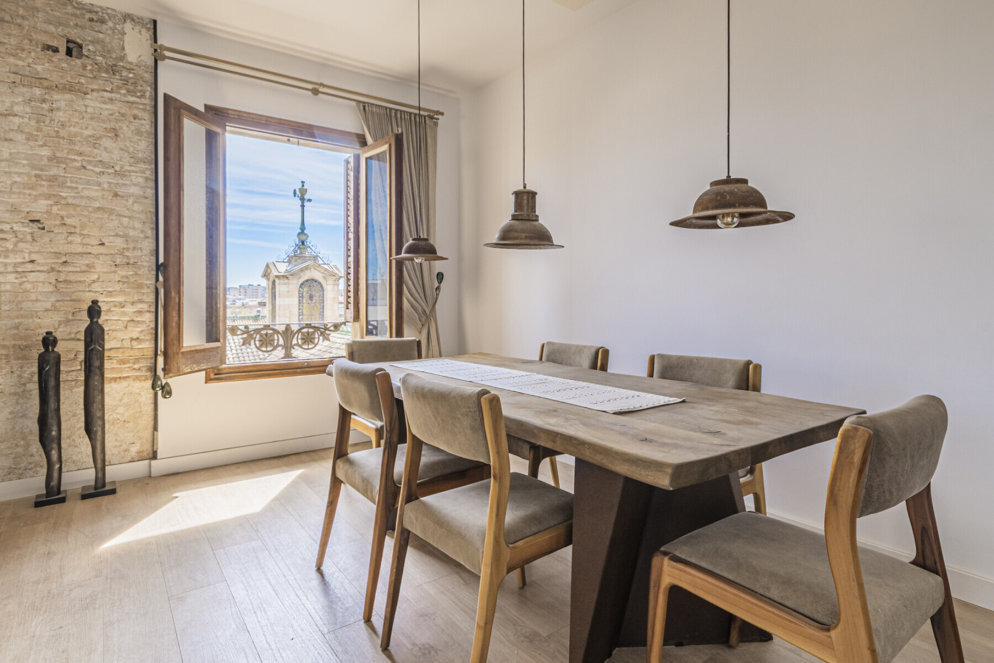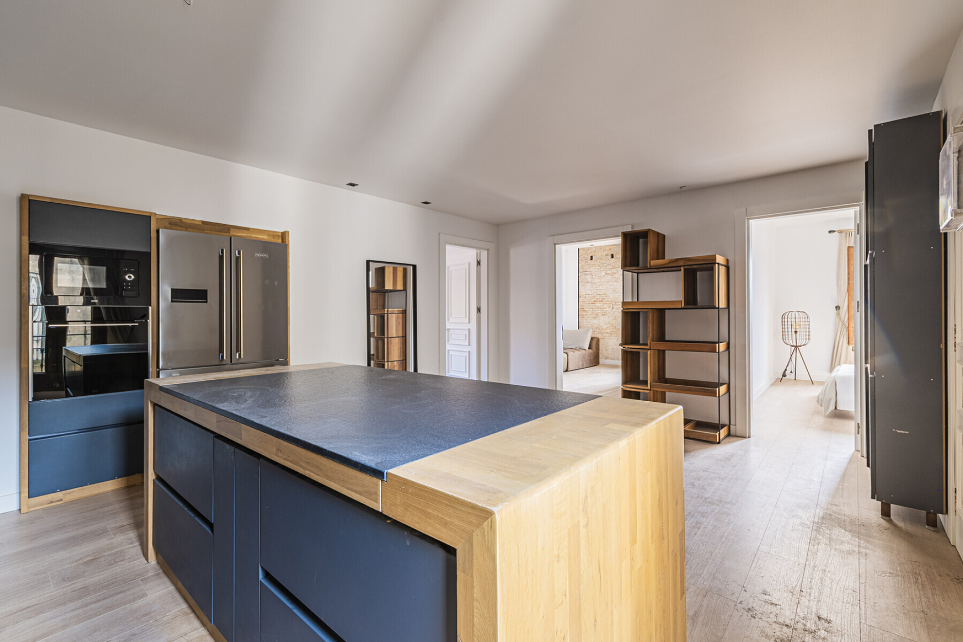 Fantastic property located in the center of Barcelona, in Ciutat Vella, in the vibrant Raval neighborhood. Located in an elegant corner building, on the third floor with elevator, this property stands out for its character, brightness and careful renovation, ready to move in.With an approximate area of 157 sqm, the apartment offers a comfortable and functional distribution, with three bedrooms and two bathrooms, both en suite, providing privacy and comfort.The day area consists of a large living-dining room, spacious and bright, with a perfectly integrated open kitchen, ideal to enjoy both day-to-day life and to receive guests. The high ceilings enhance the feeling of spaciousness and elegance, while the south orientation ensures direct natural light throughout the day.From the apartment you can enjoy unobstructed views, reaching the mountain of Montjuïc, which provides a sense of tranquility unusual in the city center.The property comes fully furnished, with a contemporary design and quality materials, designed for those looking for a home ready to move into without sacrificing style and comfort.A unique opportunity to enjoy a unique home in one of the most authentic and dynamic areas of Barcelona.