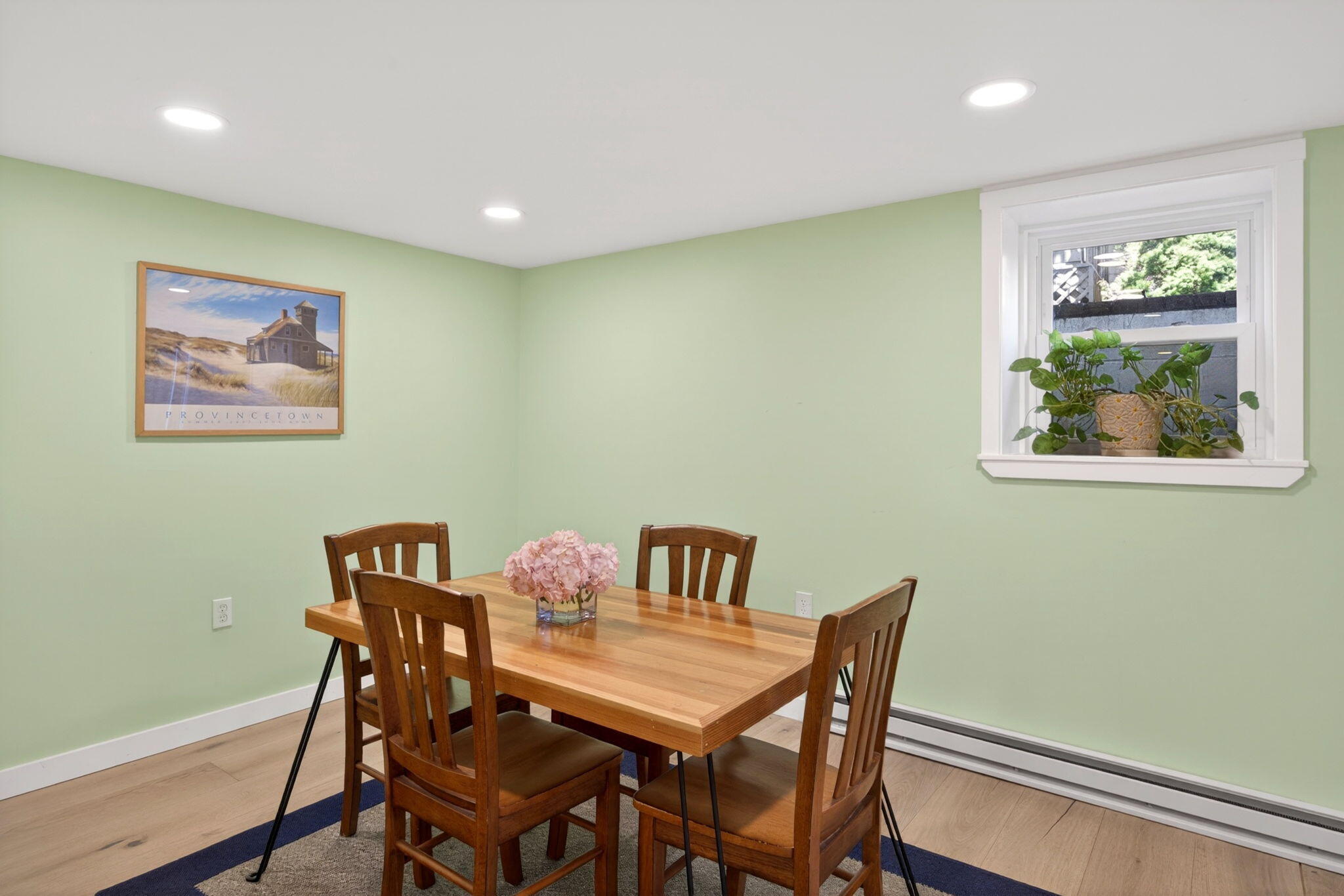 Set only yards from a private beach--complete recent renovation sets the tone for this 2-bedroom, 1-bath garden level condo at White Dory, quietly positioned in Provincetown's East End, just a 6-minute bike ride to town, with weekly rentals allowed. Just across the street, private beach access provides a front-row seat to easterly views, with sunrises and full-moon displays over Cape Cod Bay. Climate-controlled storage--plenty of it--along with ample owner and guest parking completes the offering. The classic shingle-style building opens to a broad green lawn with space to sit, grill, and unwind. Inside, the layout offers a strong sense of openness, with a natural gathering space centered around a working fireplace and an easy flow throughout. Given its size, a large dining area could also serve as a home office or den. Bedrooms are well separated and generously scaled. Low condo fees and pet-friendly.