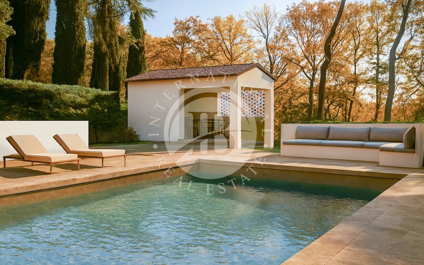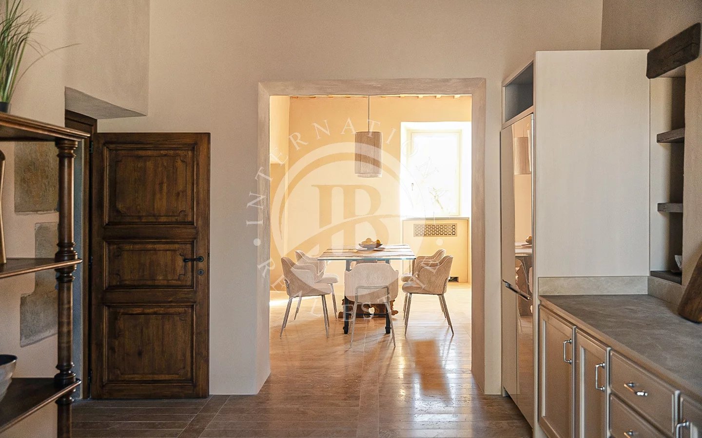 This magnificent 19th-century residence, located in the heart of Umbria just a short distance from the Tuscan border, is a rare example of philological restoration. Its historical soul has been meticulously preserved and enhanced with every modern comfort.The villa enjoys a dominant position with unparalleled views of Lake Trasimeno. The interior spaces, flooded with natural light, masterfully blend original character with high-end contemporary design. The villa features five elegant bedrooms and five bathrooms, designed to ensure maximum comfort and privacy. Of particular note is the luxurious master bedroom, which offers exclusive access to a 50 sqm panoramic terrace. The comprehensive restoration included a full overhaul of the electrical and plumbing systems, a new roof, and the installation of air conditioning throughout. The furnishings, partly included in the sale, are handcrafted pieces that provide an atmosphere of understated elegance.The property is further enhanced by an adjacent unit currently under renovation, designed to offer total independence. This unit features its own private access, a dedicated garden, an exclusive swimming pool, and a lemon house (limonaia). The sale includes the delivery of the entire property fully renovated and furnished, ensuring a harmonious estate ready for immediate occupancy.The private park of approximately 6,500 sqm is fully fenced and accessible via two independent entrances with electric gates. The grounds frame a stunning 7x14 m panoramic swimming pool and a refined pool house, offering a versatile outdoor wellness area. The residence stands out for its premium finishes, such as travertine marble, which provides brightness and extreme elegance while remaining in harmony with the Umbrian landscape.The proximity to one of Italy’s most renowned boutique hotels and a world-class golf course underscores the exclusivity of this location. Thanks to its strategic position, the villa represents a secure, technologically advanced oasis of peace—ideal as either a prestigious primary residence or a high-end vacation home.Passignano sul Trasimeno is an enchanting medieval village situated on the northern shores of Lake Trasimeno. Officially recognized as one of the "Borghi più belli d'Italia" (Most Beautiful Villages in Italy), the town—historically known as "Passus Jani"—develops around a majestic medieval fortress that dominates the lakeside scenery.➢