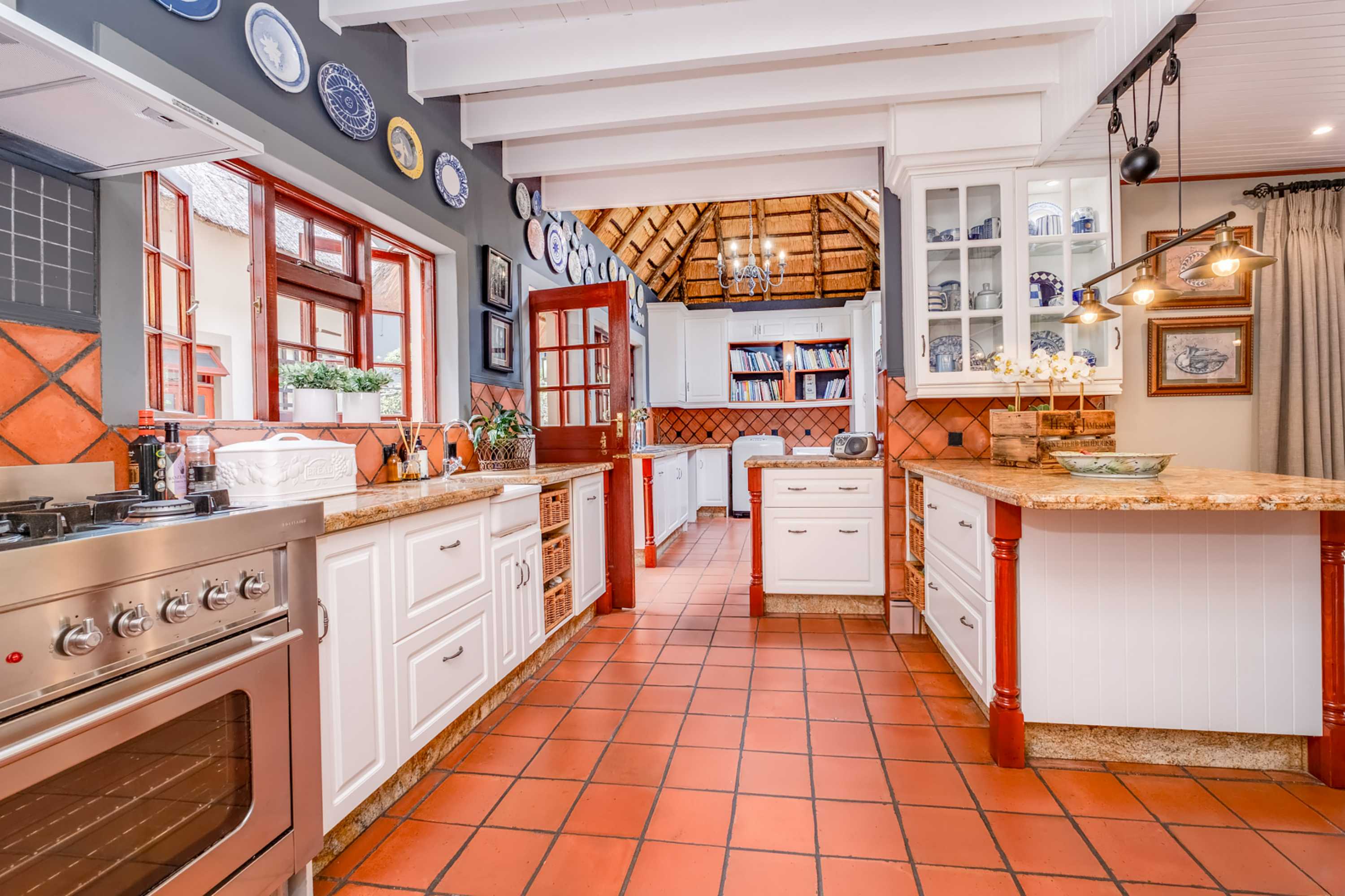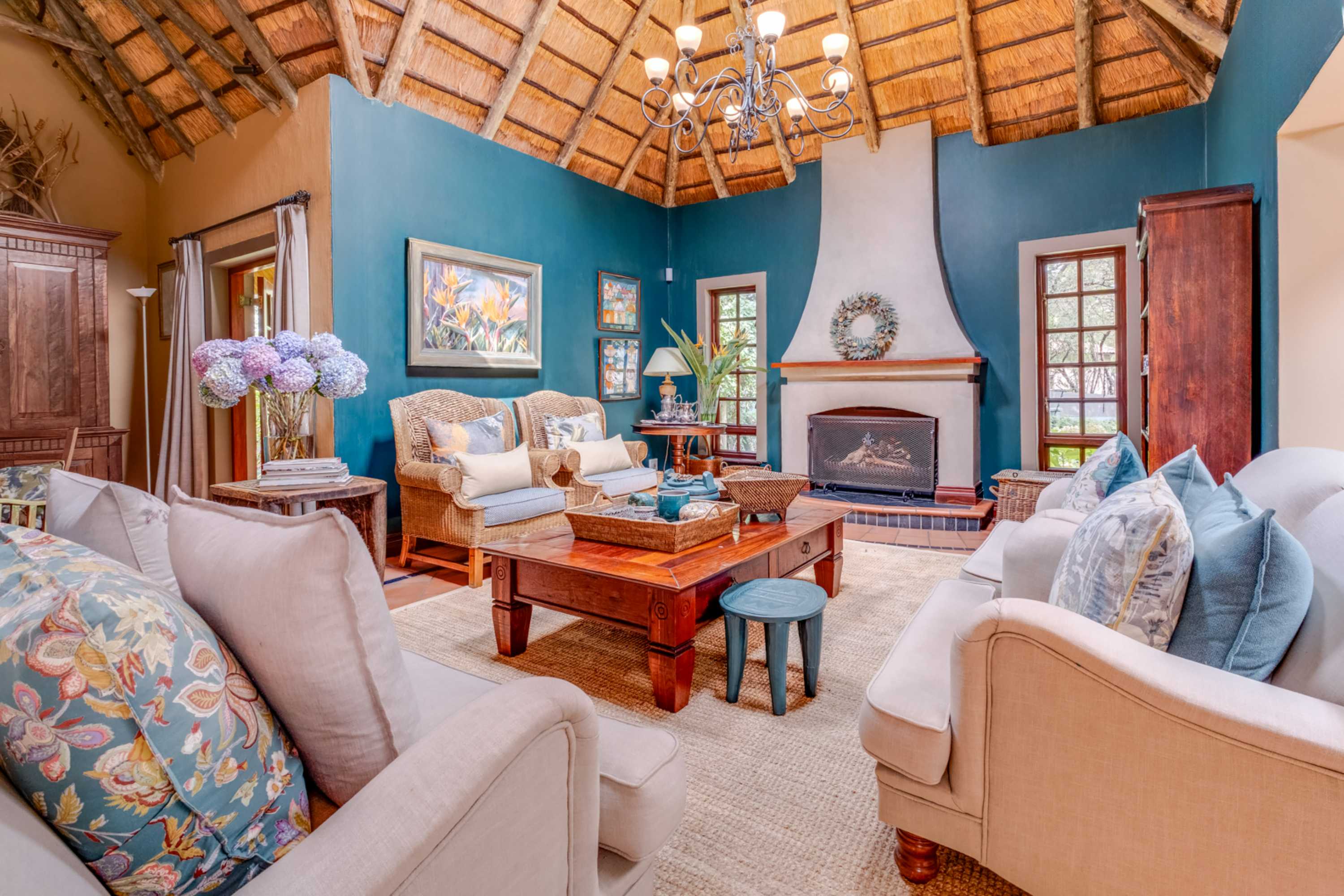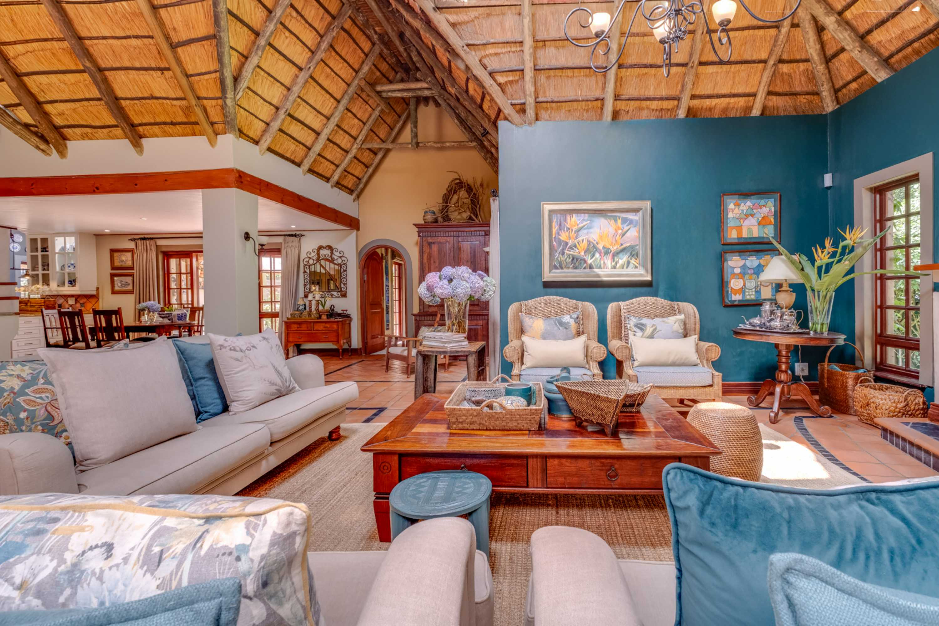 Step into a stunning thatched residence where timeless charm meets sleek modern finishes.