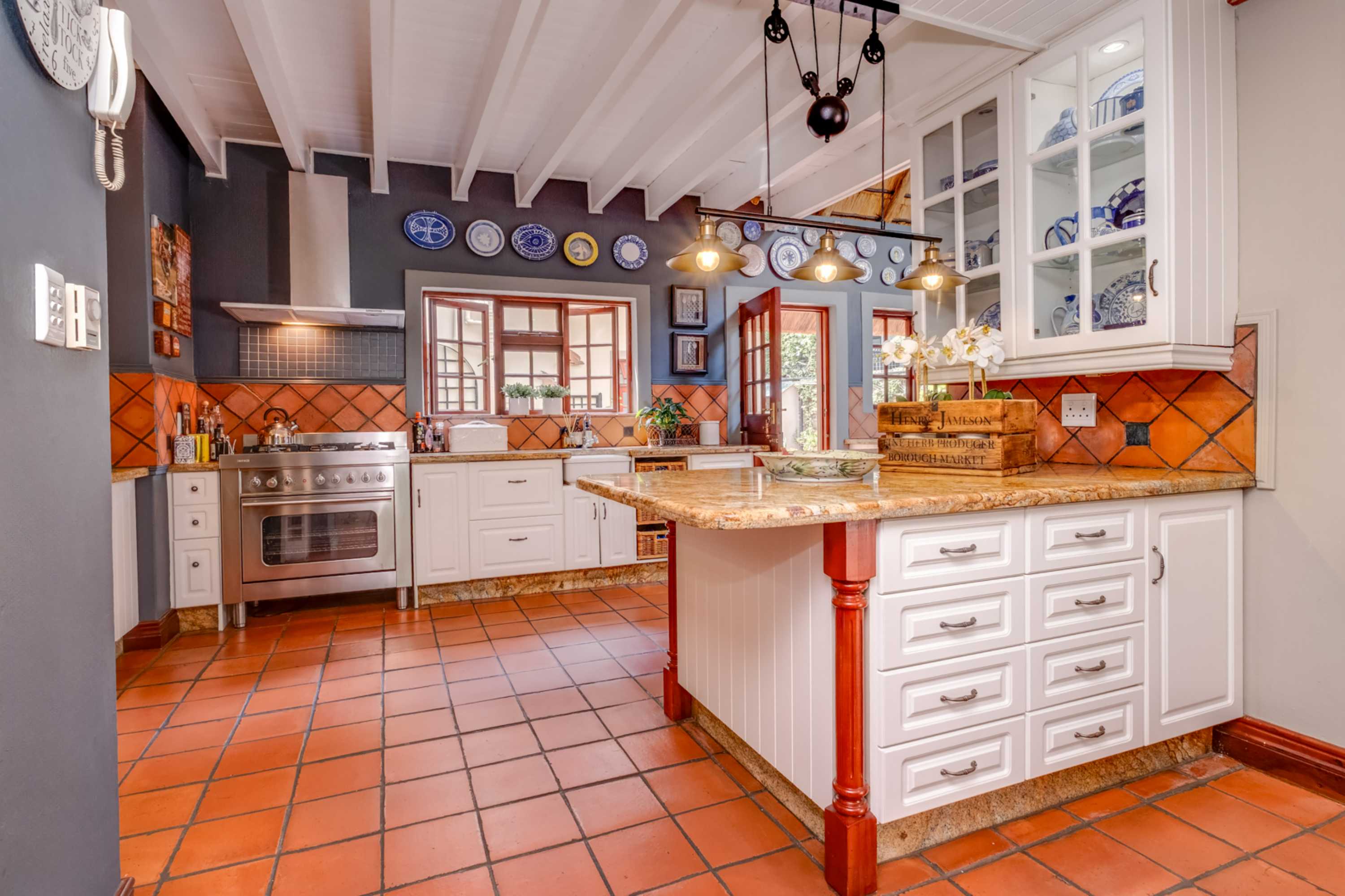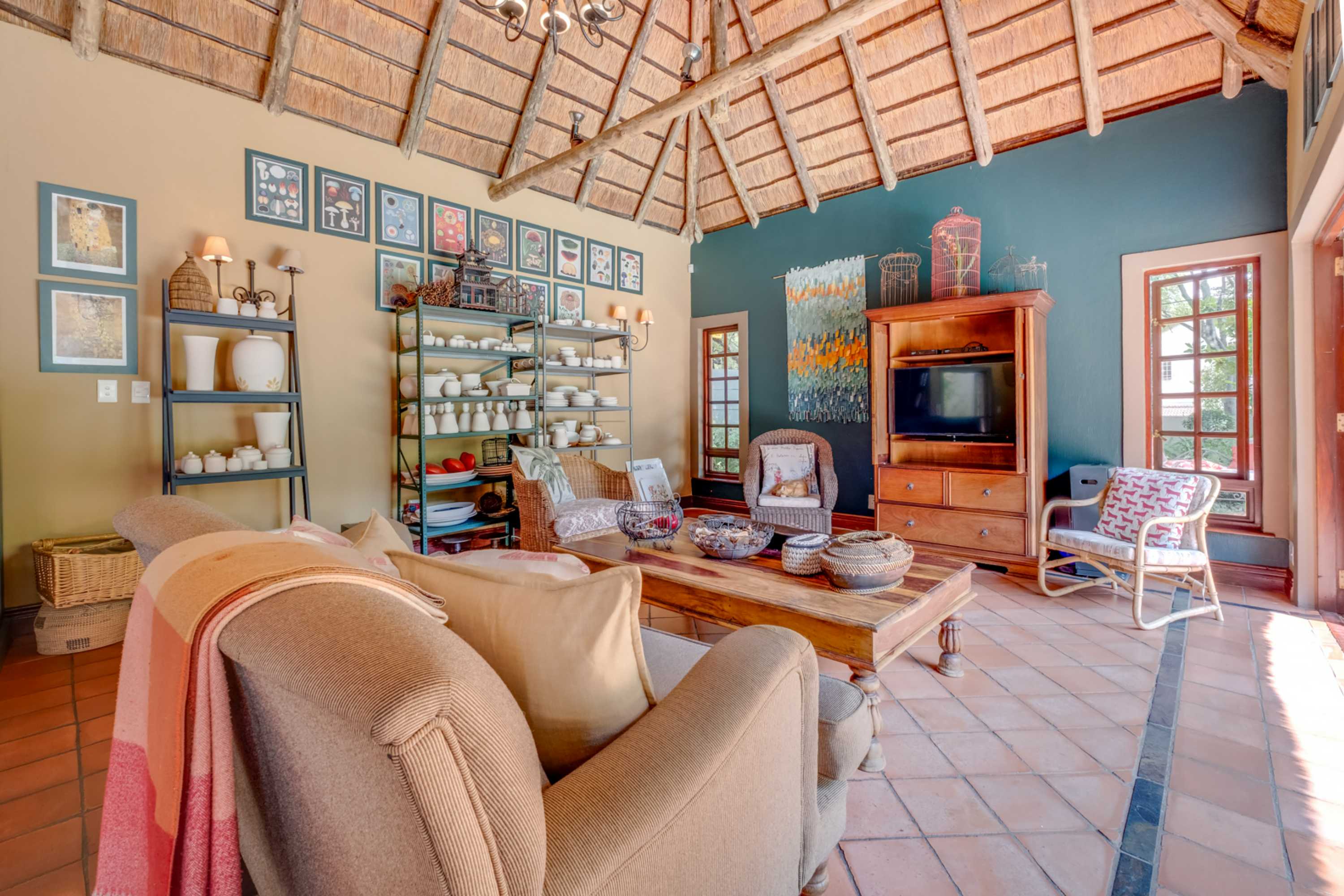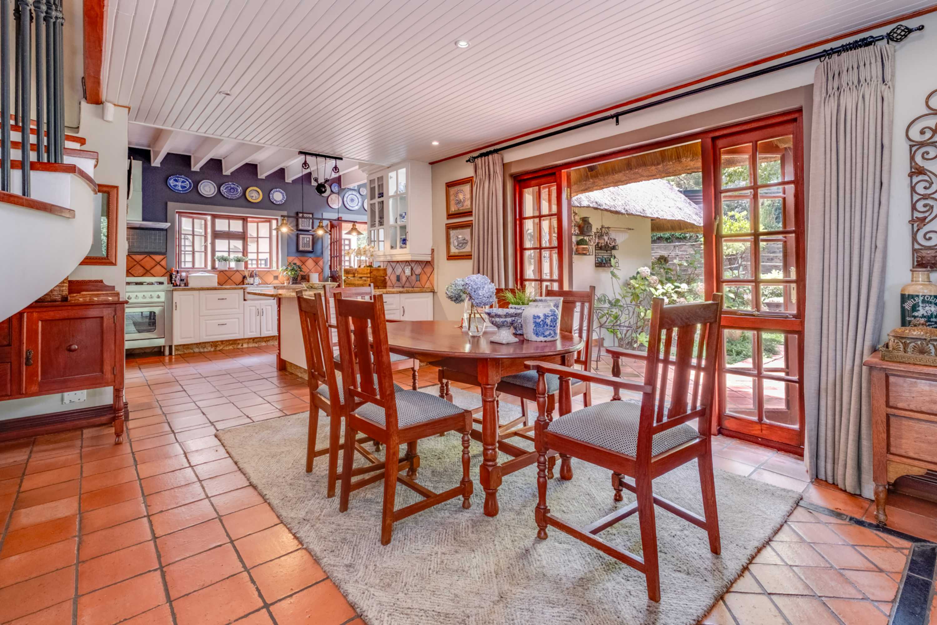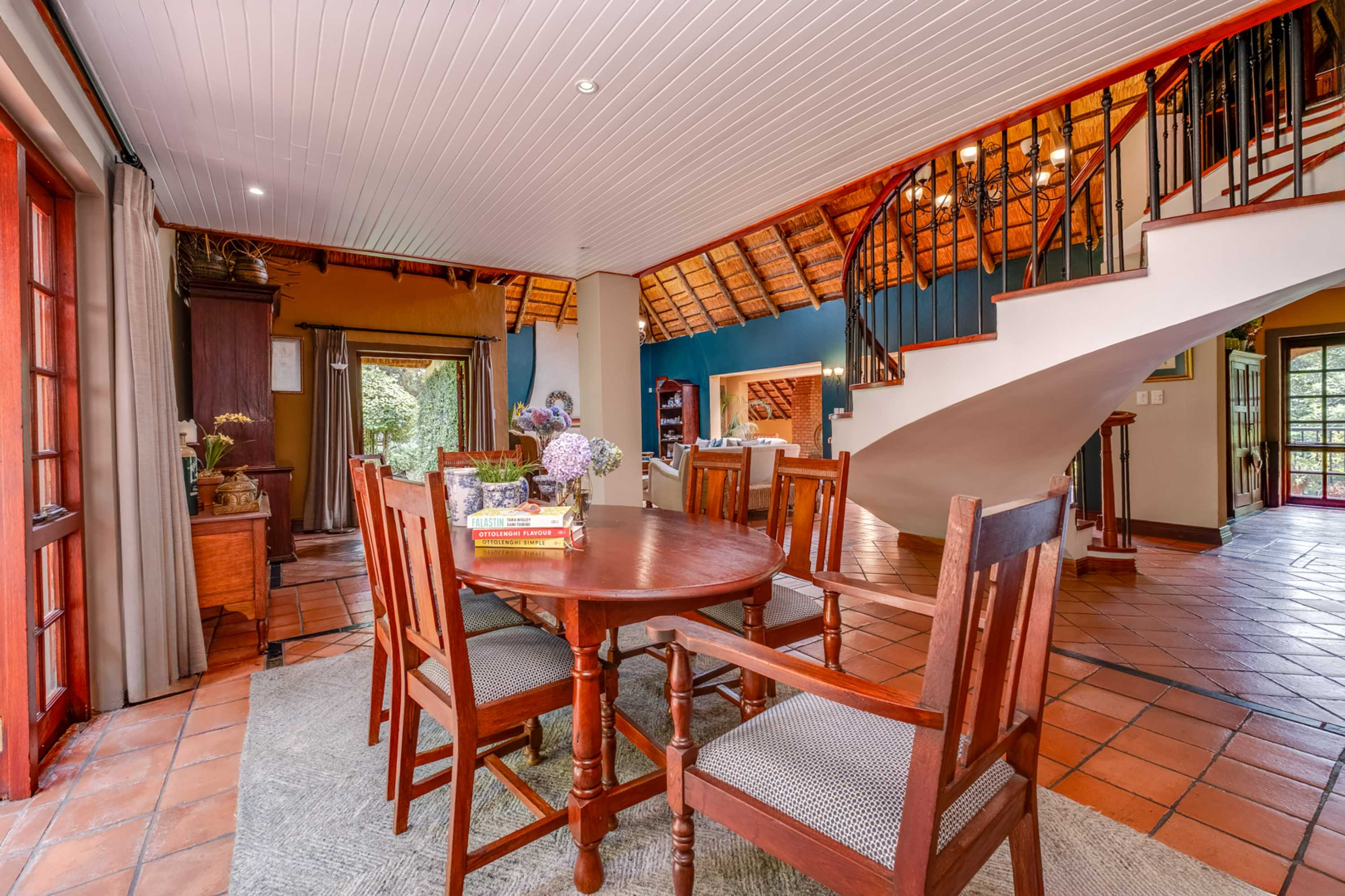 Step into a stunning thatched residence where timeless charm meets sleek modern finishes.
