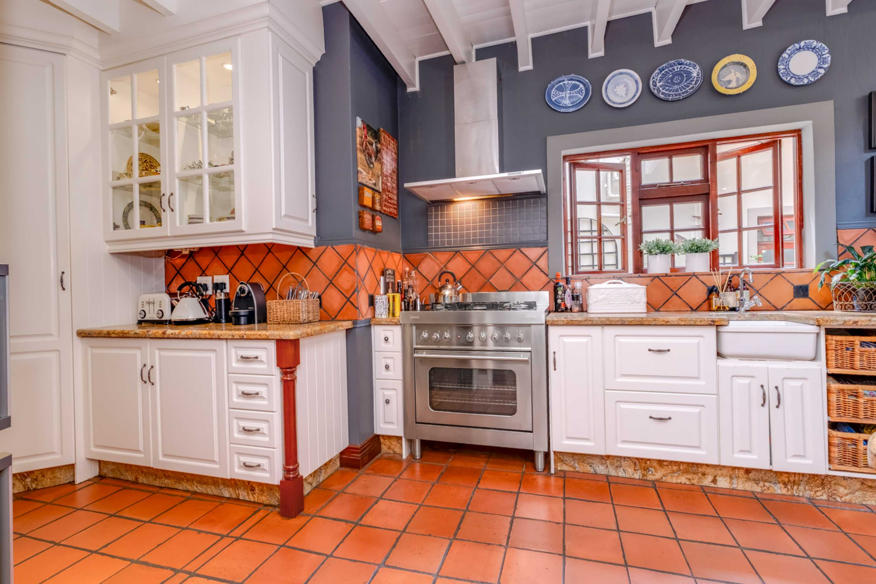 This expansive home offers 5 spacious bedrooms, multiple bathrooms, and an impressive 7 reception areas - perfect for both relaxed family living and stylish entertaining. Wooden windows, doors, and frames add warmth and character throughout, while balconies and verandas create seamless indoor-outdoor flow, inviting you to enjoy every corner of this beautifully designed property set on a generous 1600sqm erf. The heart of the home is a high-end, modern kitchen featuring granite countertops, a gas hob with electric oven, a separate scullery, and abundant cupboard space.