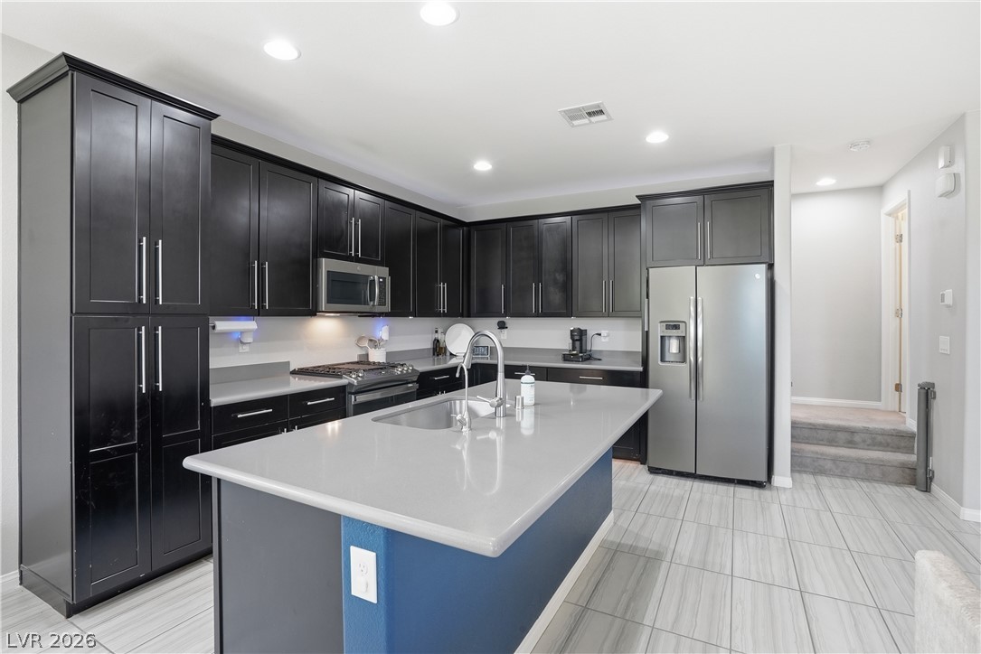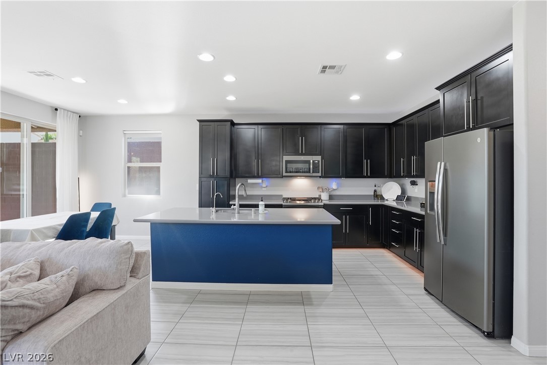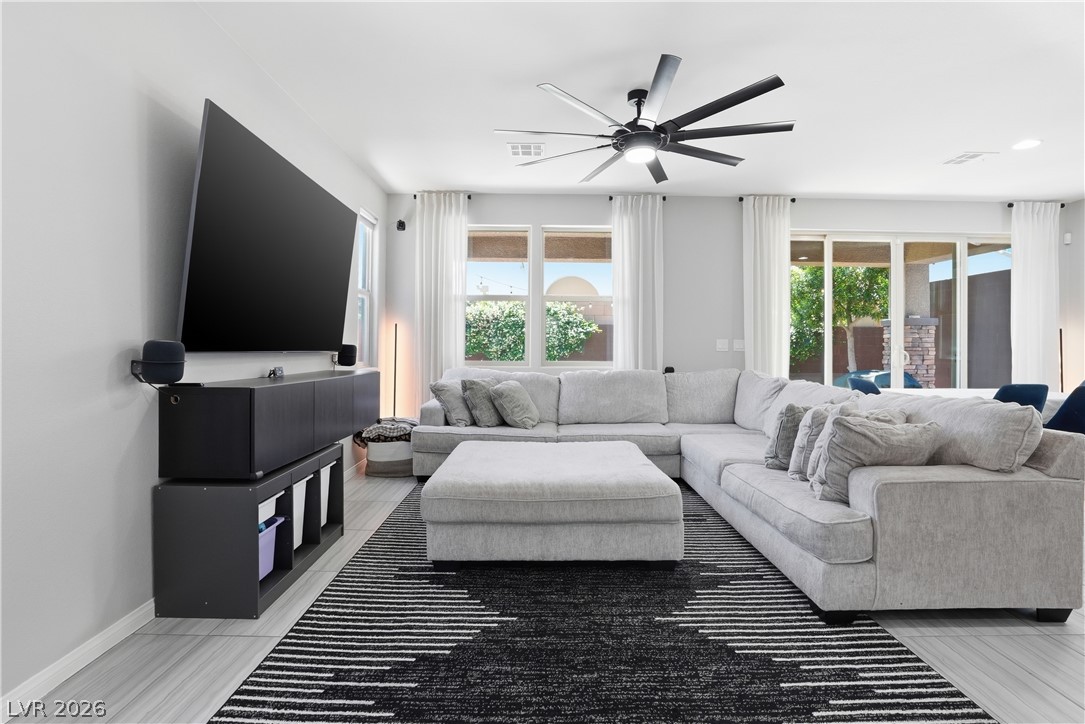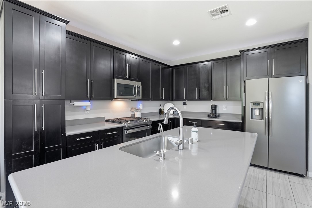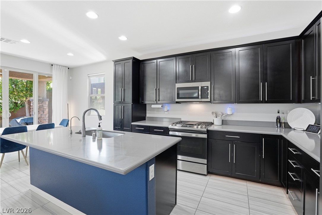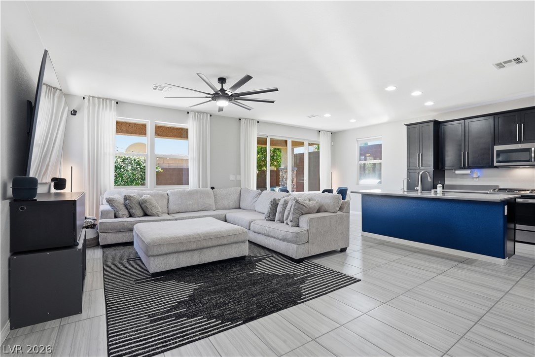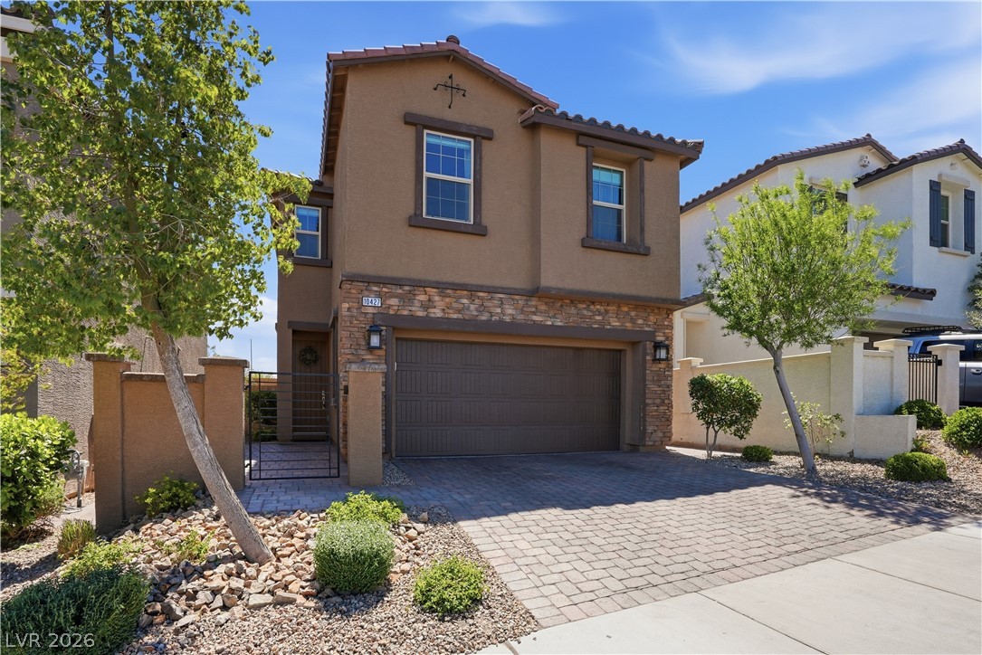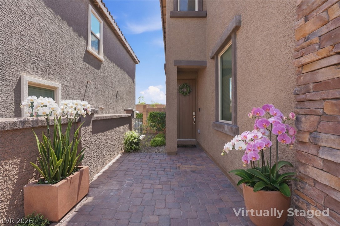 OPEN HOUSE April 18th 11AM-3PM. Step into a home that just feels right from the moment you walk in. Natural light pours through every space, highlighting a thoughtfully designed layout. At the heart the home, the upgraded kitchen shines with quartz countertops, modern finishes and a seamless connection to the living space, perfect for both everyday living and entertaining. Double sliding doors open to blend indoor comfort with outdoor relaxation. Upstairs, the primary suite becomes your escape with a spa-style super shower and private balcony. Impeccably cared for by the original owner, this home also includes vinyl window coverings, tankless water heater, water softener, reverse osmosis system, a finished garage with epoxy floors, the details! When you step outside you're part of Skye Canyon, a private-residents-only park w/splash pad, gated access to parks, trails everywhere...plus fitness amenities, open green space and a true sense of community that is hard to find.